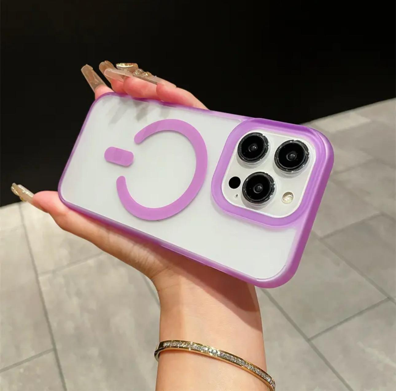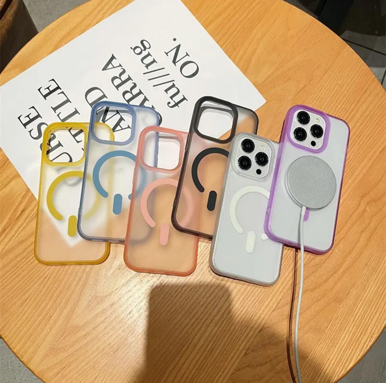 Colorful Matte Clear Macaron C Pattern Magnetic Phone Case For iPhone 16ProMax 16 15 14 13 12 11 Pro Max Plus Transparent [Not Yellowing] [Skin Feel] Shockproof Hard Full Cover