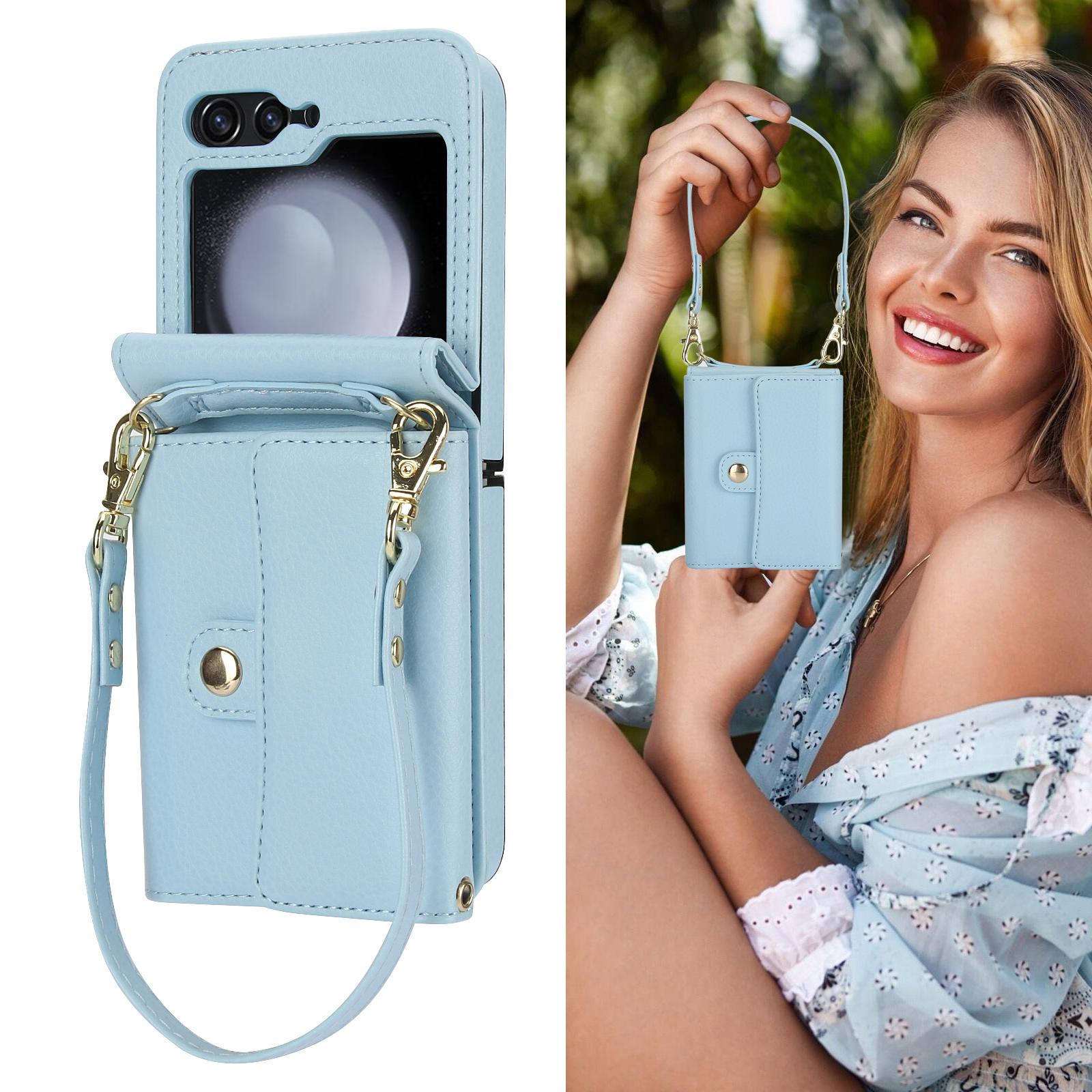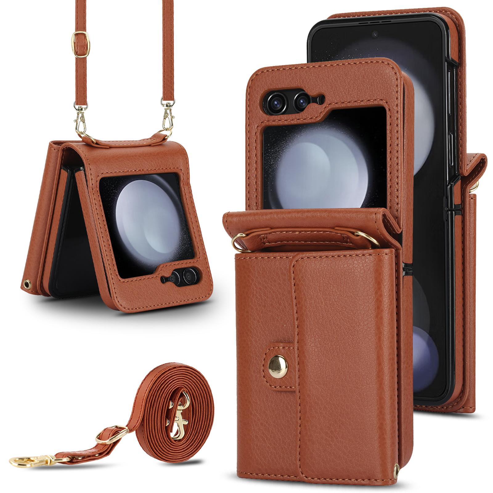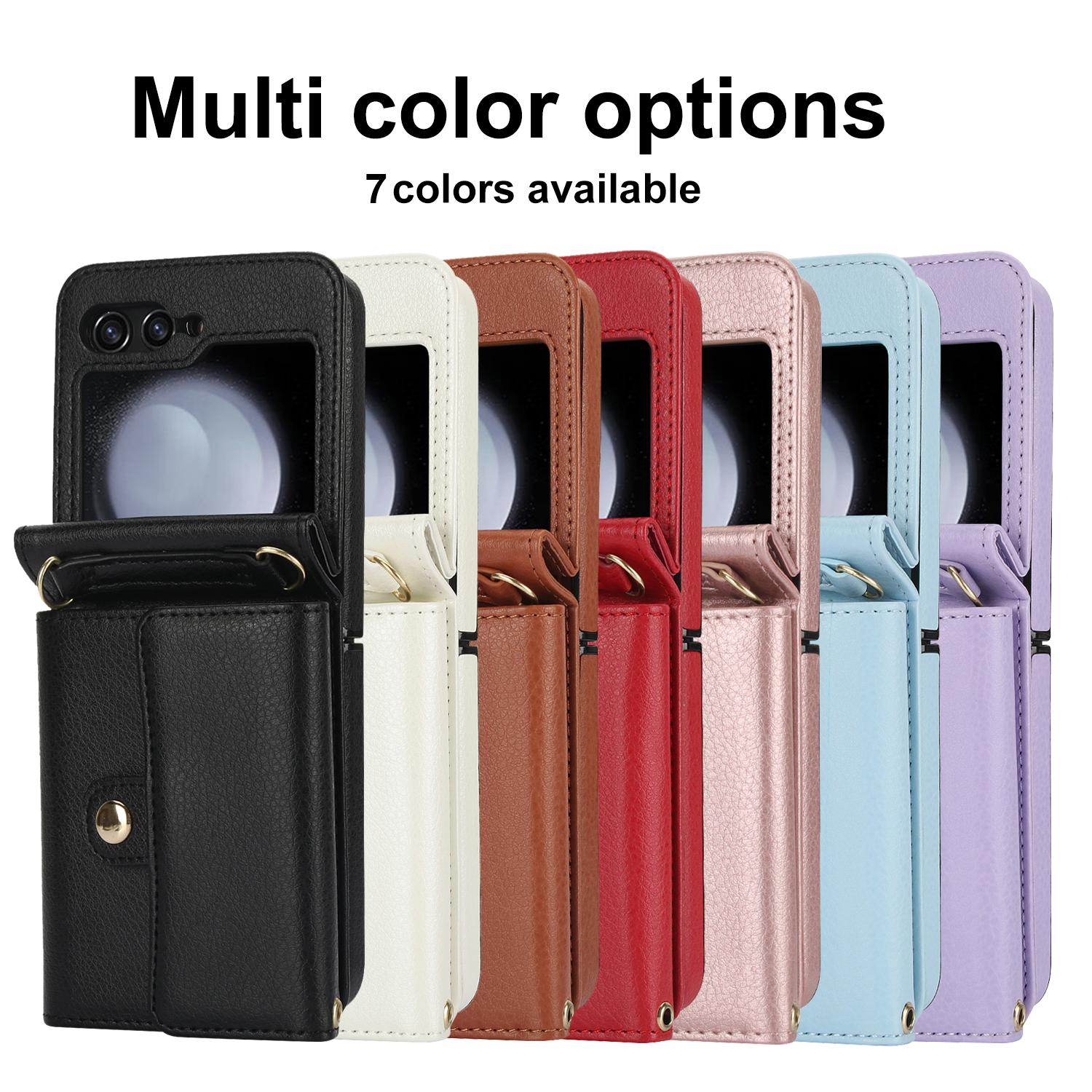 Crossbody Wrist Strap Leather with Card Holder Phone Case for Samsung Galaxy Z Flip 6 5 4 3 Flip6 Flip5 Flip4 Flip3 Wallet Cover