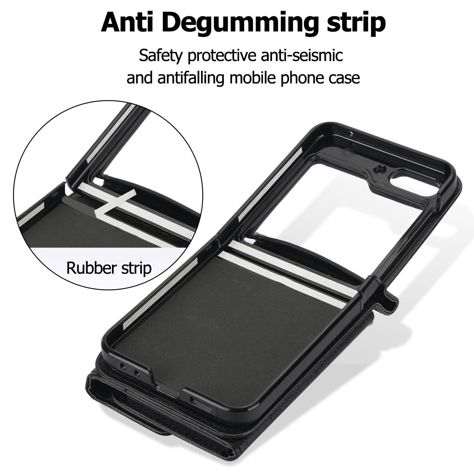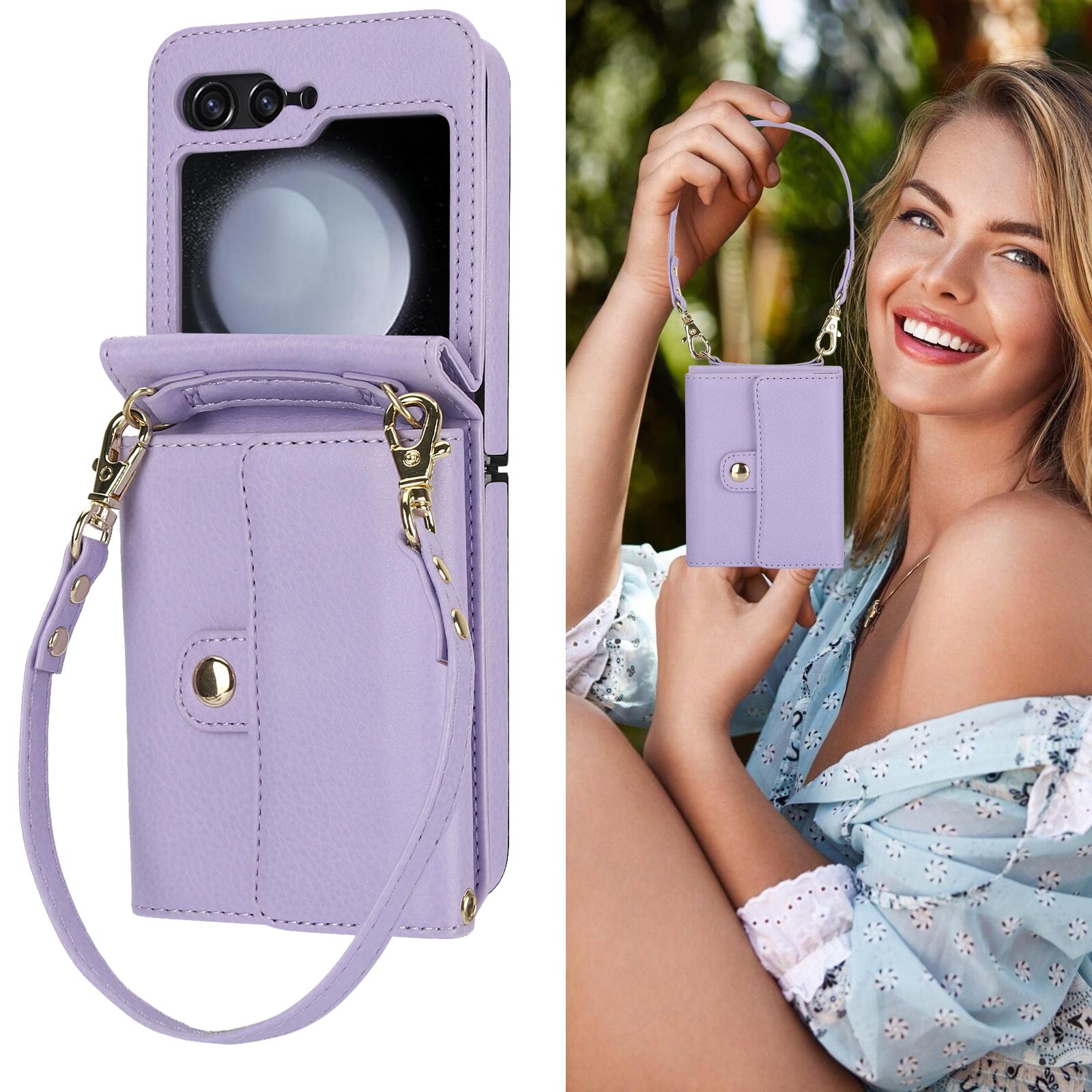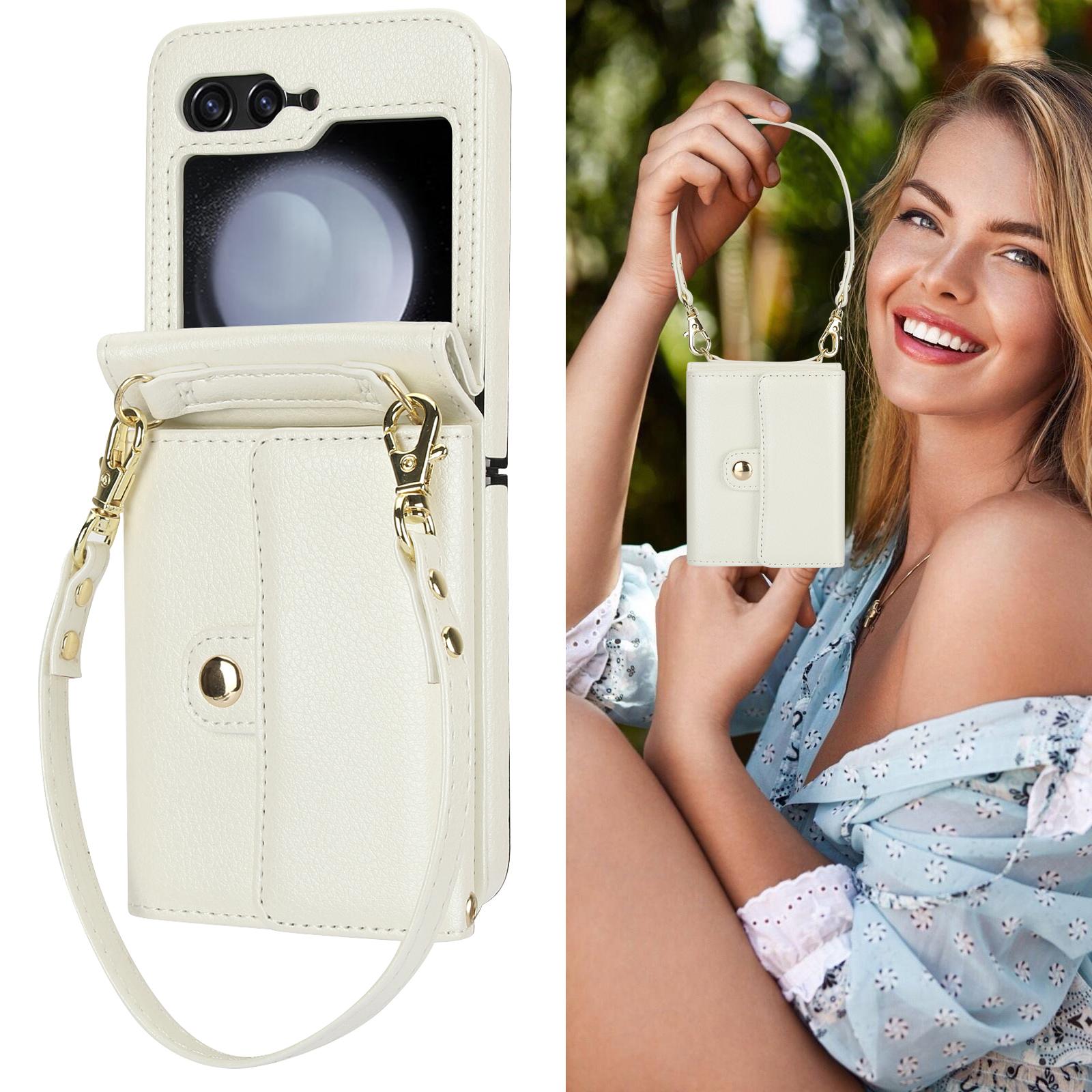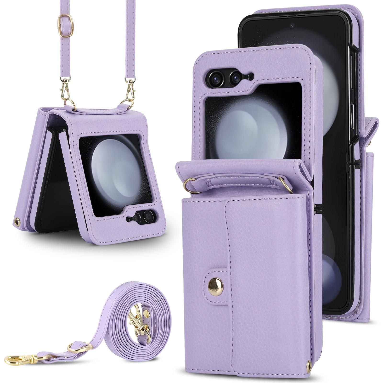 Crossbody Wrist Strap Leather with Card Holder Phone Case for Samsung Galaxy Z Flip 6 5 4 3 Flip6 Flip5 Flip4 Flip3 Wallet Cover