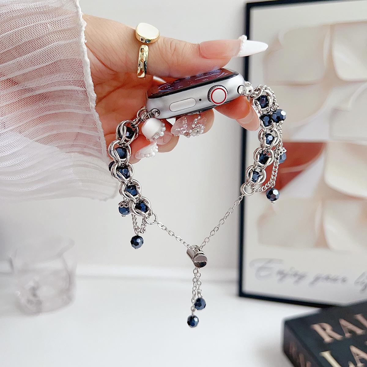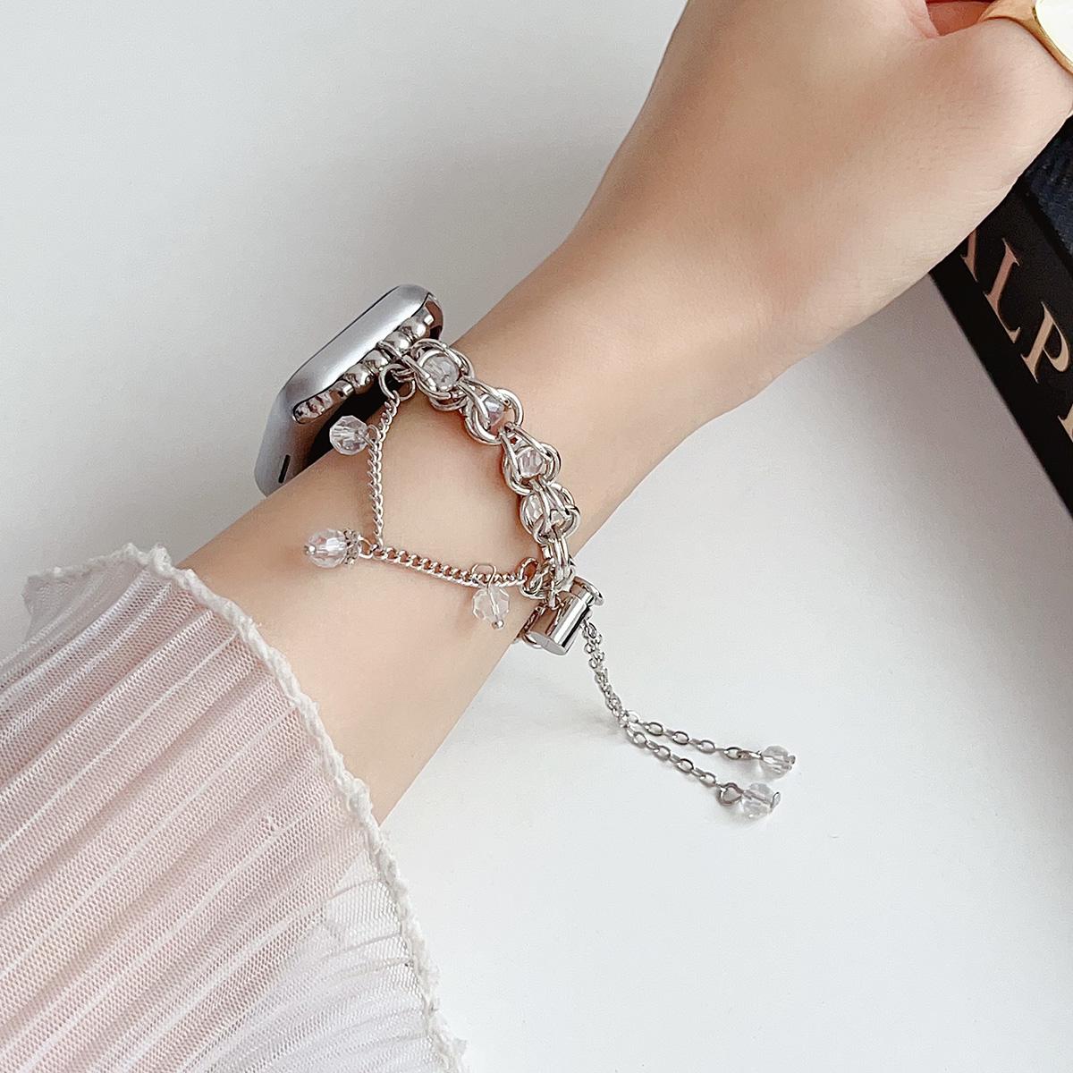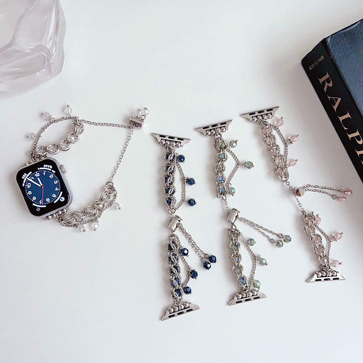 Crystal Tassel Chain Metal Strap for Apple Watch 44mm Band 45 42 38 41 Ultra 49mm Link Bracelet for IWatch Series 9 8 7 6 SE 5 4
