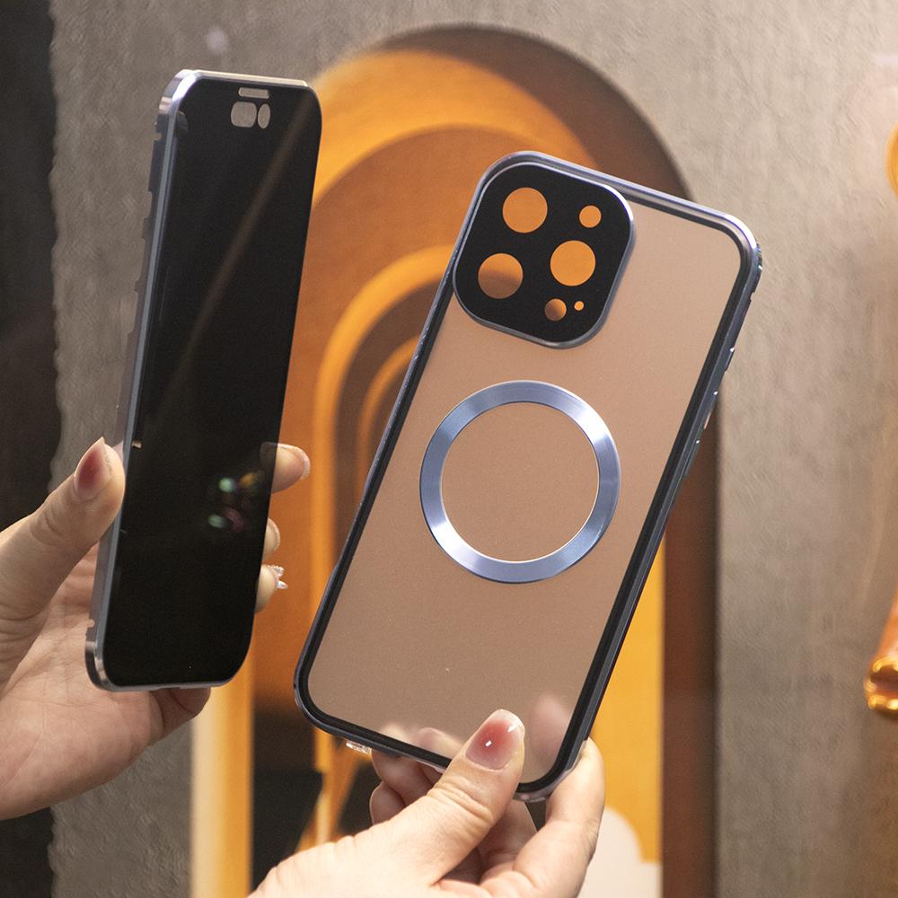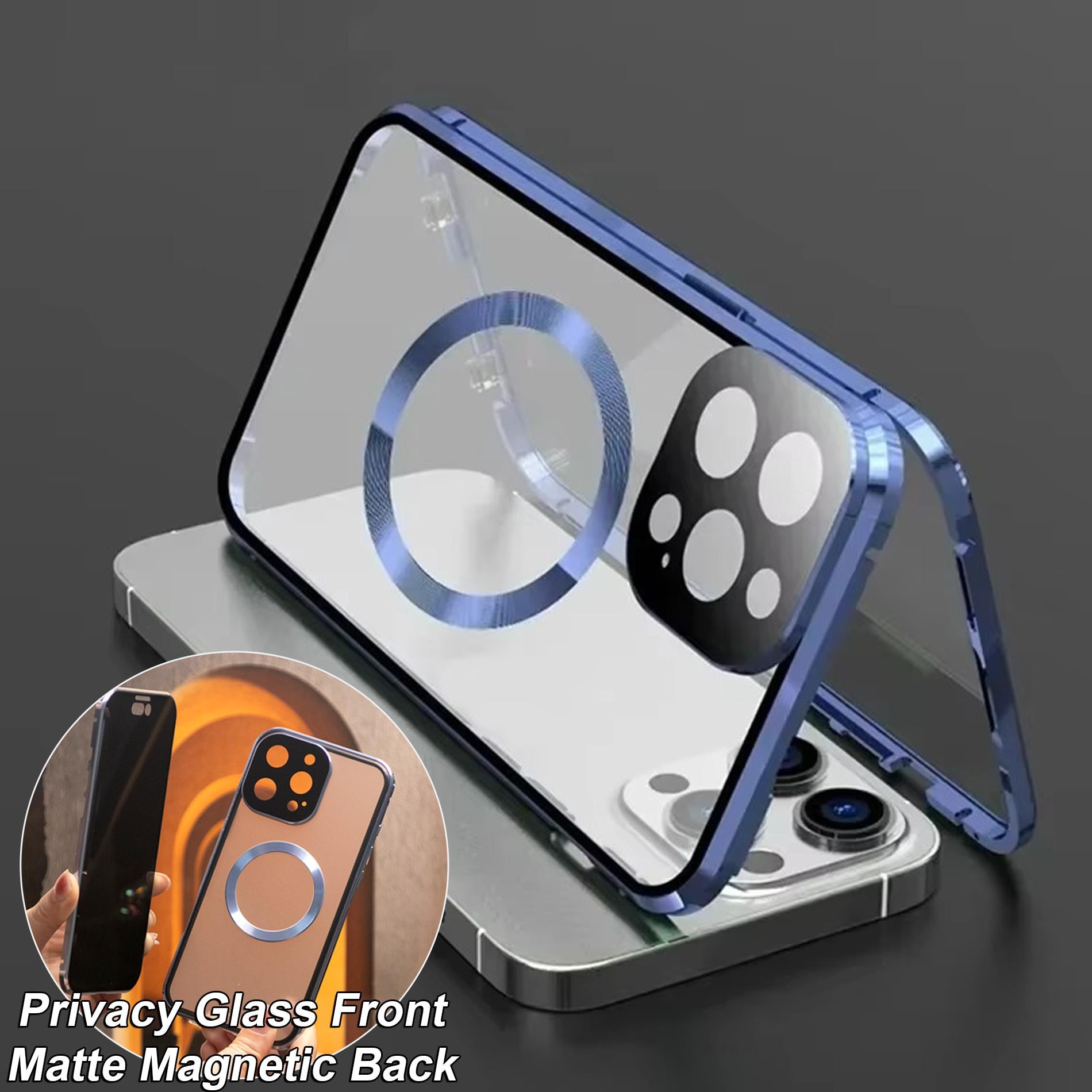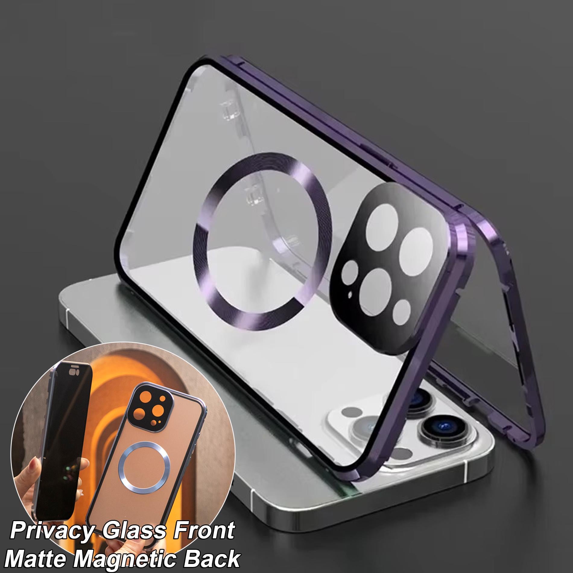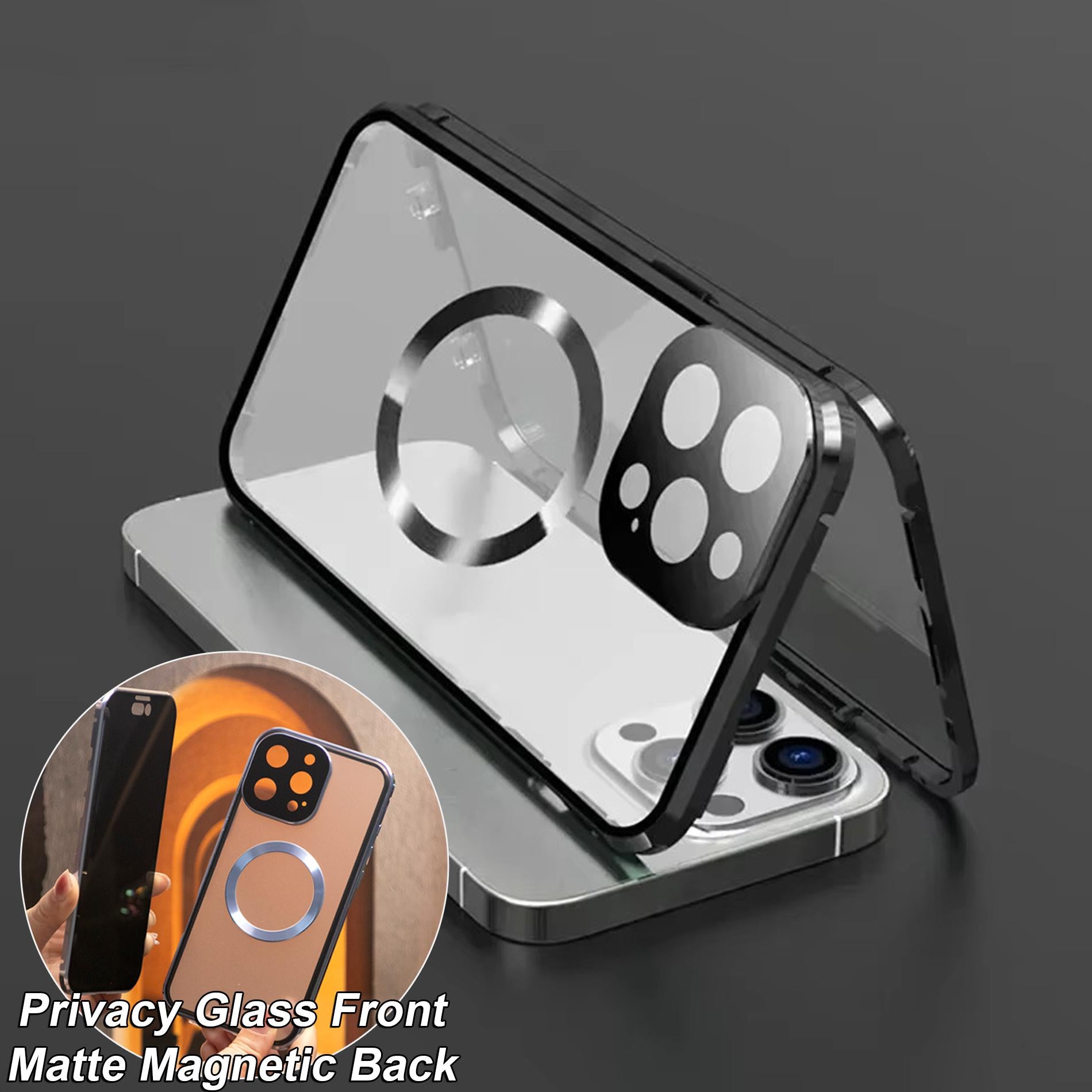 Double Sided Anti-peep Front Glass Matte Back Cover Aluminium Alloy For Magsafe Full Cover 360 Privacy Magnetic Ring Metal Case For iPhone 16ProMax 16 15 14 13 12 Pro Max Glass Full Cover