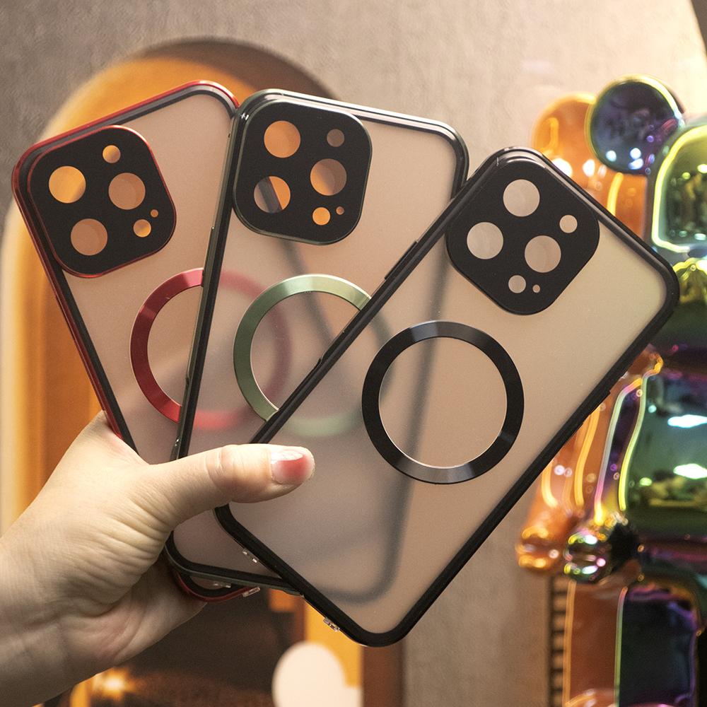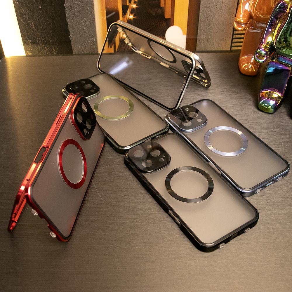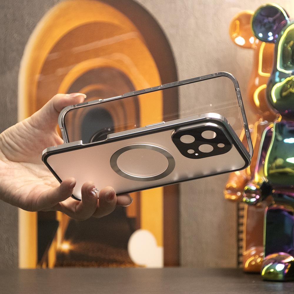 Double Sided HD Glass Matte Back Cover Aluminium Alloy For Magsafe Full Cover 360 Magnetic Ring High Definition Metal Case For iPhone 16ProMax 16 15 14 13 12 Pro Max Glass Full Cover