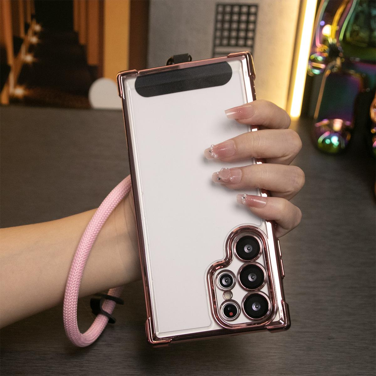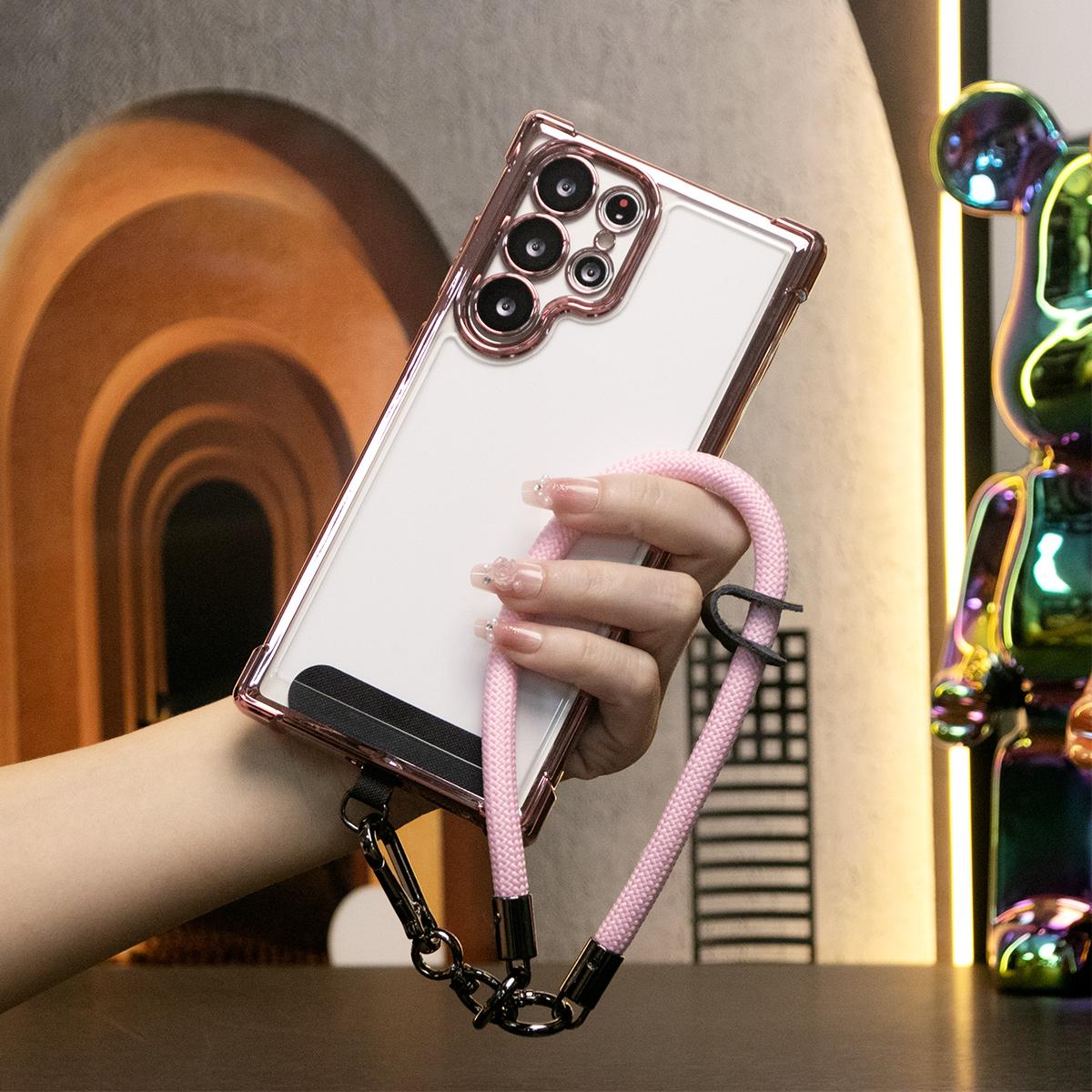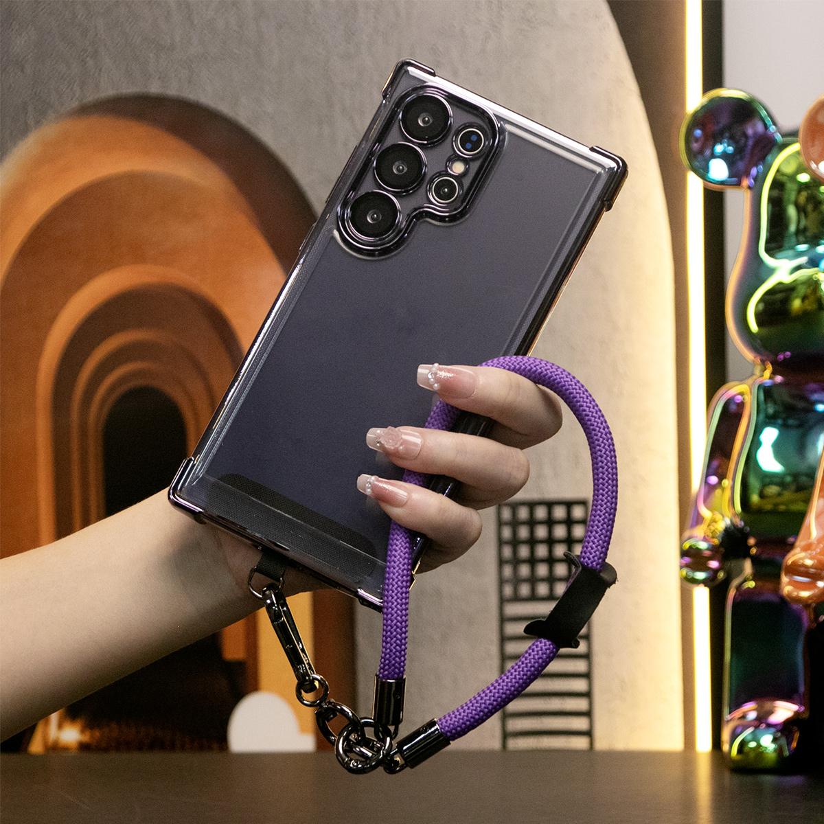 Electroplated Four Corners Anti-fall Transparent Hard PC Phone Case With Multifunctional Climbing Rope For Samsung S25Ultra S25 S24FE S24Ultra S24 S23FE S23 S22Ultra, Full Cover with Camera Protector