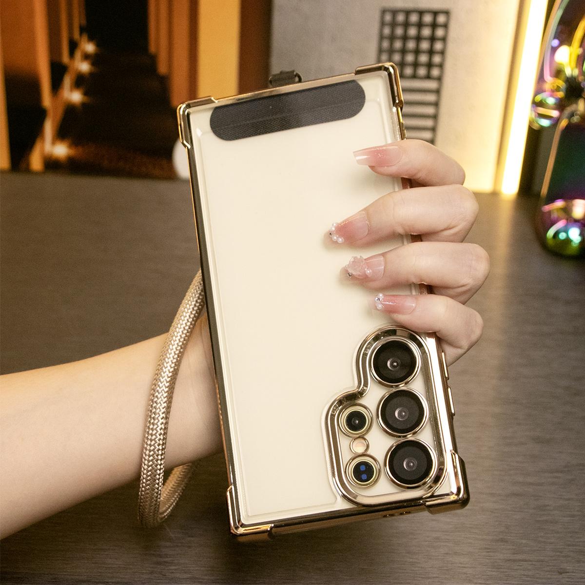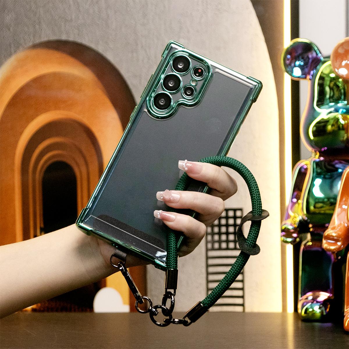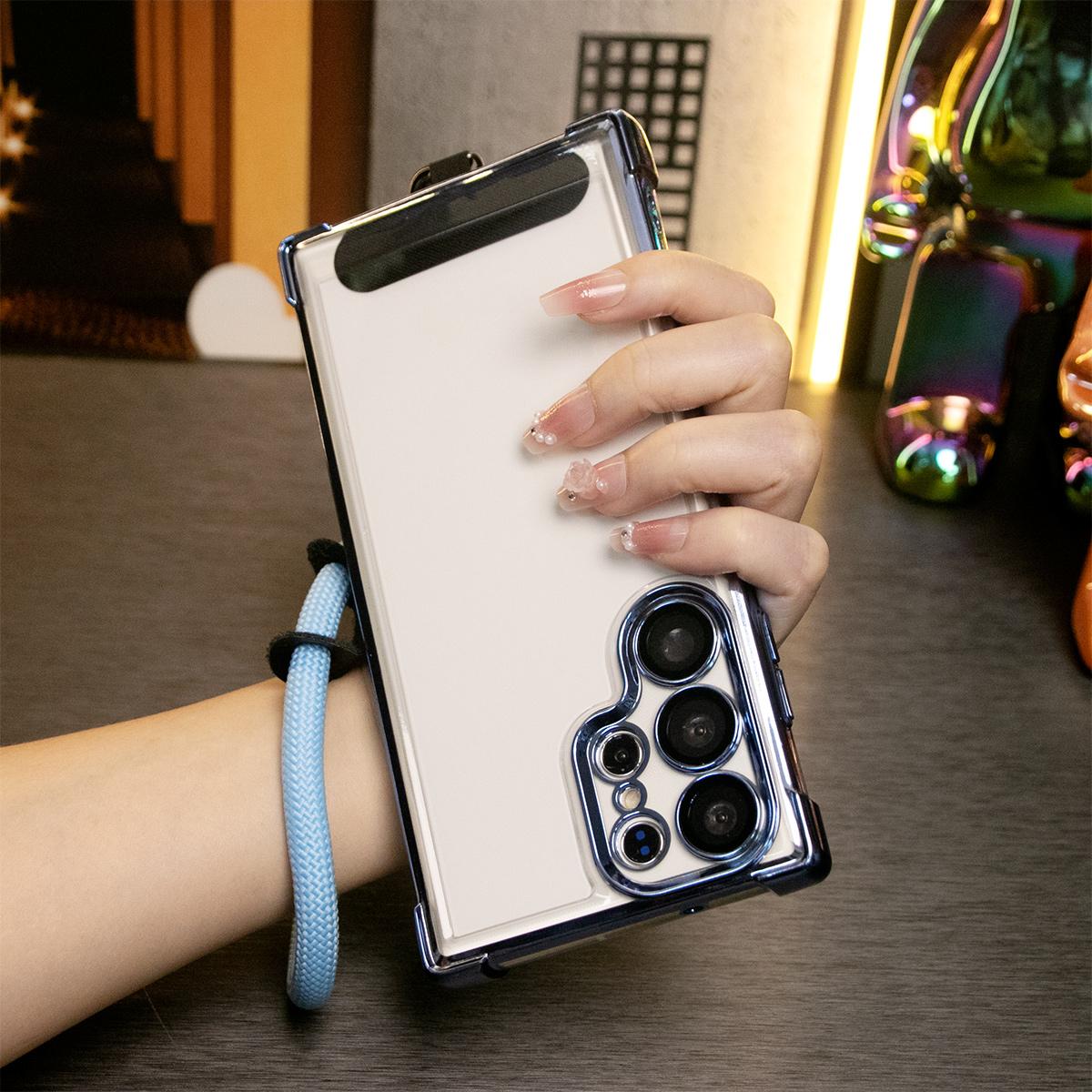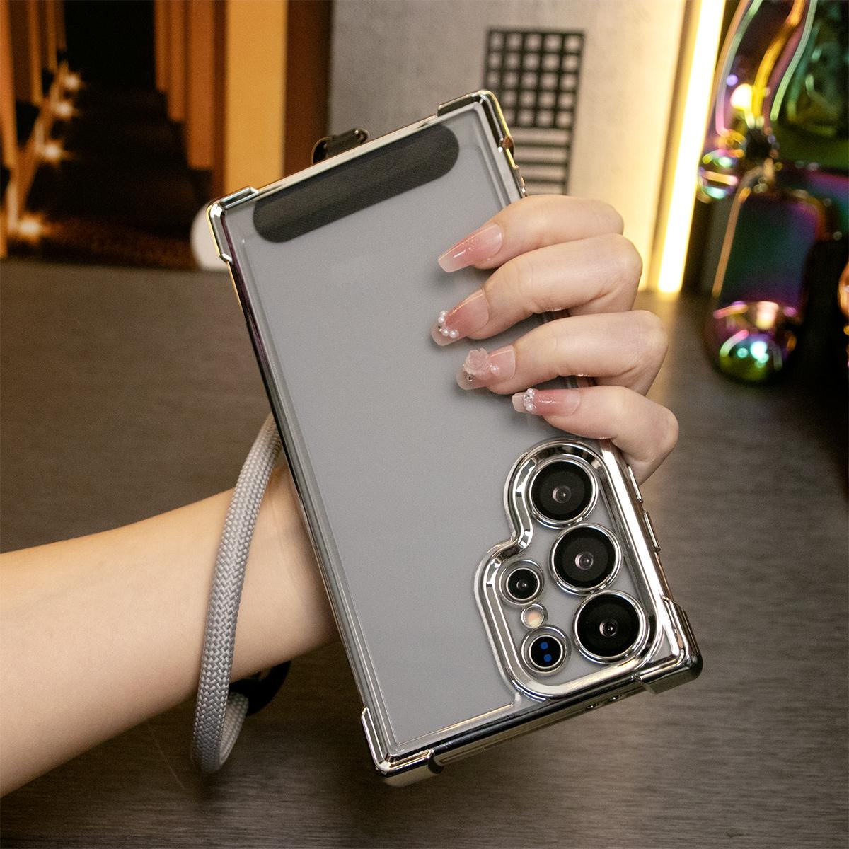 Electroplated Four Corners Anti-fall Transparent Hard PC Phone Case With Multifunctional Climbing Rope For Samsung S25Ultra S25 S24FE S24Ultra S24 S23FE S23 S22Ultra, Full Cover with Camera Protector