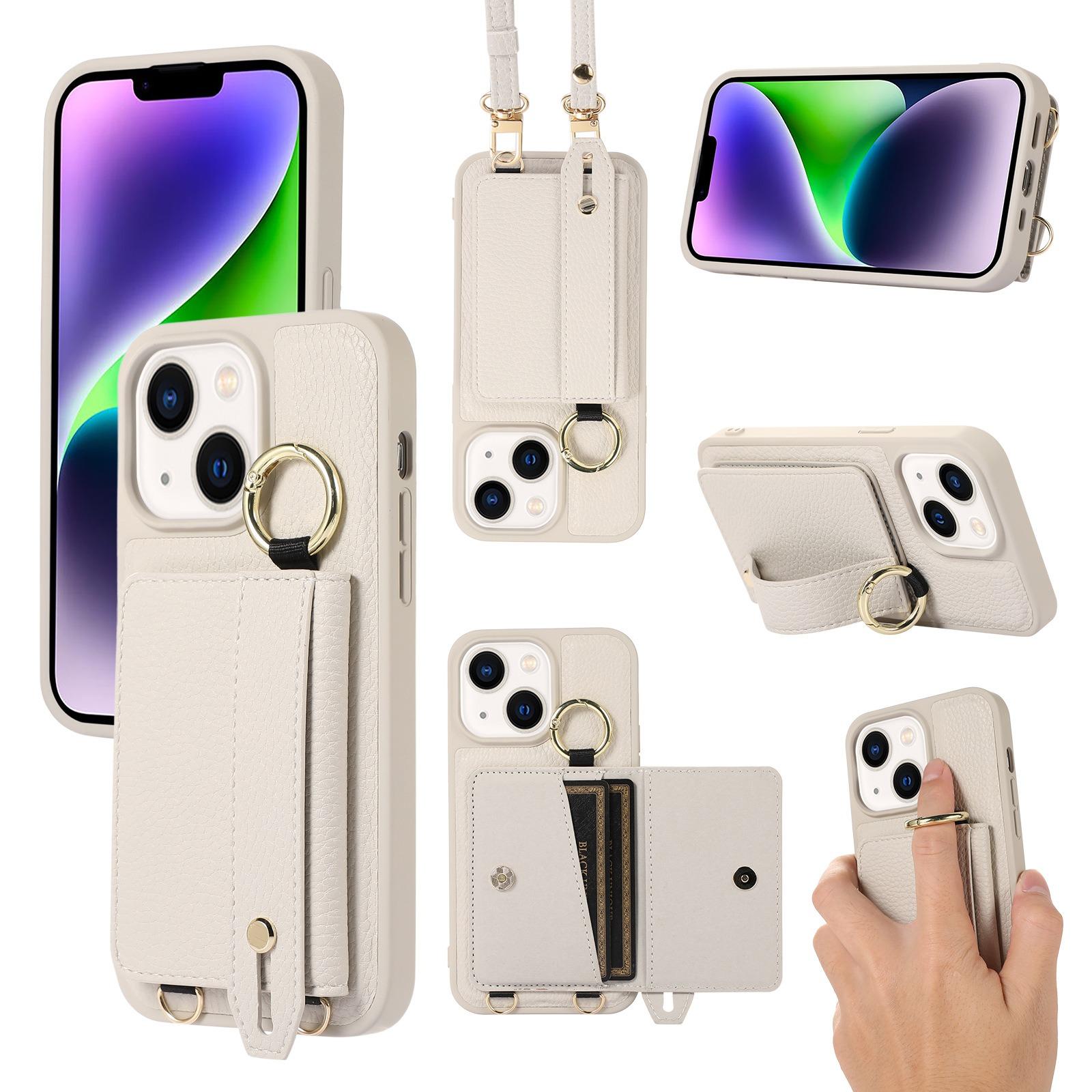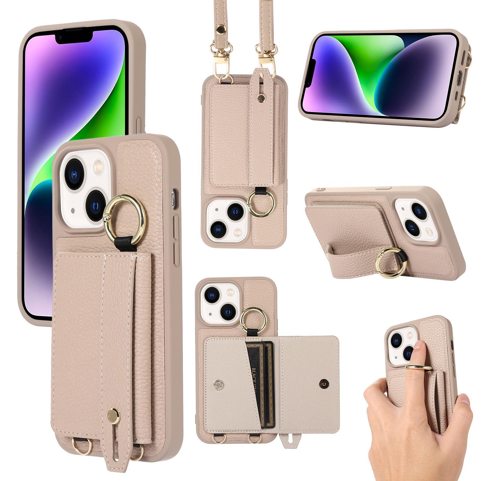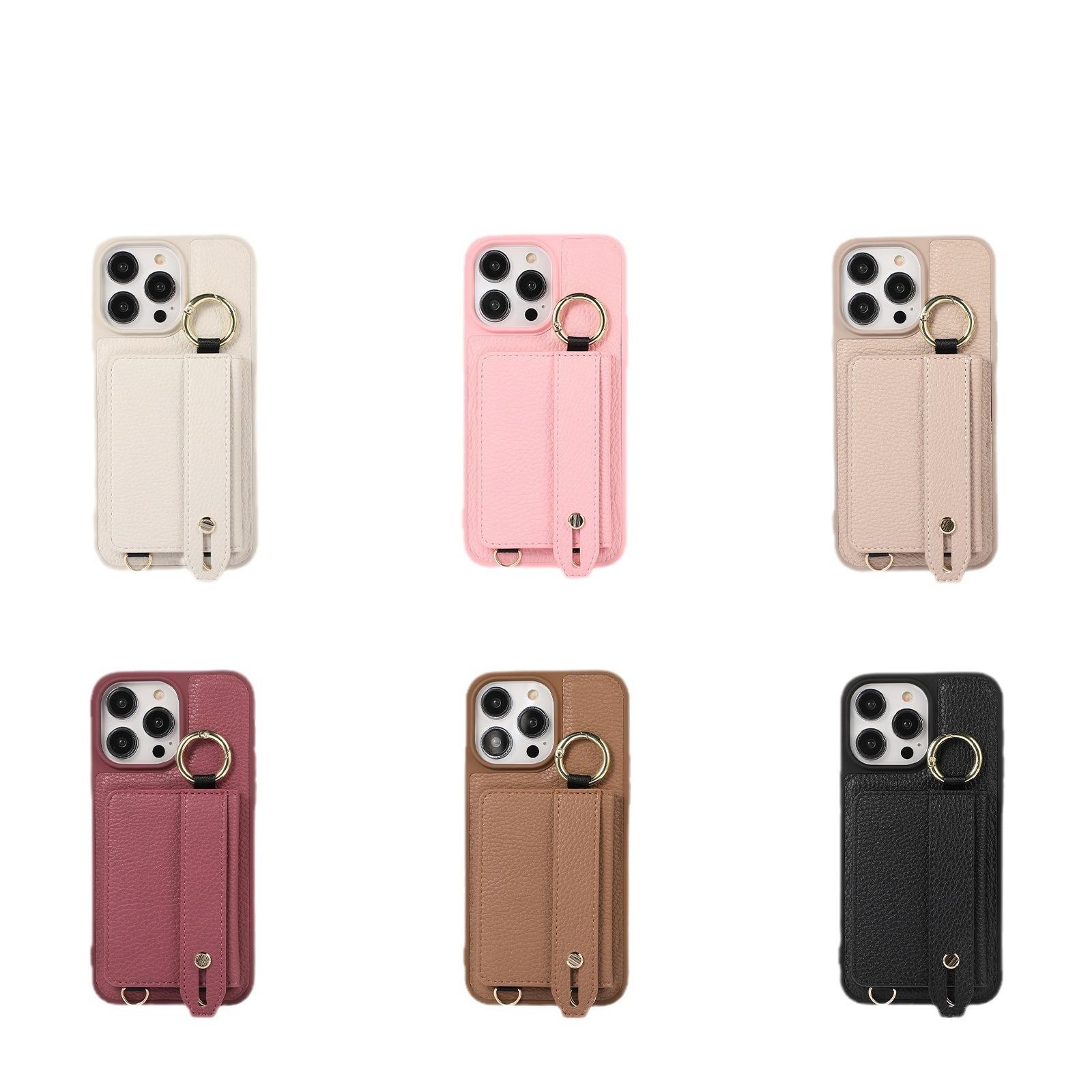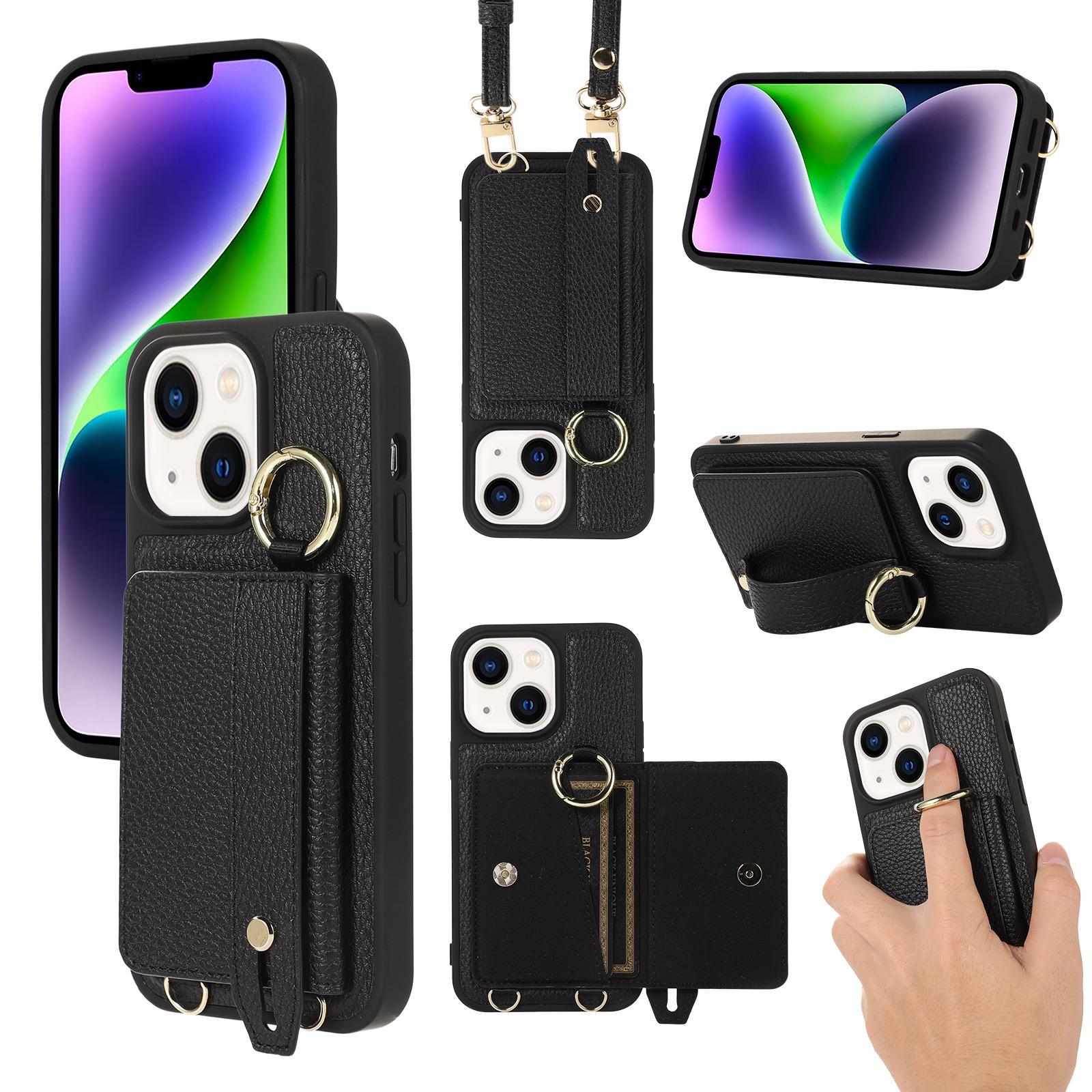 For iPhone 16ProMax 16 15 14 13 12 11 Leather Phone Case with Double Folding Wallet Lanyard, Anti-Fall Card Slot Wristband Ring Kickstand Shockproof Business Hard Full Cover