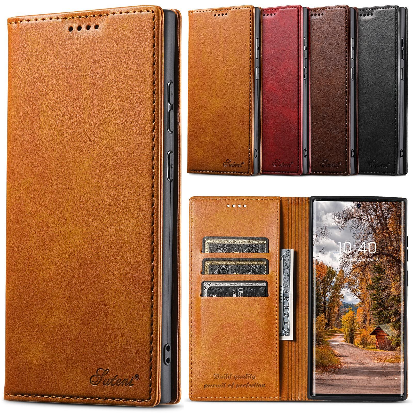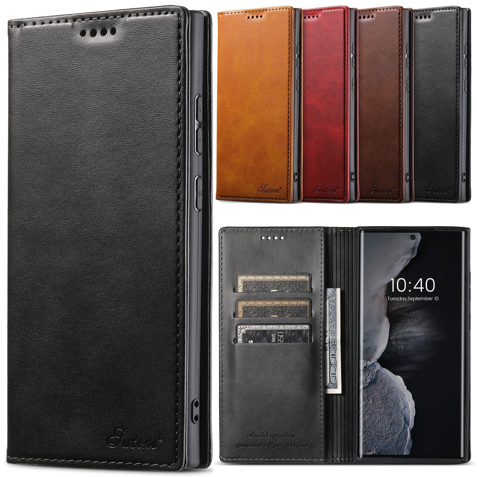 For Samsung S25 S24 S23 S22 Note20 Ultra Plus Phone Case, Smooth Surface Flip Wallet Case For Women Men Durable Faux Card Slot Leather Kickstand Magnetic Clasp Shockproof Phone Case