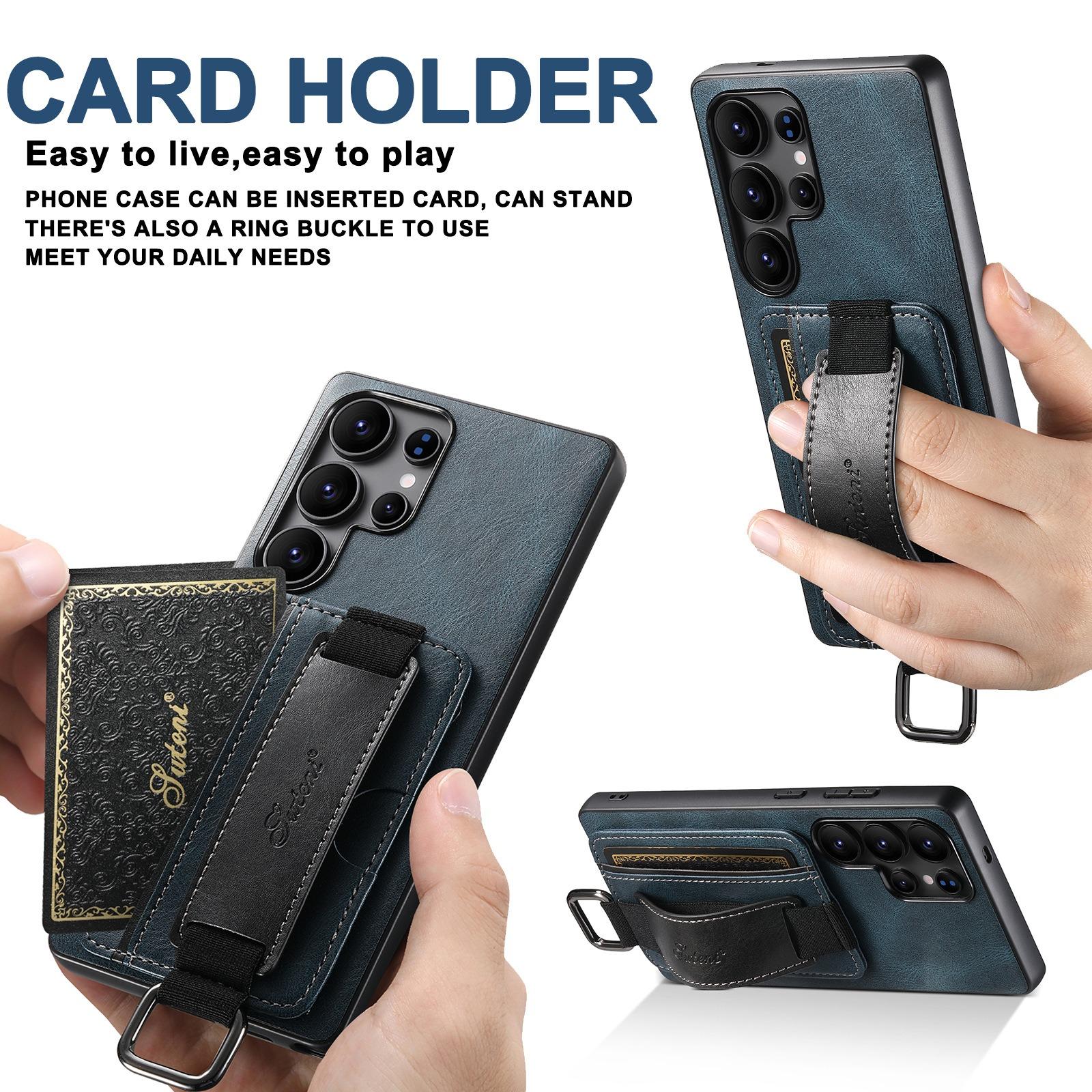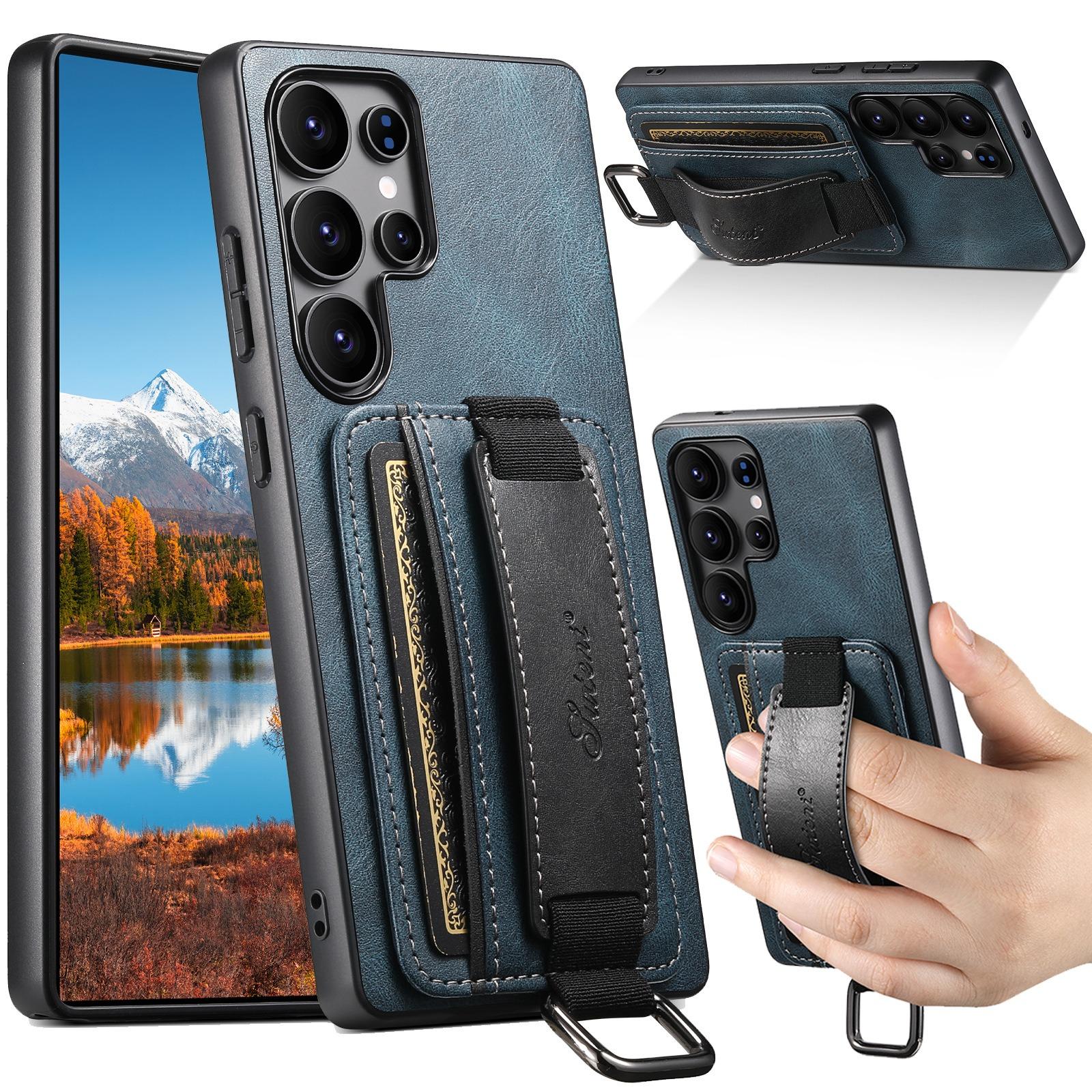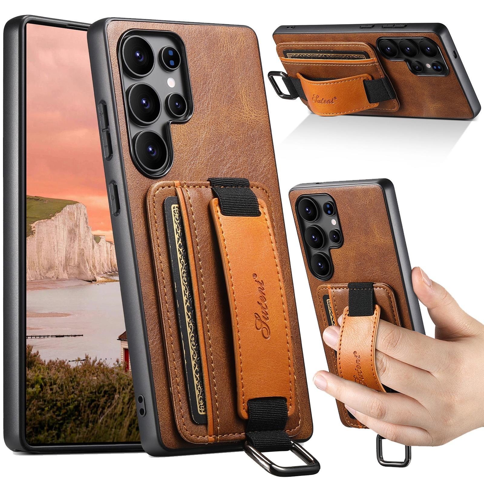 For Samsung S25 S24 S23 S22 Note20 Ultra Plus Phone Case, Smooth Surface Oil Wax Pattern Flip Elasticity Wallet Card Slot Wristband Leather Kickstand Shockproof Phone Case