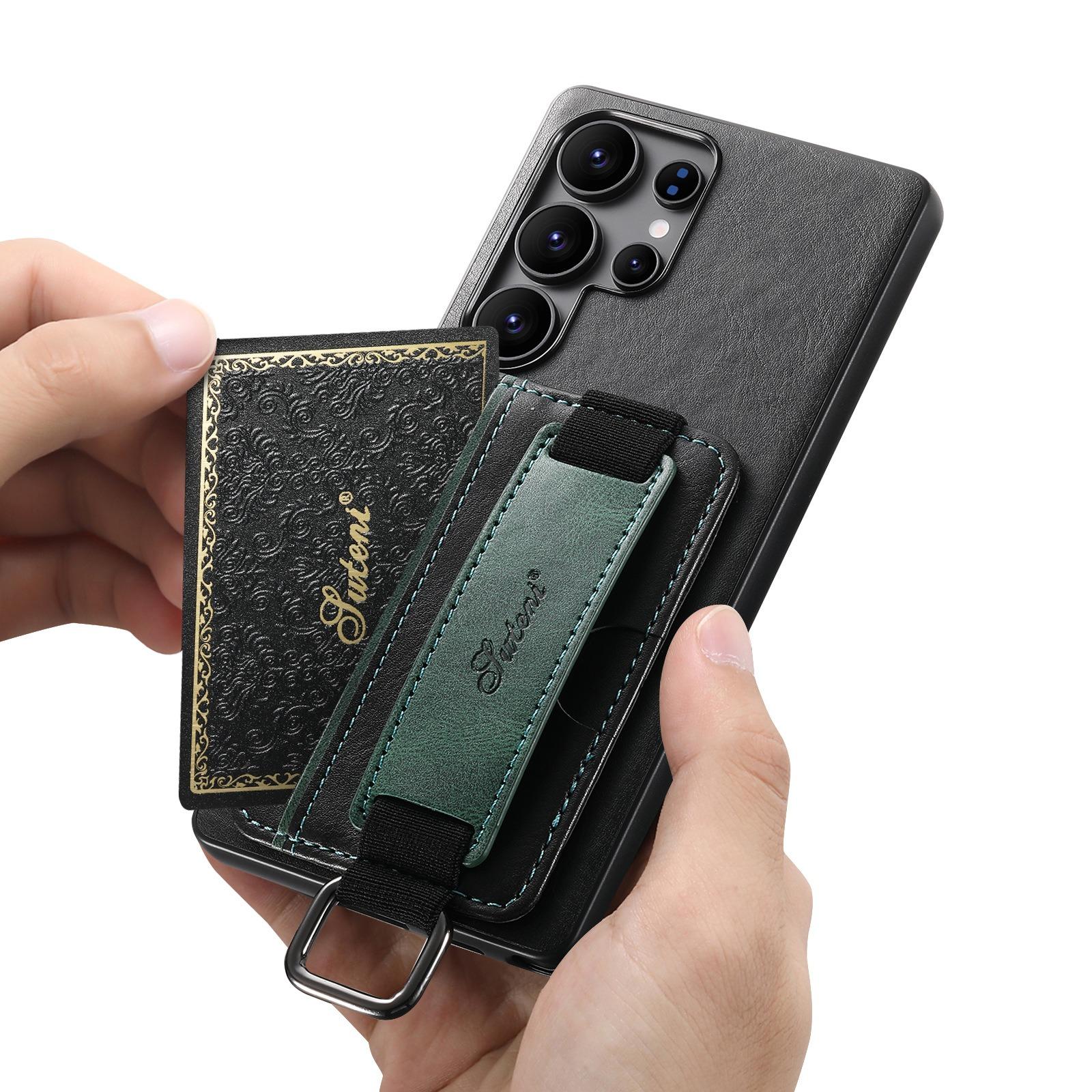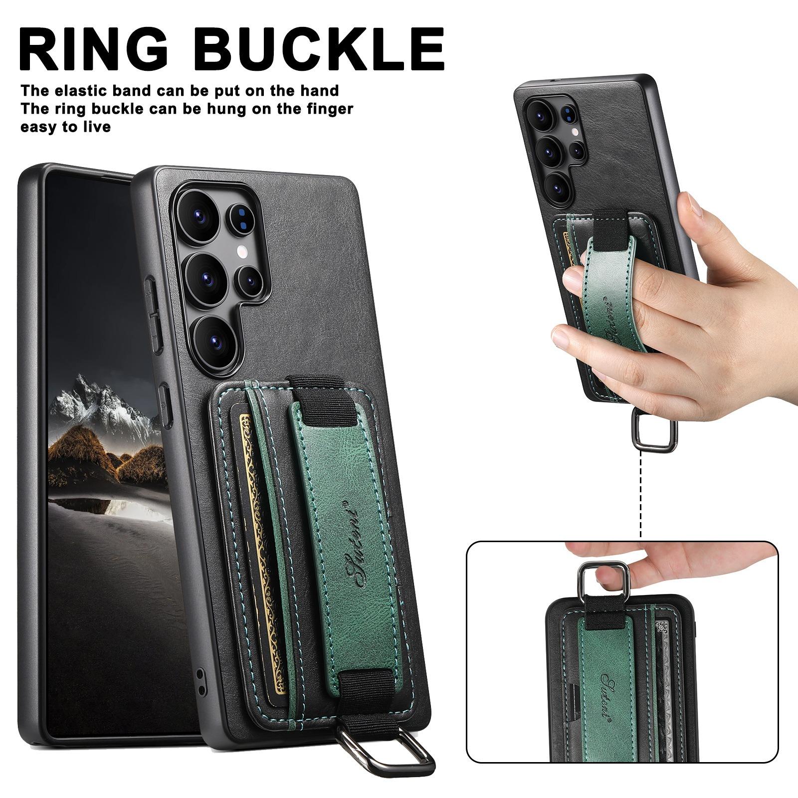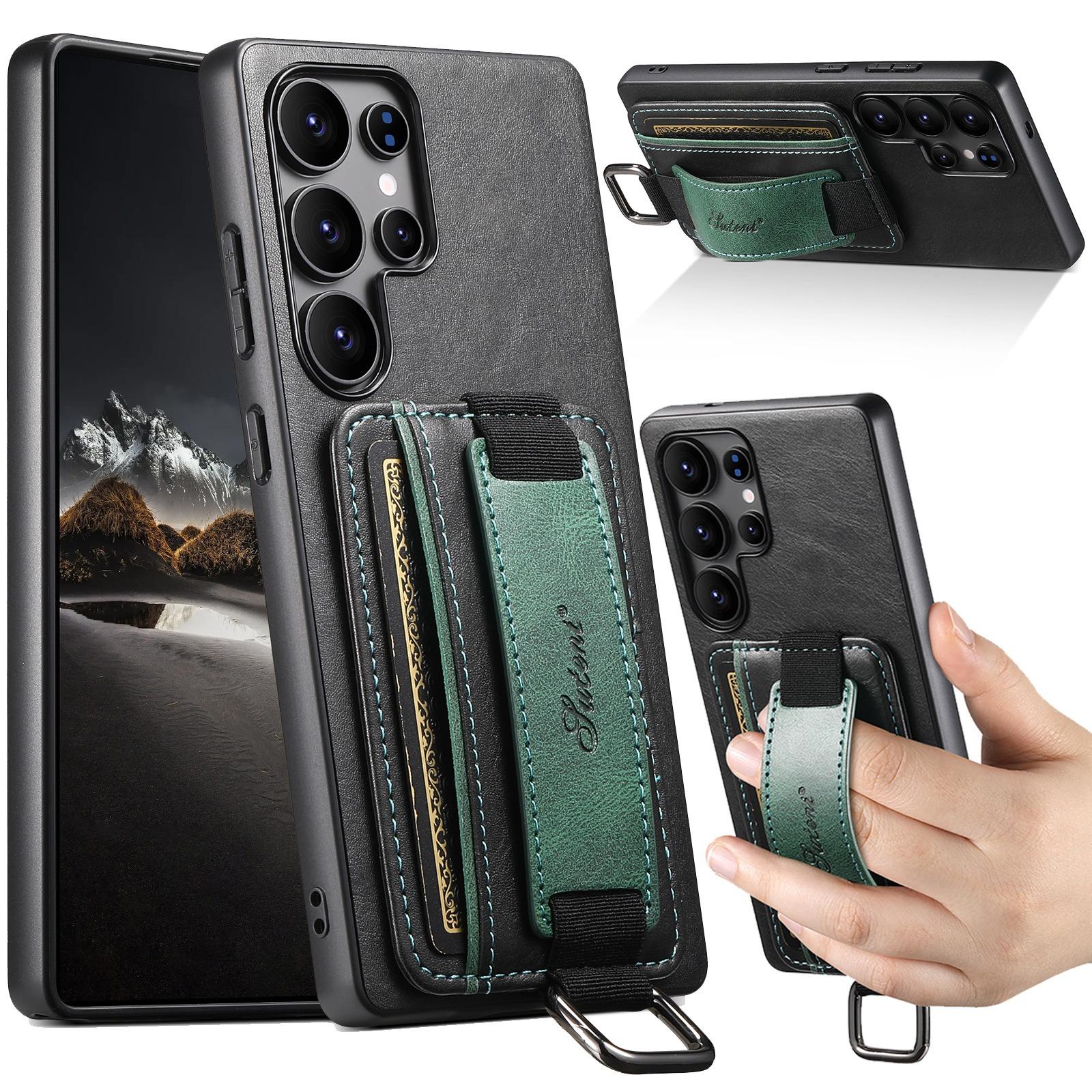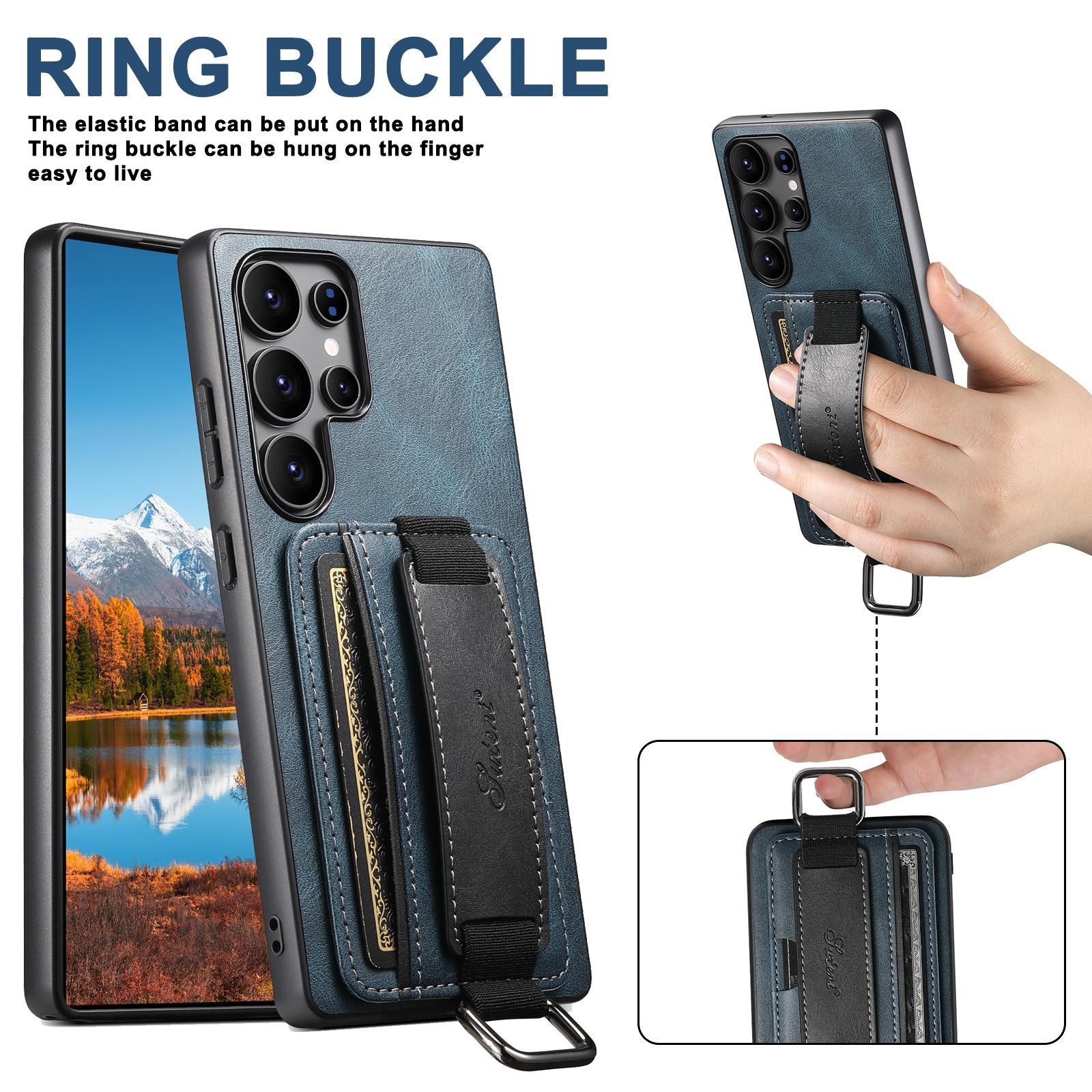 For Samsung S25 S24 S23 S22 Note20 Ultra Plus Phone Case, Smooth Surface Oil Wax Pattern Flip Elasticity Wallet Card Slot Wristband Leather Kickstand Shockproof Phone Case