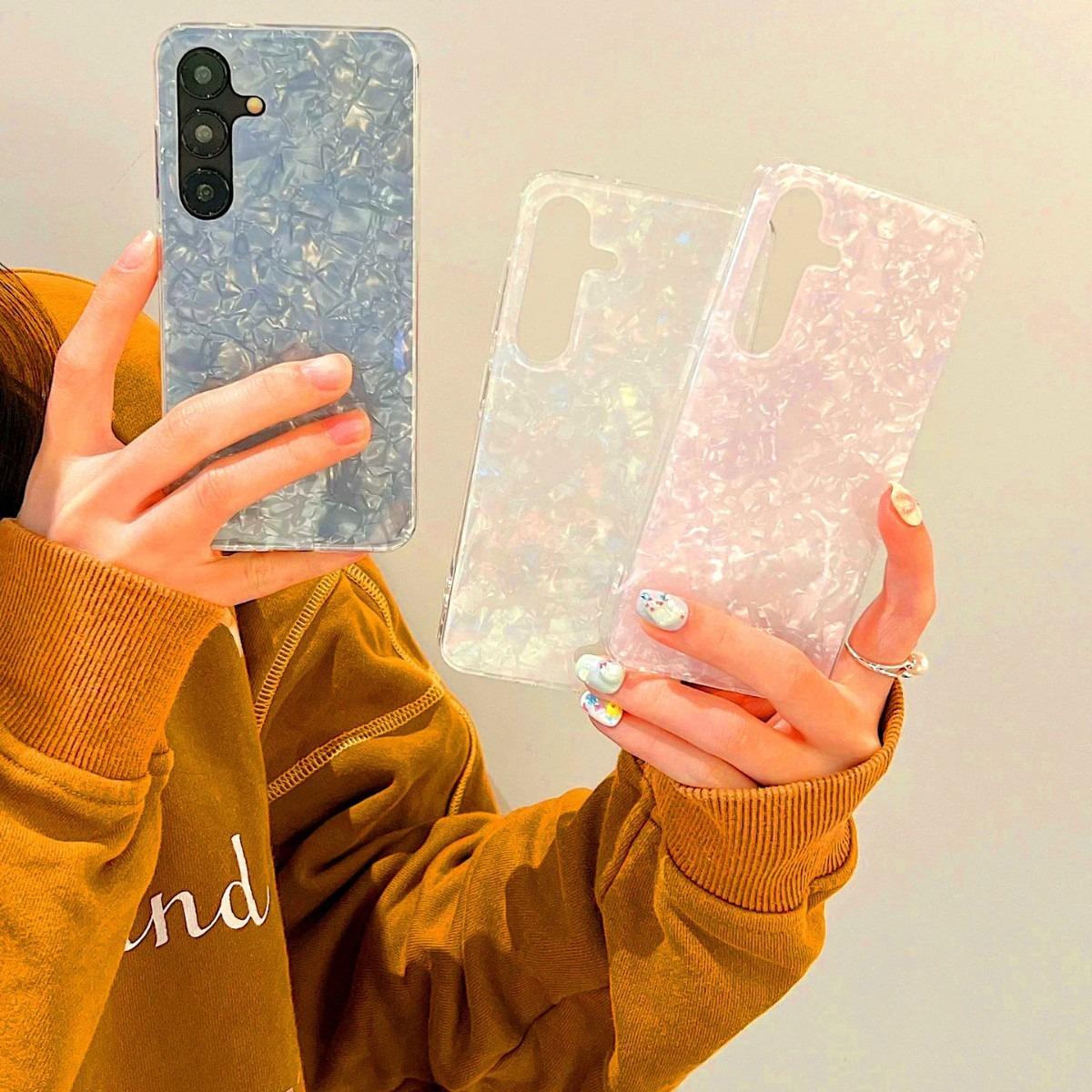 For Samsung S25Ultra S25 S24 S23 S22 S21 Note20 A16 A15 A14 A25 A24 A35 A34 A54 A55 Phone Case, Luxury Pearl Shell Pattern Acrylic Slim, Full Camera Protection Non-Yellowing Hard Cover