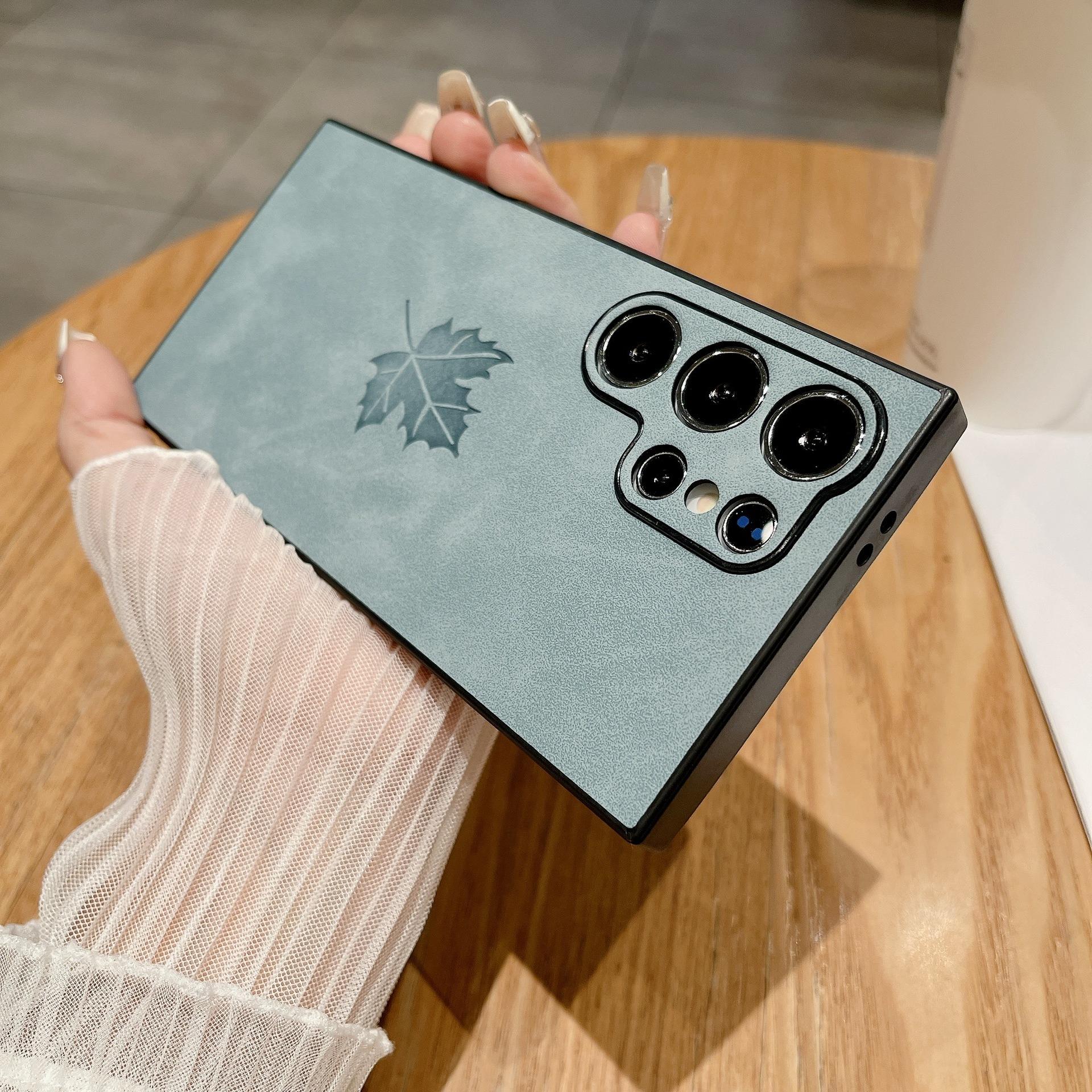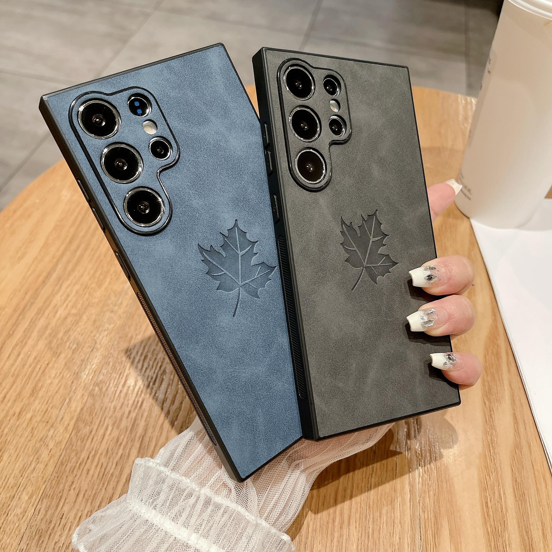 For Samsung S25Ultra S25Edge S24 S23 S22 S21 Note20 A16 A26 A36 A55 A56 Case, Maple Leaf Pattern Matte Suede Leather Shockproof Hard Phone Case