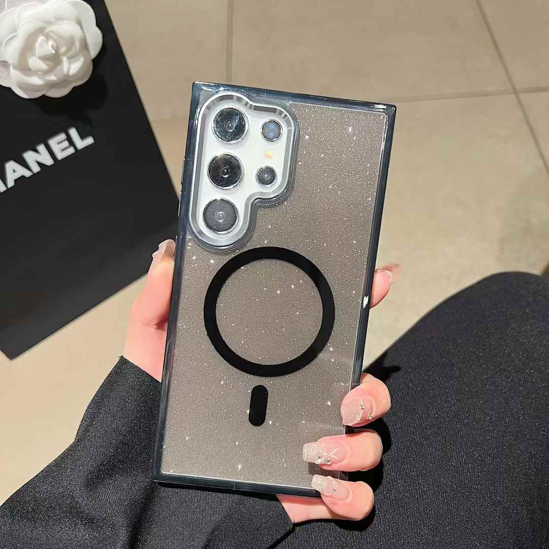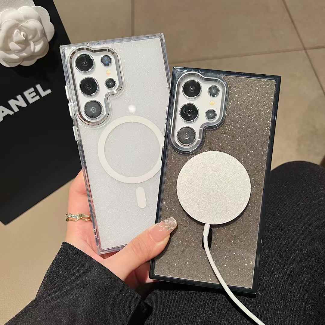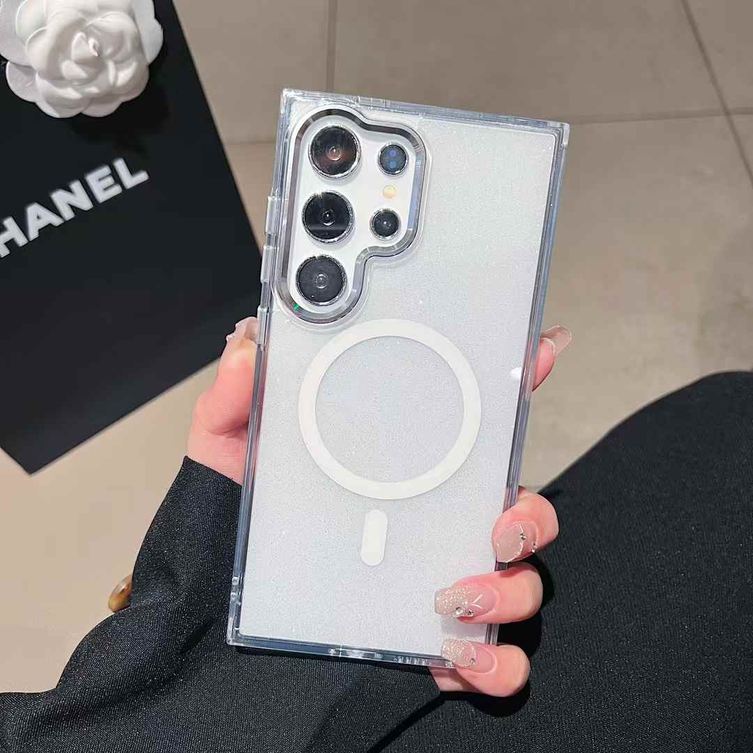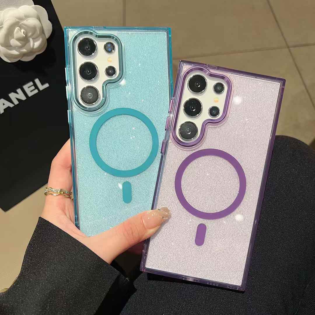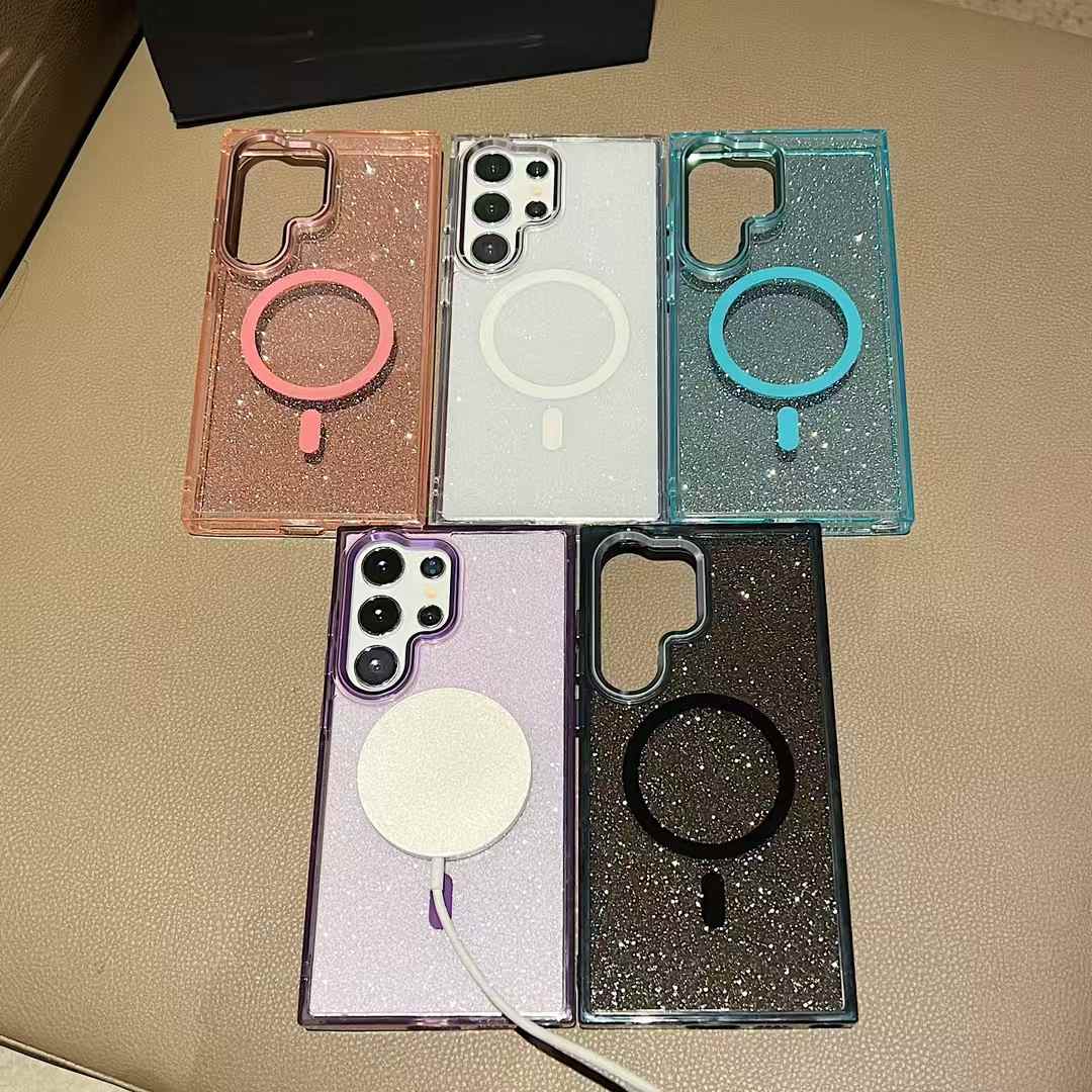 Glitter Transparent Strong Magnetic For Magsafe Phone Case For Samsung S25Ultra S25+ S25 S24Ultra S23FE S23Ultra S24 S23 Metal Frame Shockproof Bumper Acrylic Hard Cover