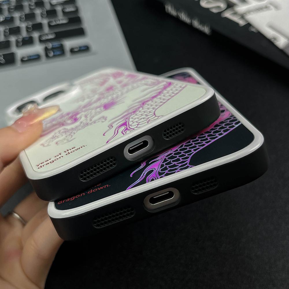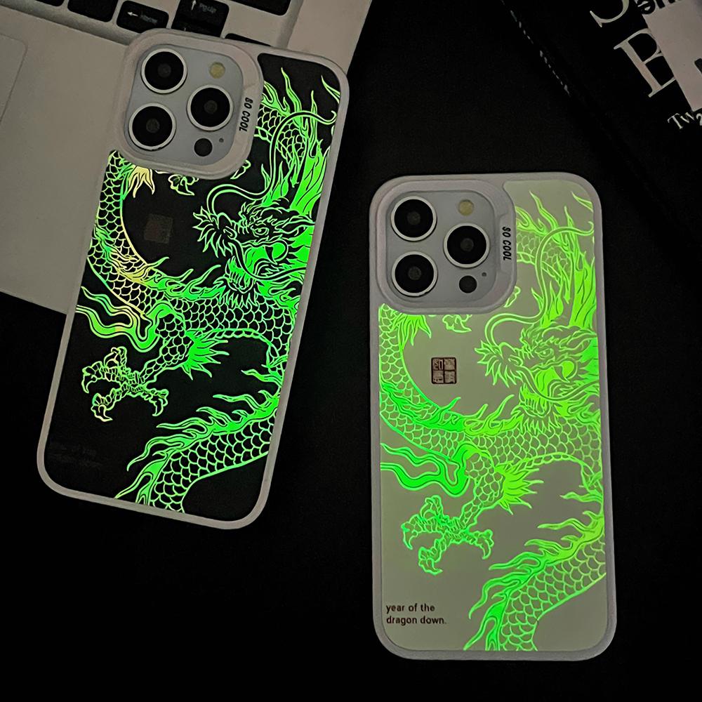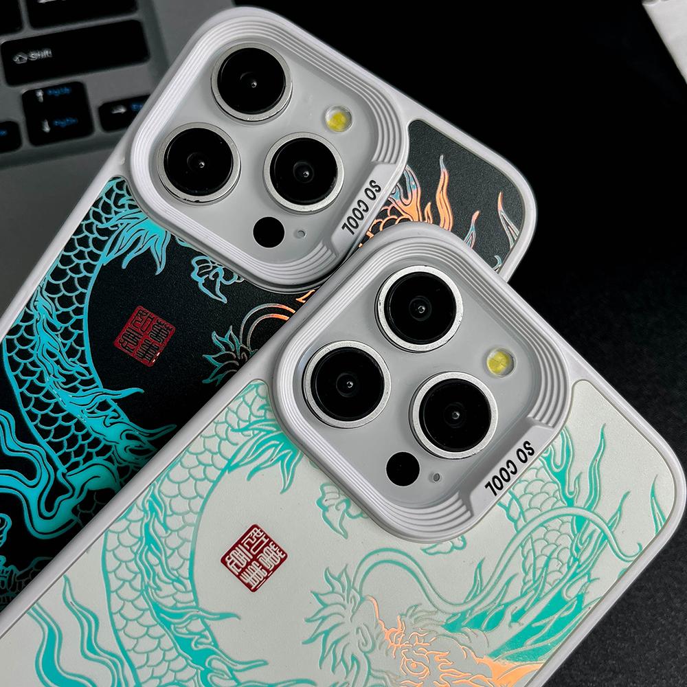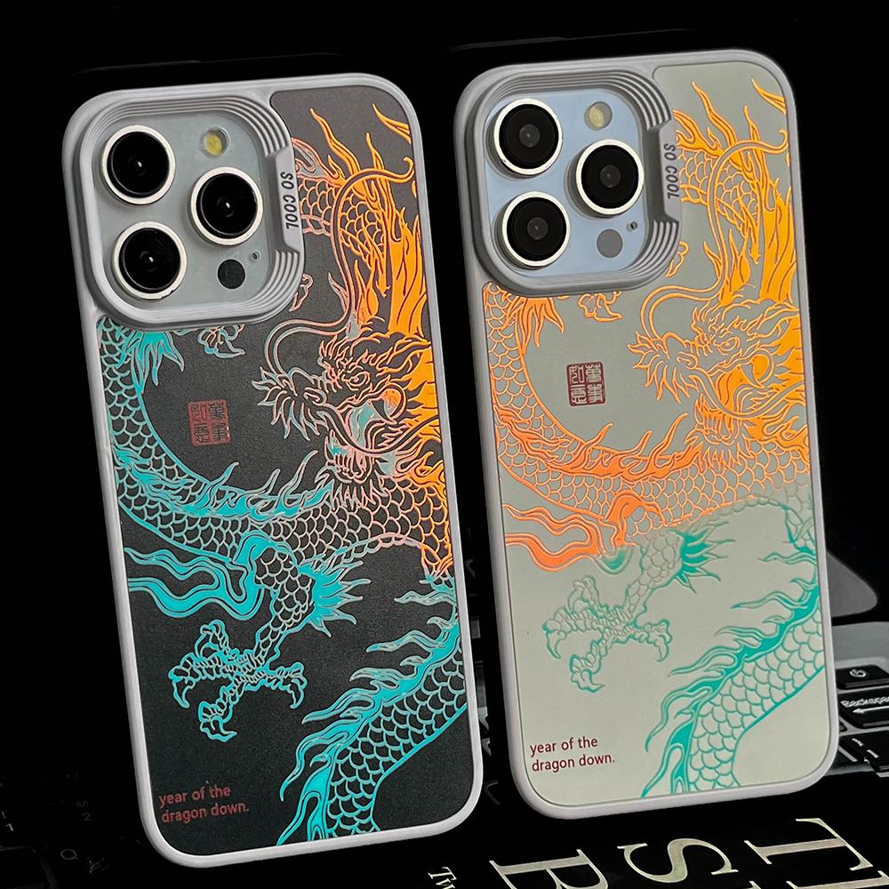 Gradient Color Luminous Dragon Phone Case For iPhone 16ProMax 16 15 14 13 12 11 Pro Max Plus Shockproof Protection Hard Full Cover