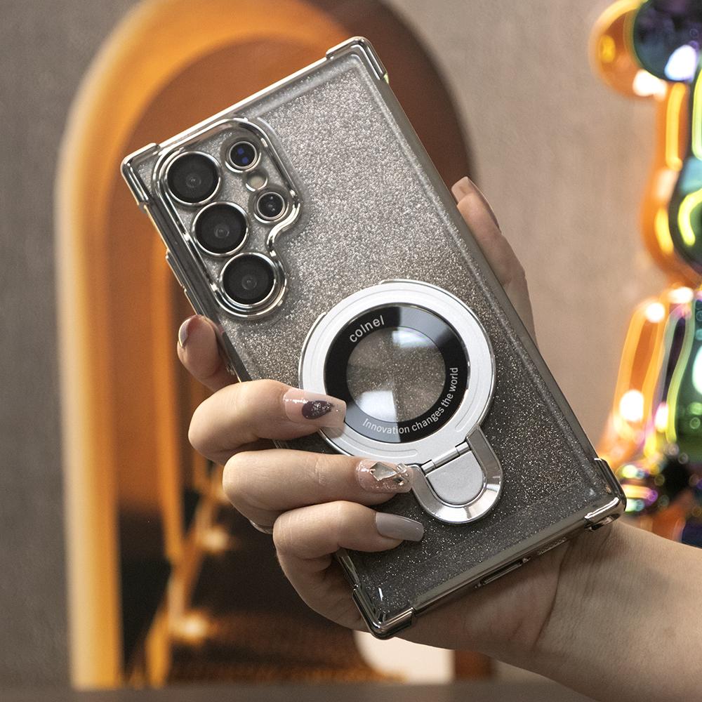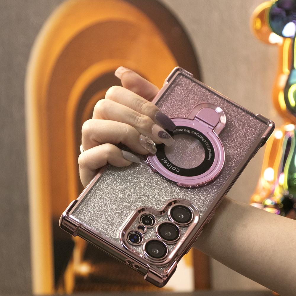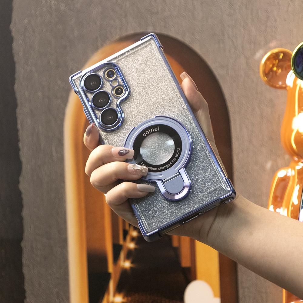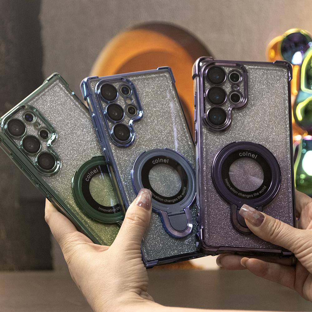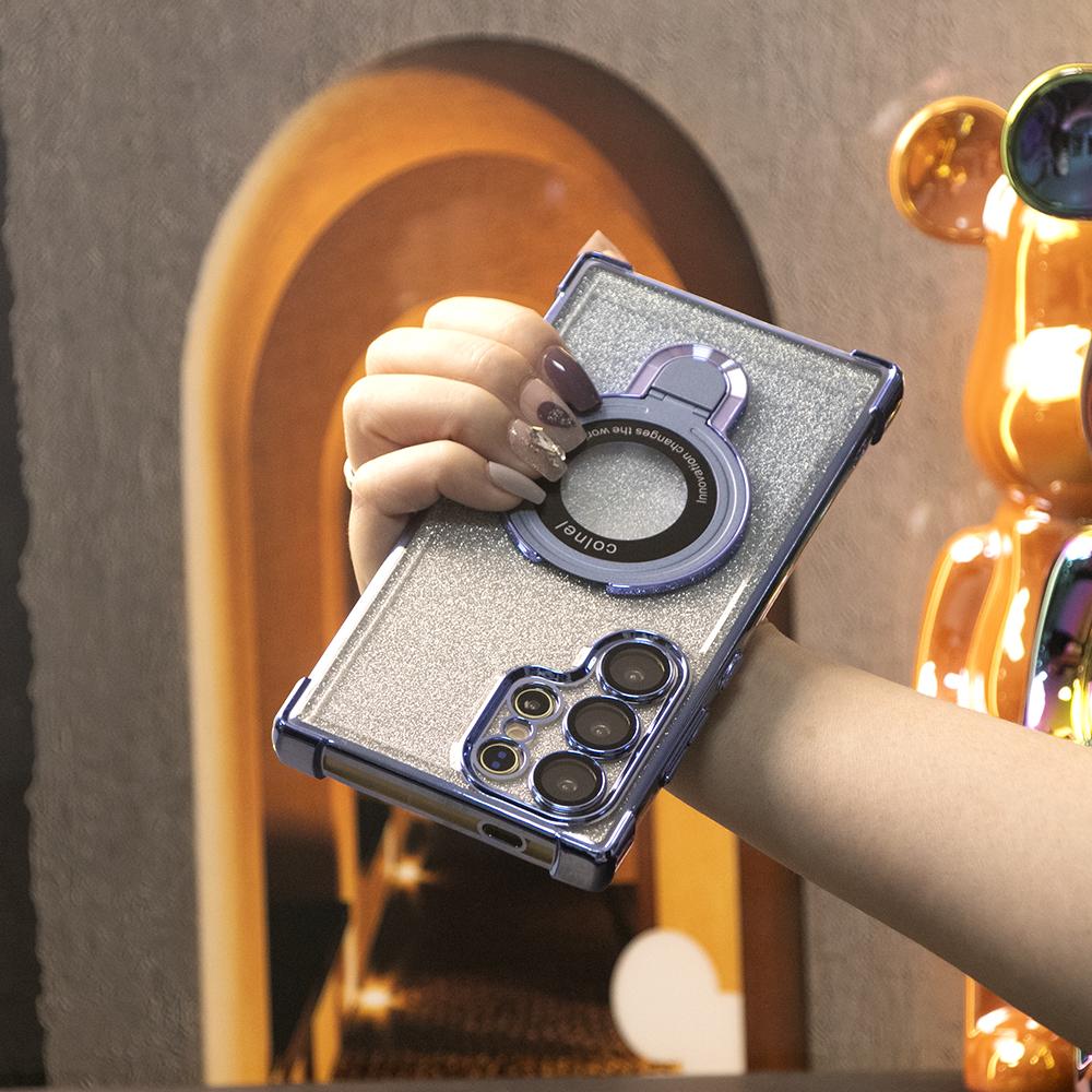 Gradient Plating Four Corners Shockproof Clear Kickstand Case for Samsung S25Ultra S25+ S25 S24Ultra S24FE S24 S23 FE S22 Plus A53 A54 A55 Transparent Hard Acrylic Hybrid Bumper Armor Cover