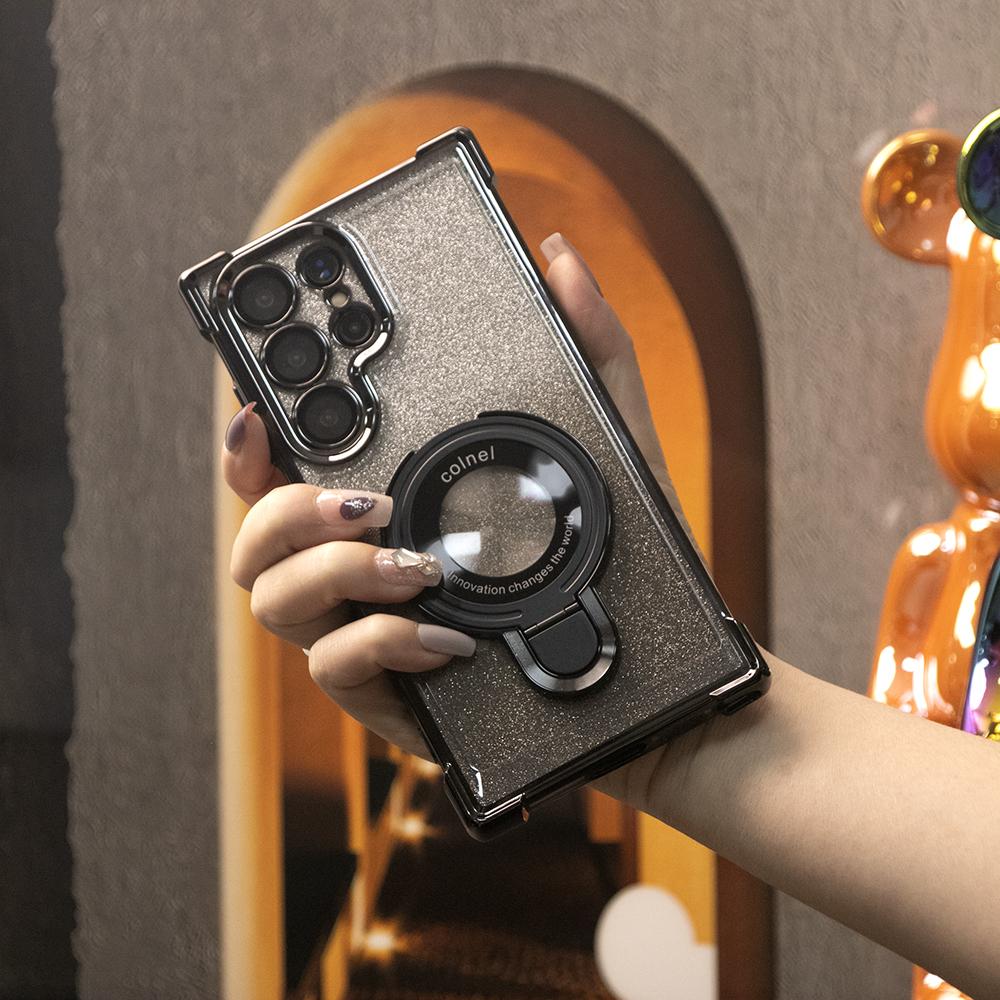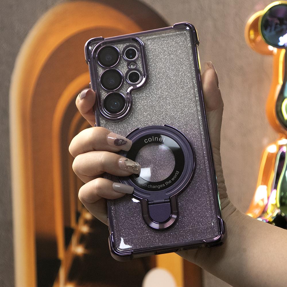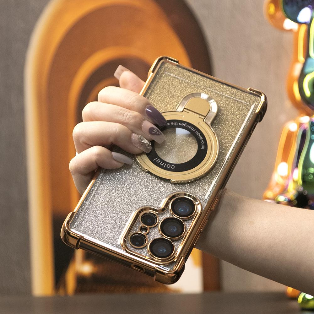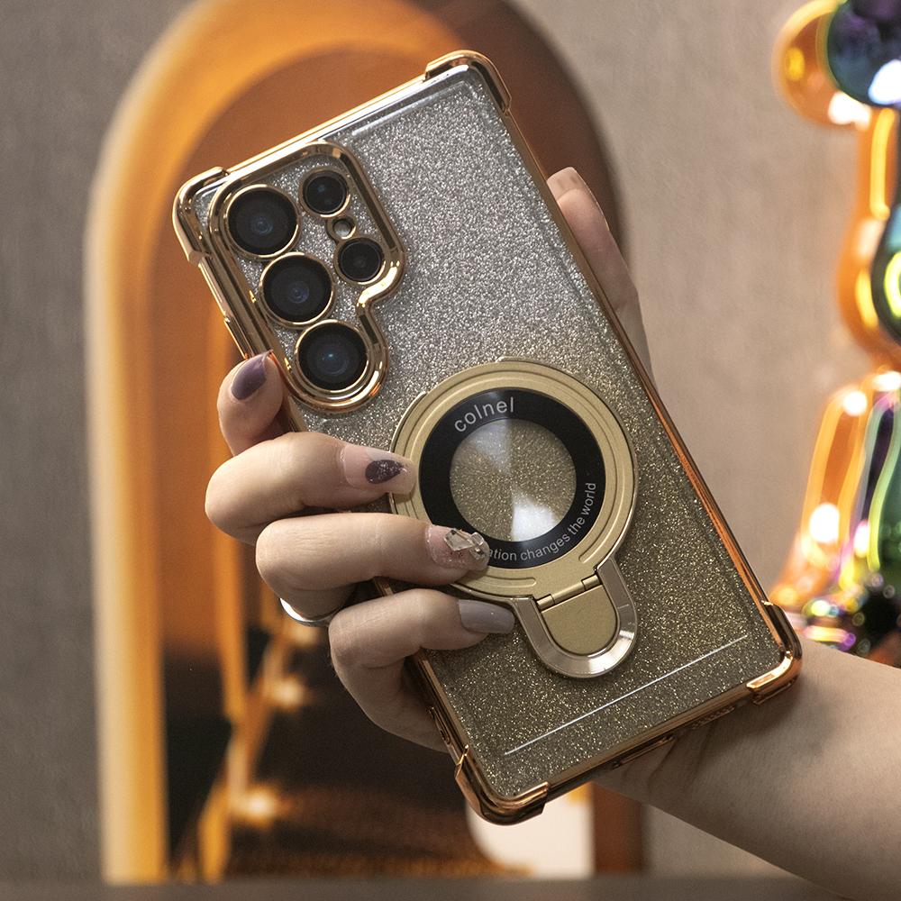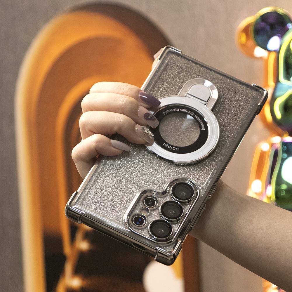 Gradient Plating Four Corners Shockproof Clear Kickstand Case for Samsung S25Ultra S25+ S25 S24Ultra S24FE S24 S23 FE S22 Plus A53 A54 A55 Transparent Hard Acrylic Hybrid Bumper Armor Cover