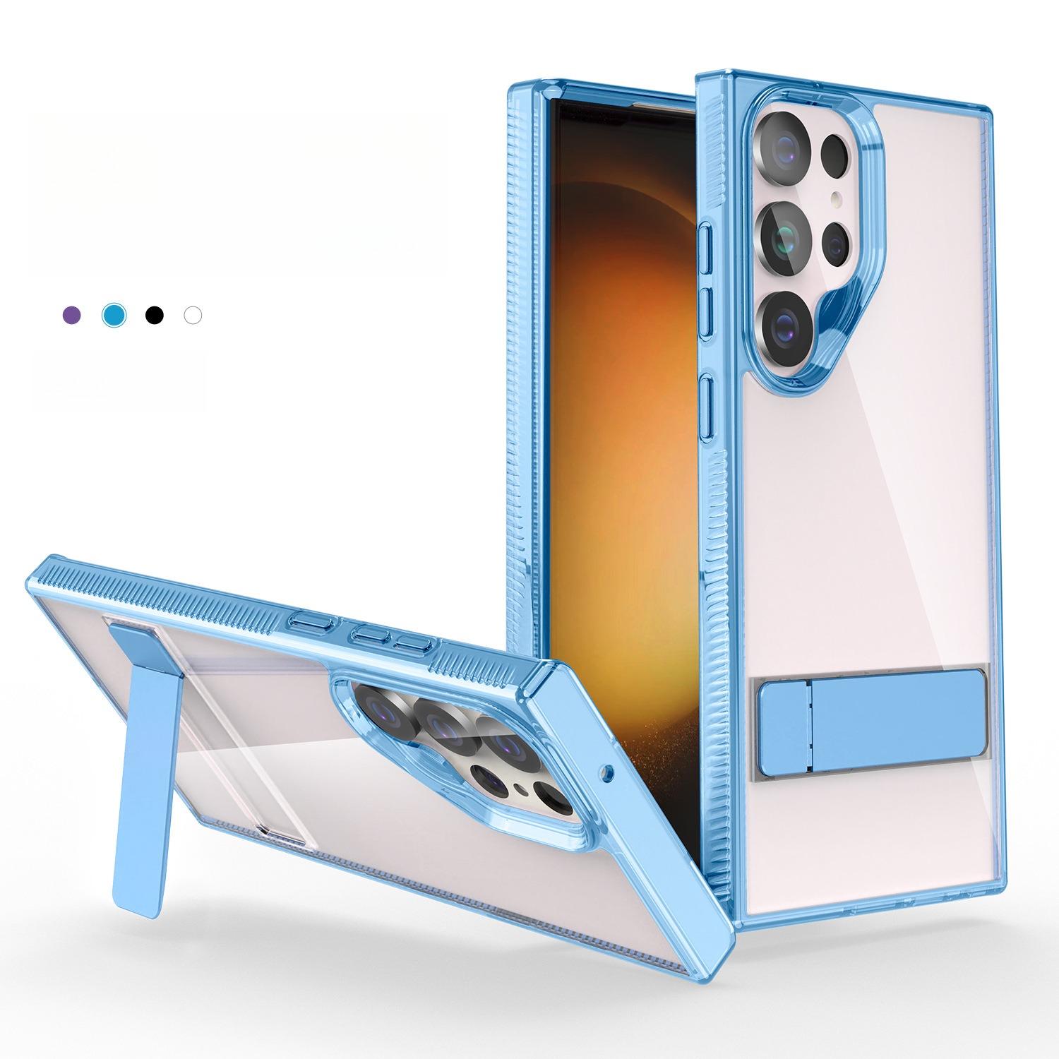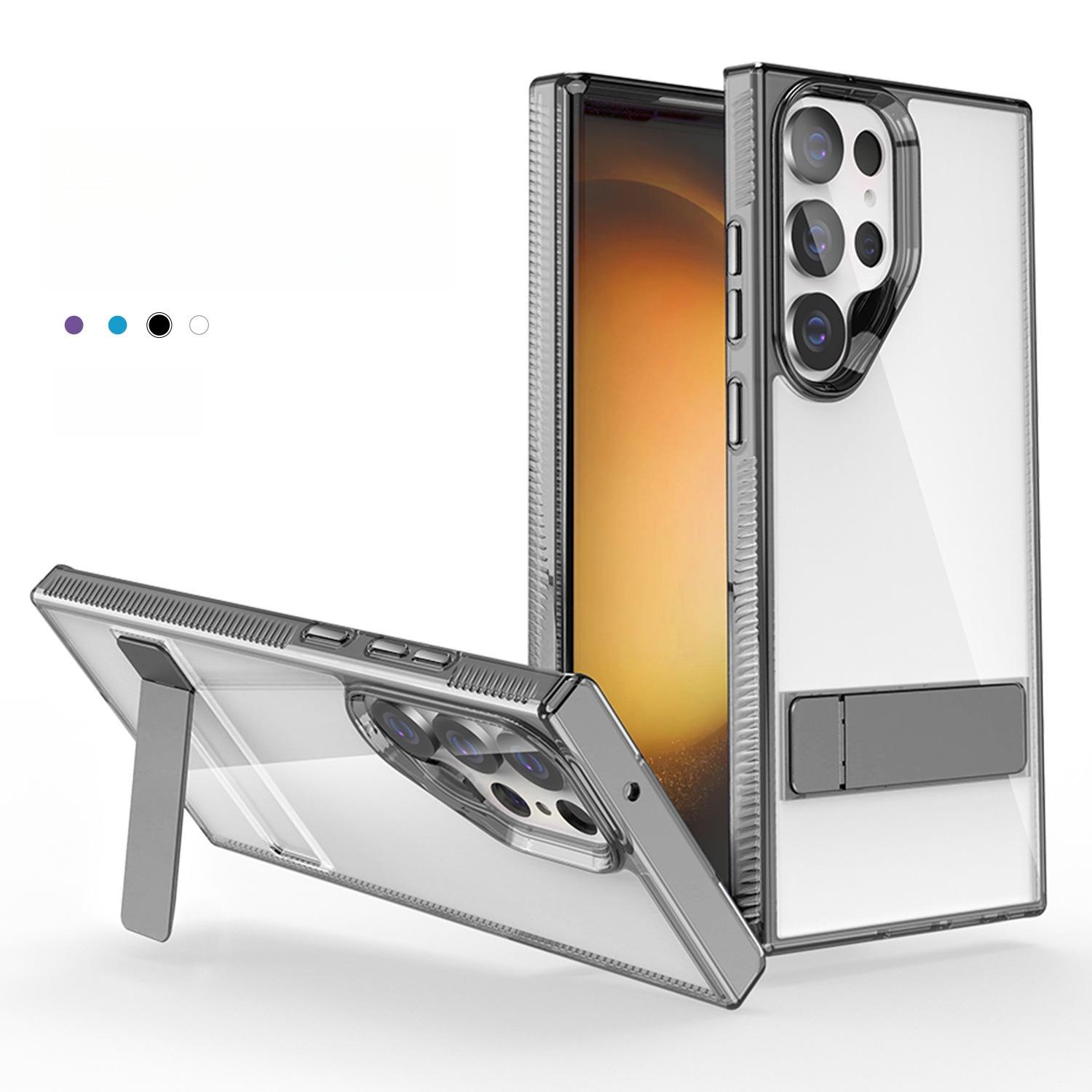 High Definition Transparent Anti-Fall Bumper Shockproof Clear Phone Case With Metal Simple Kickstand for Samsung S25Ultra S25+ S25 S24Ultra S24+ S23Ultra S23+ S23 Hard Full Cover