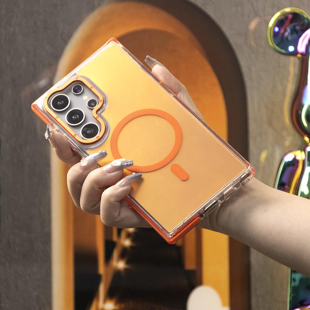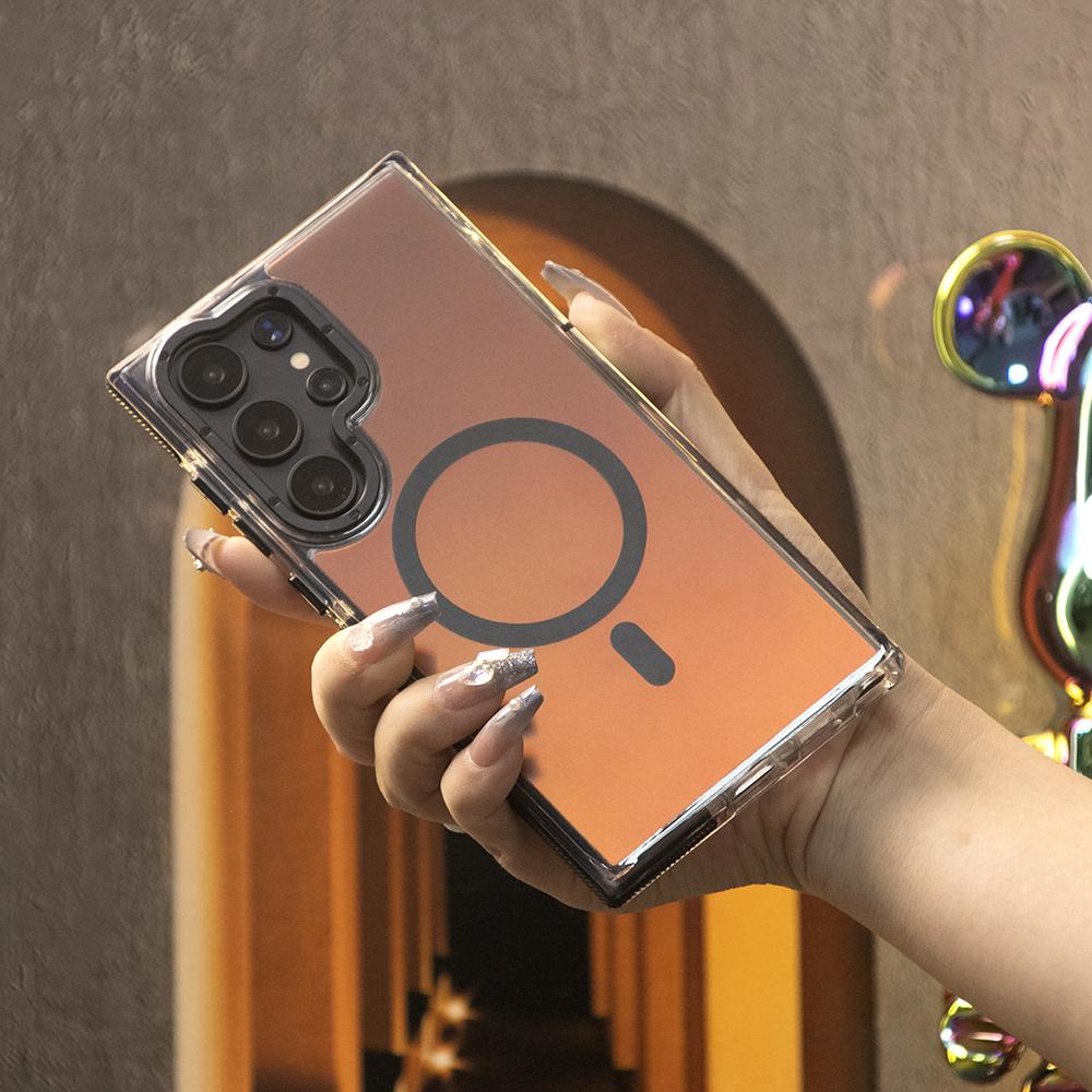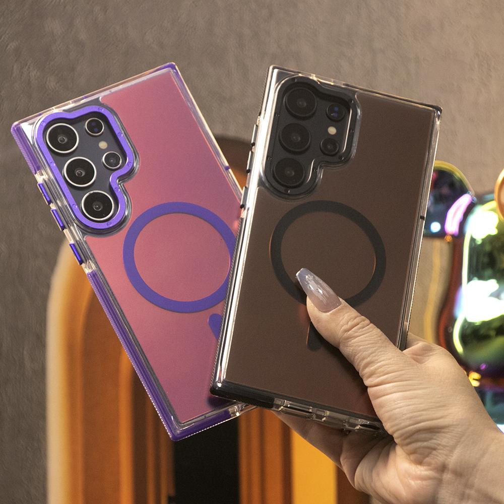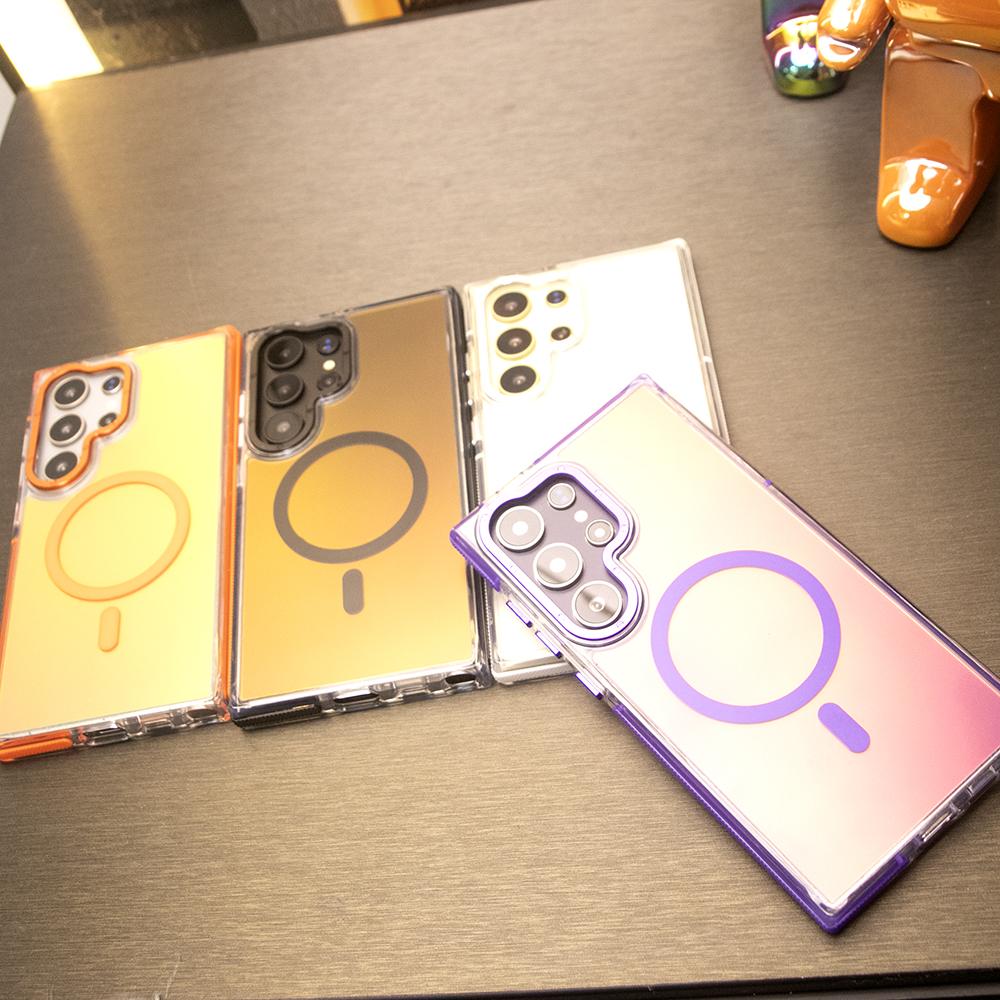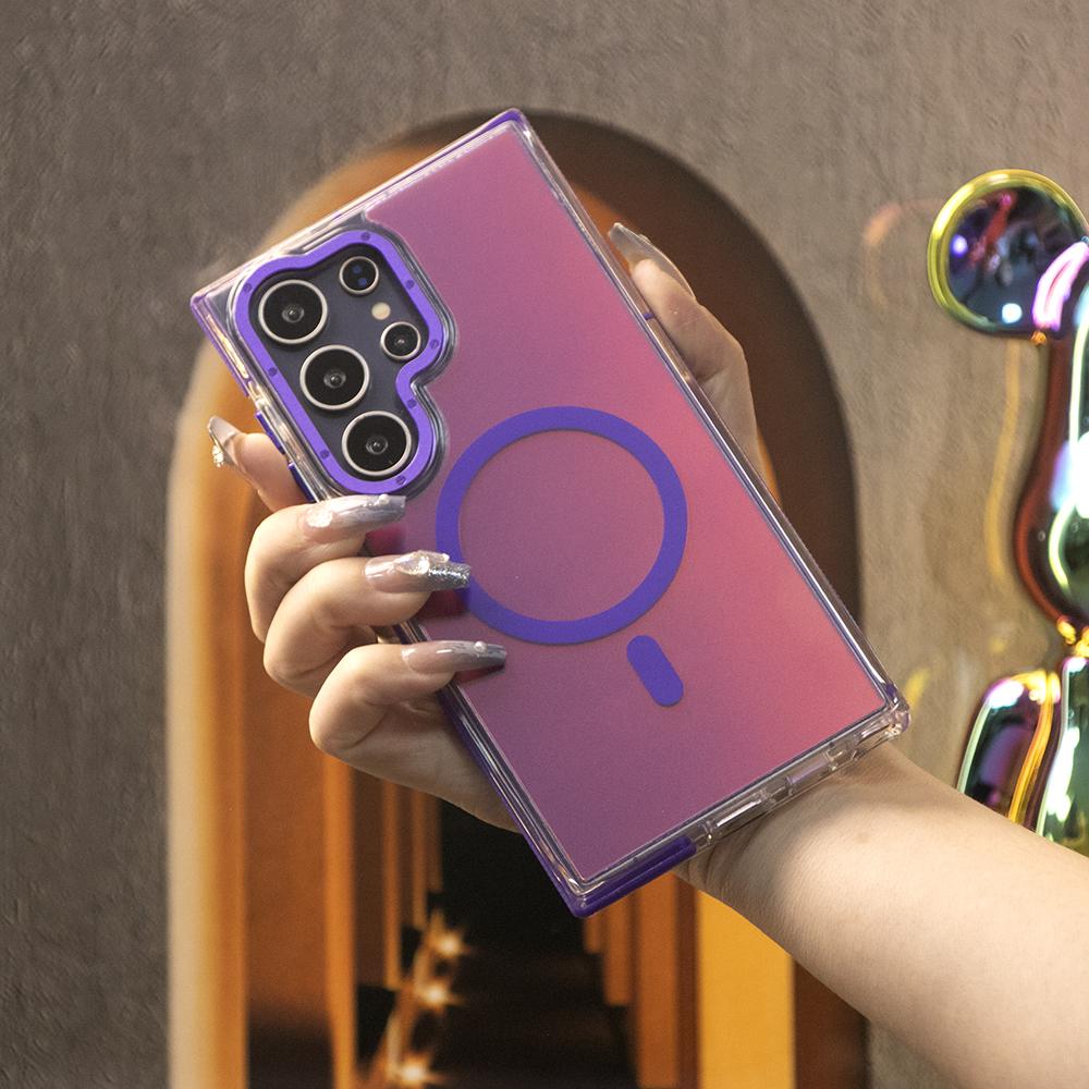 Laser Gradient Chameleon Strong Magnetic Phone Case For Samsung S25Ultra S25 S24 S23 S22 S21FE A06 A15 A16 A25 A35 A36 A53 A54 A55 Metal Frame Acrylic Shockproof Cover