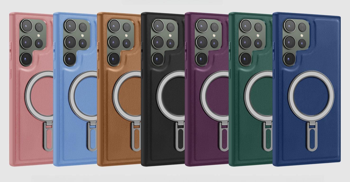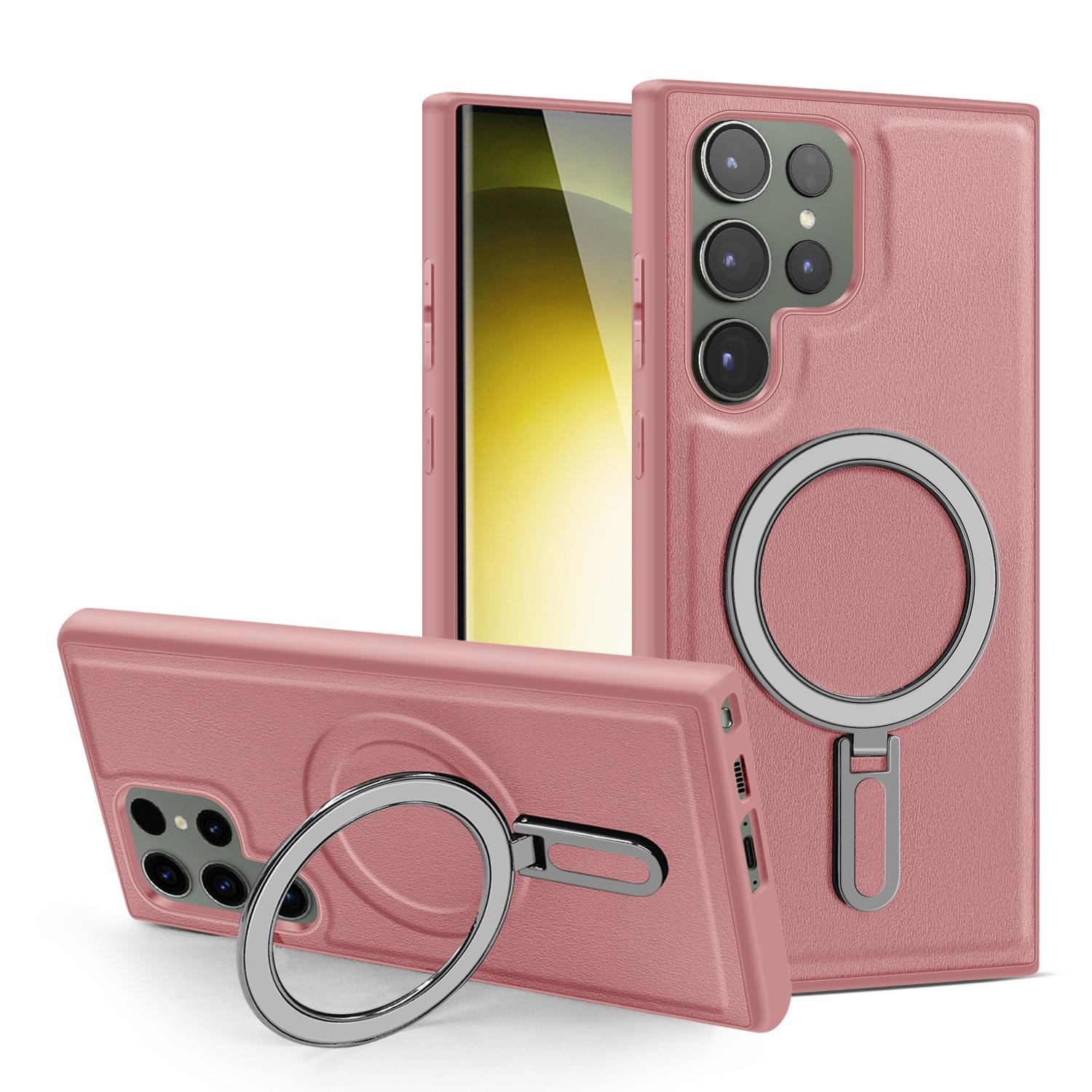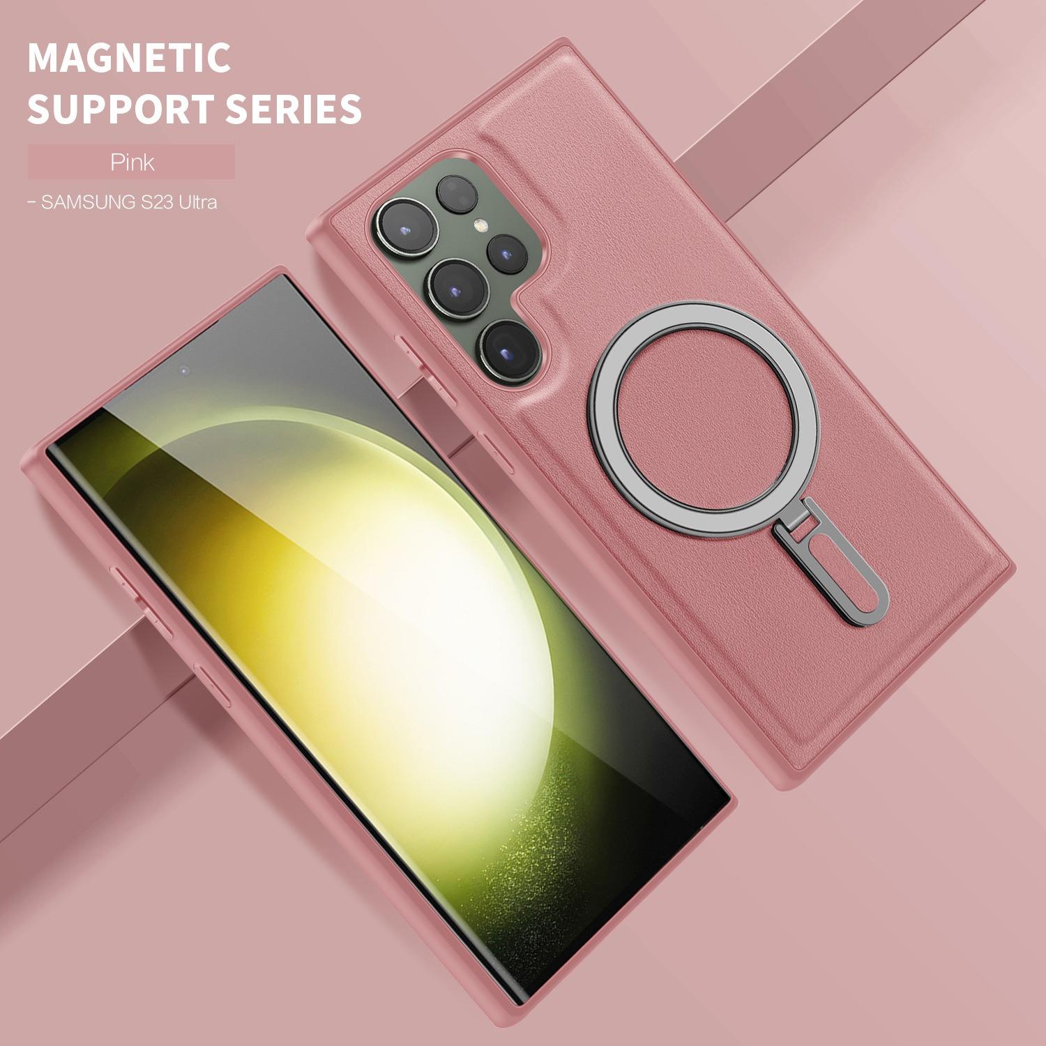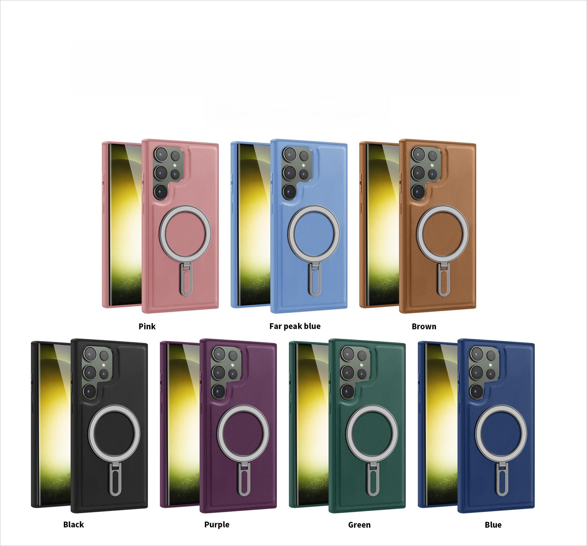 Luxury Full Leather Glossy Kickstand Phone Case For Magsafe For Samsung S25Ultra S25+ S25 S24FE S24 Ultra S23 S22 Ultra Plus Metal Ring Magnetic Metal Holder Shockproof Stand Back Cover
