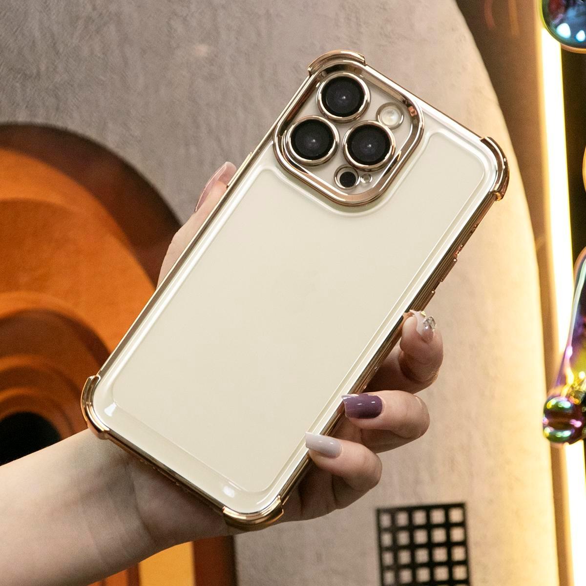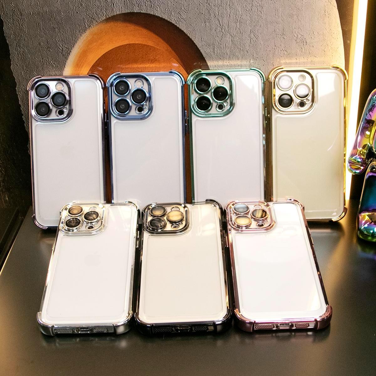 Luxury Plating Four Corners Shockproof Clear Case For iPhone 16 15 14 13 12 11 XR XSMax X/XS Transparent Built-in Camera Protector Hard Acrylic Bumper Armor Full Cover