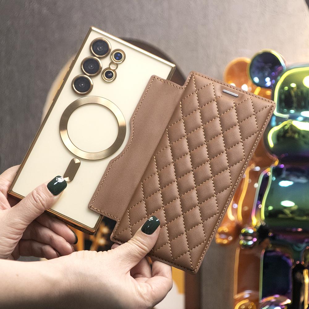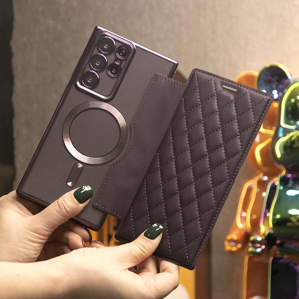 Strong Magnetic Suction Flip Leather Phone Case For Samsung S25Ultra S25 S24 S23 S22 Ultra Plus A15 A16 A35 A55 A05 Case High Leather Card Slot Equipped With Lens Protector Case