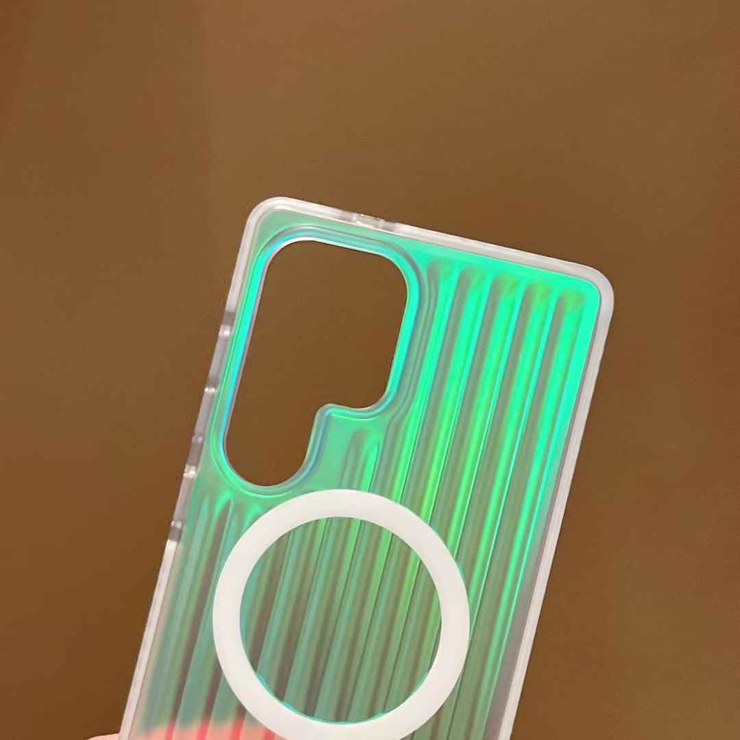 Transparent Gradient Corrugated Grille Suitcase Strong Magnetic Hard Polycarbonate Shockproof Phone Case with Bumper Strip for Samsung S25Ultra Matte Frozen Fog Full Cover