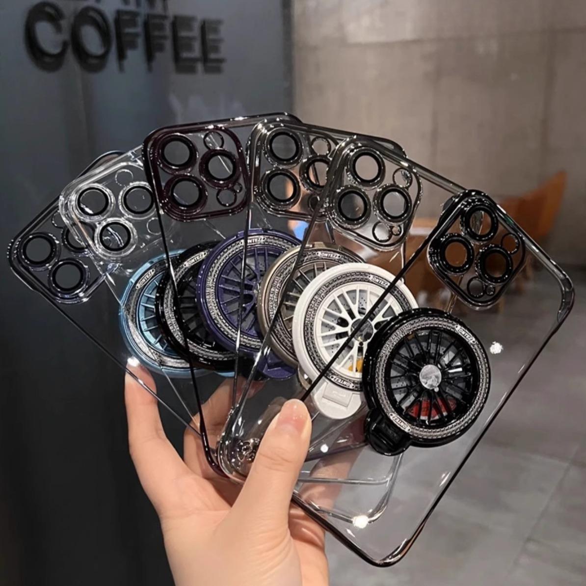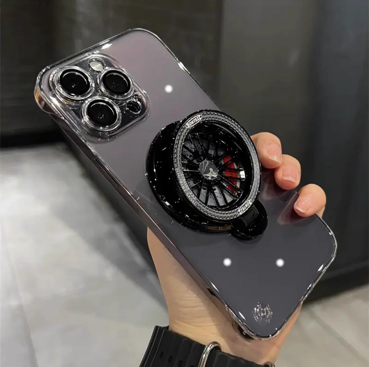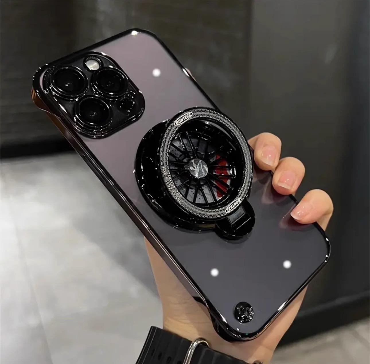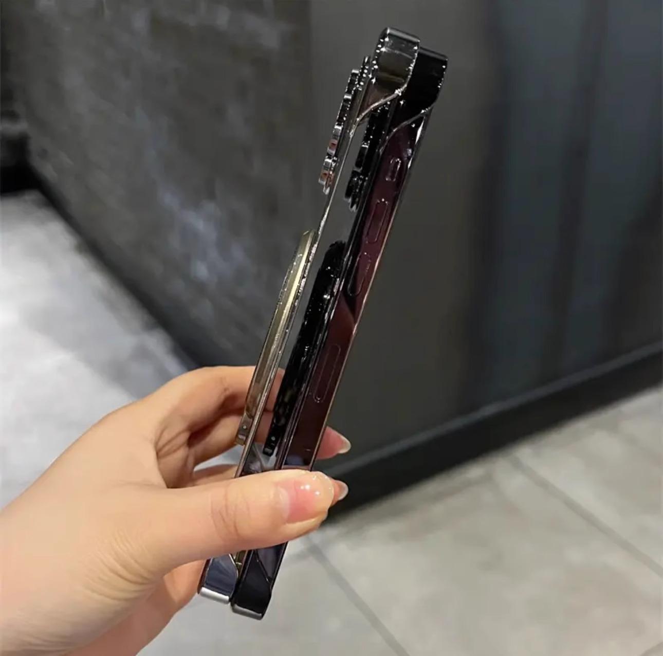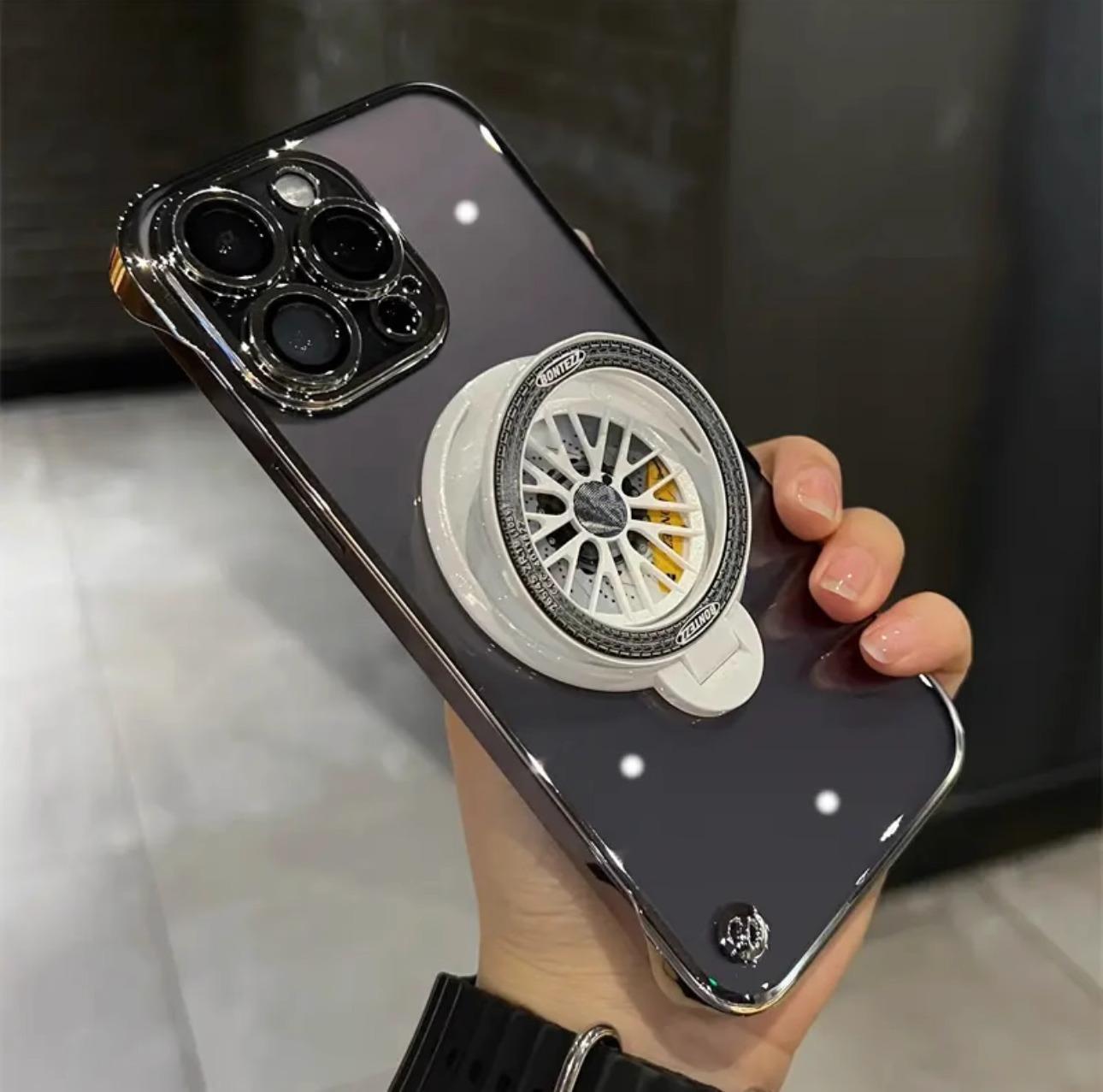 Ultra Slim Frameless Plating PC with Len Protector Phone Case with Metal Magnetic Gyro Rotating Kickstand For iPhone 16ProMax 15 14 13 12 Shockproof Support Wireless Charging Hard Full Cover