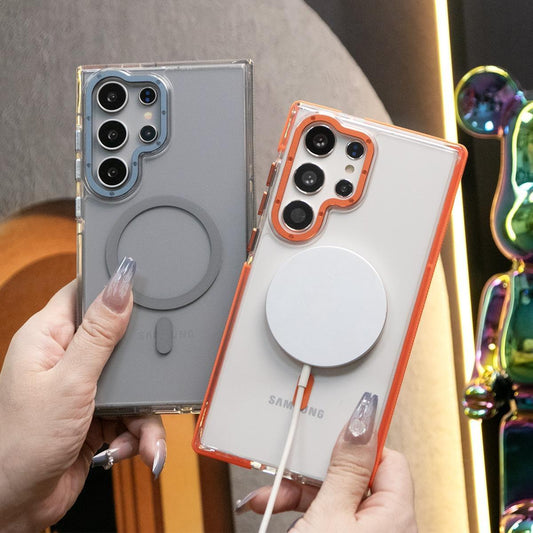 Clear Dual Color Strong Magnetic Wireless Charging Case For Samsung S25Ultra S24+ S23FE A14 A15 A16 A24 A25 A34 A35 A54 A55 Clear Shockproof Metal Camera Frame Bumper TPU Acrylic Hard Cover