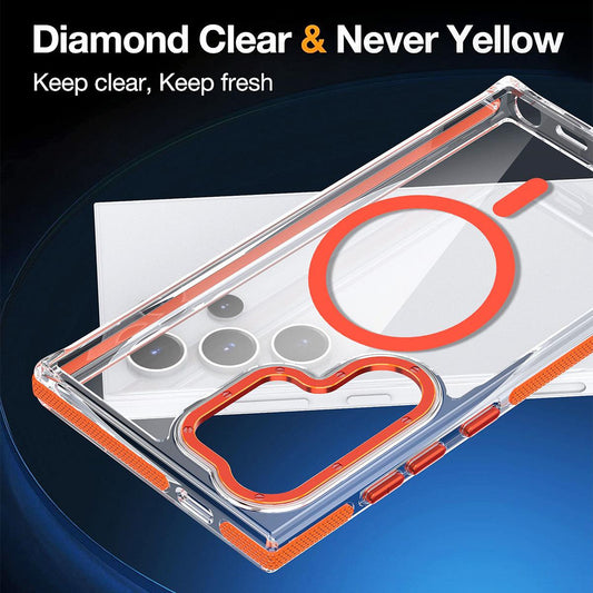 For Samsung S25Ultra S24+ S23FE A14 A15 A16 A24 A25 A34 A35 A54 A55, Clear Dual Color Strong Magnetic Wireless Charging Case Clear Shockproof Metal Camera Frame Bumper TPU Acrylic Hard Cover