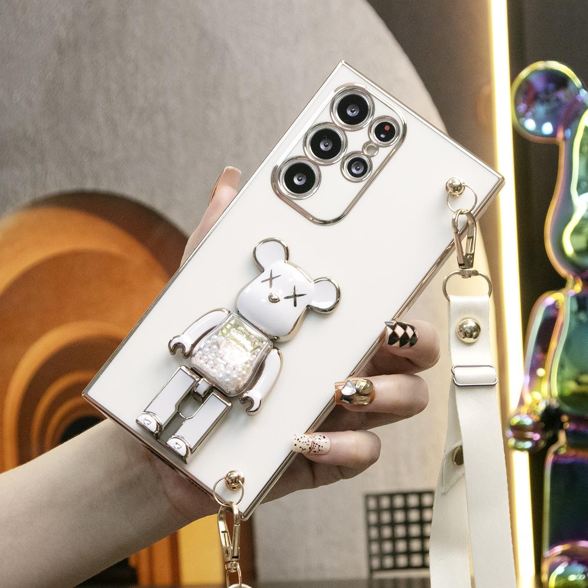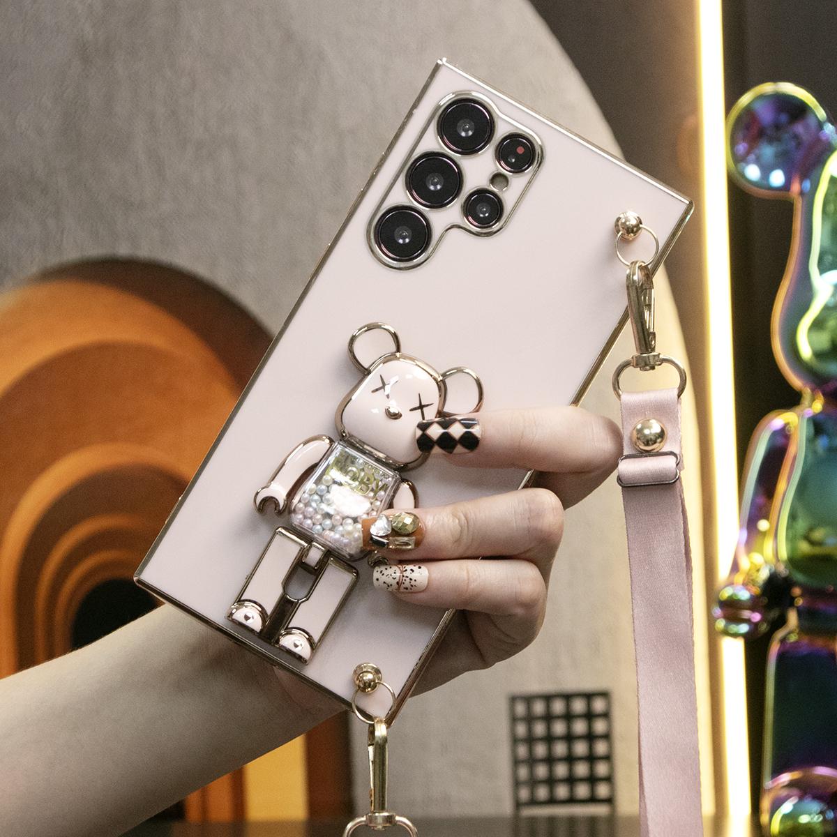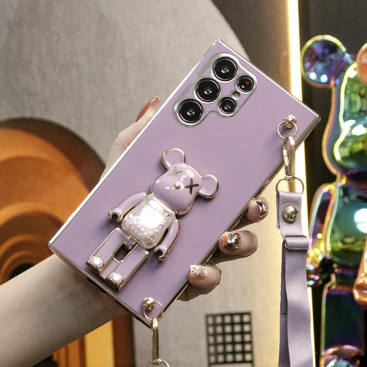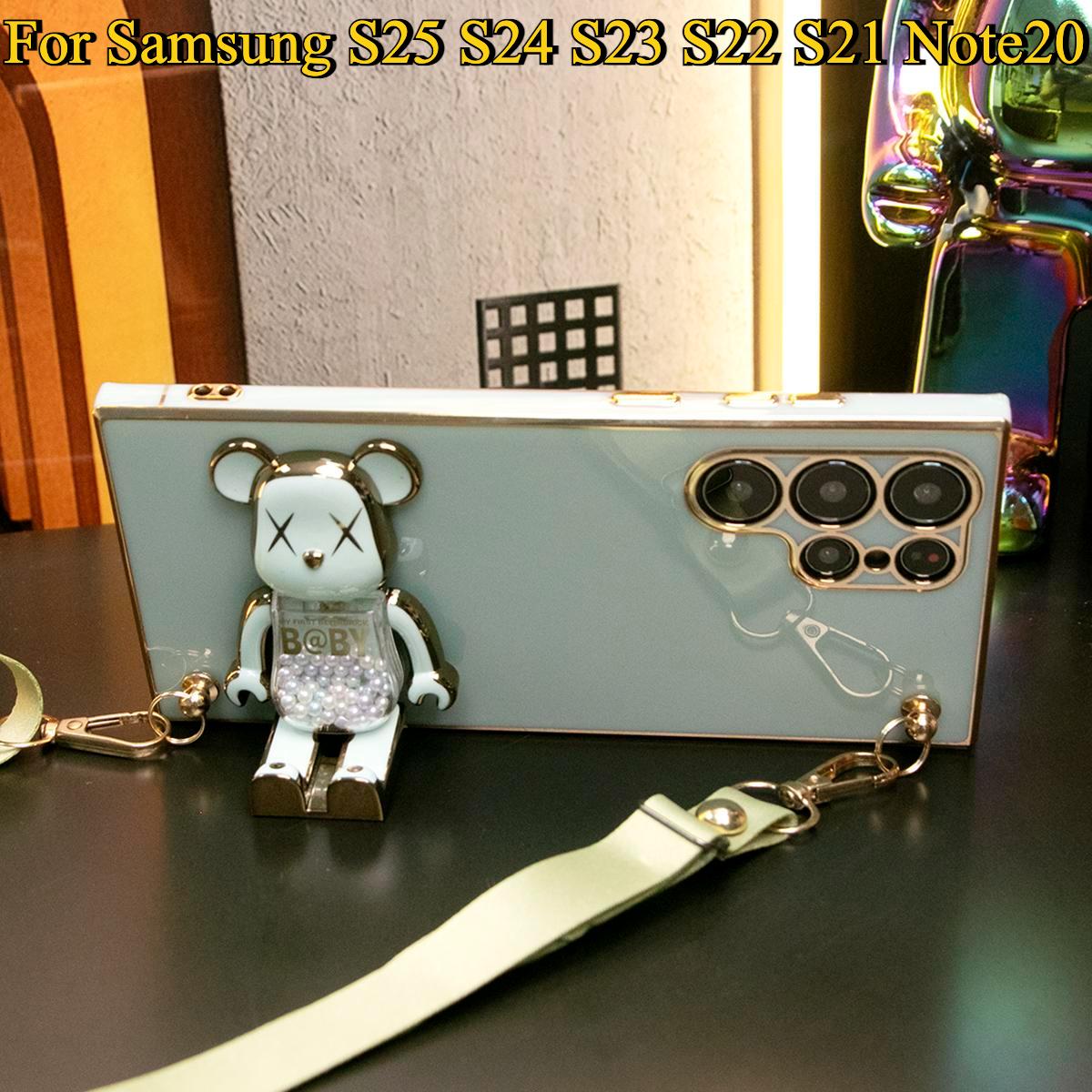 Candy Bear Holder Crossbody Lanyard Phone Case For Samsung S25 S24 S23 S22 S21 Note20 Soft TPU Back Cover