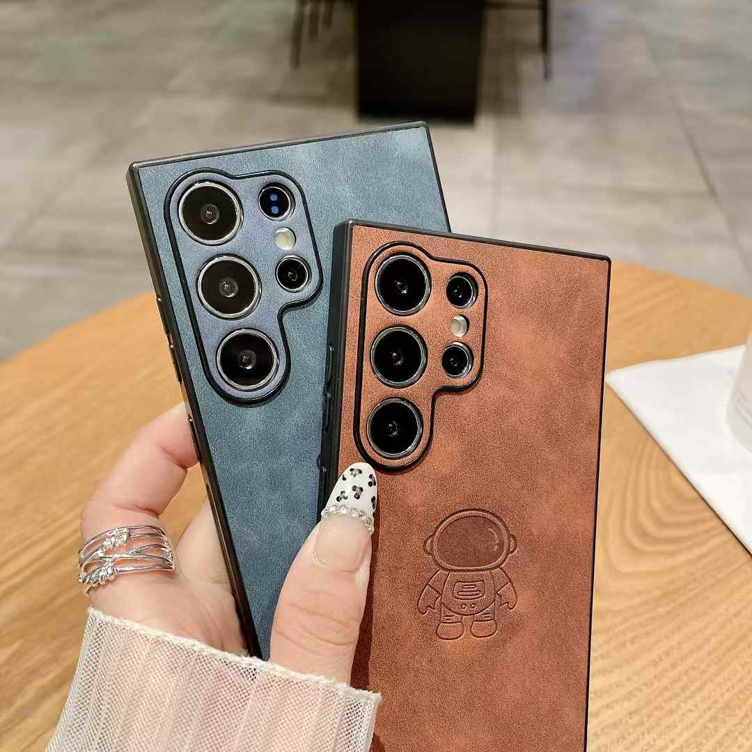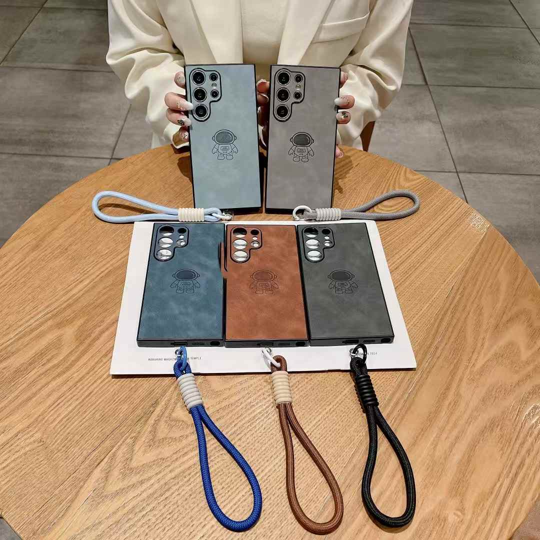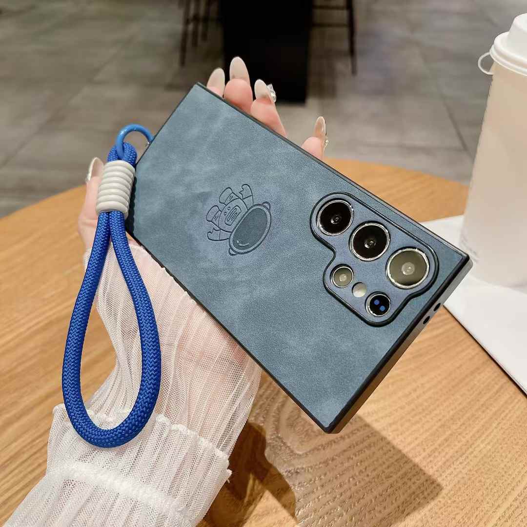 For Samsung S25Ultra S25Edge S24 S23 S22 S21 Note20 A16 A26 A36 A55 A56 Case With Weave Wristband, Astronaut Pattern Matte Suede Leather Shockproof Hard Phone Case