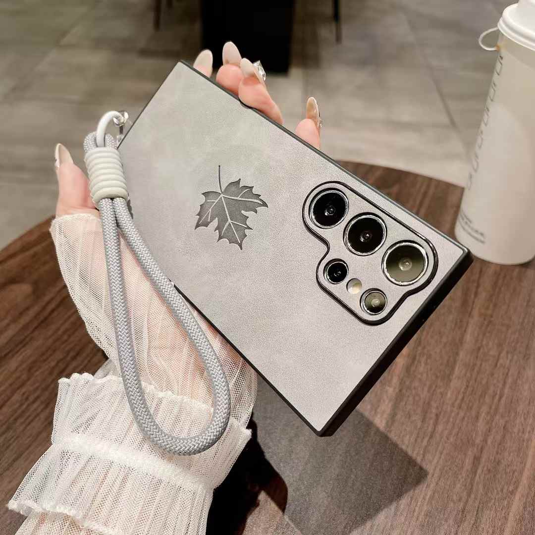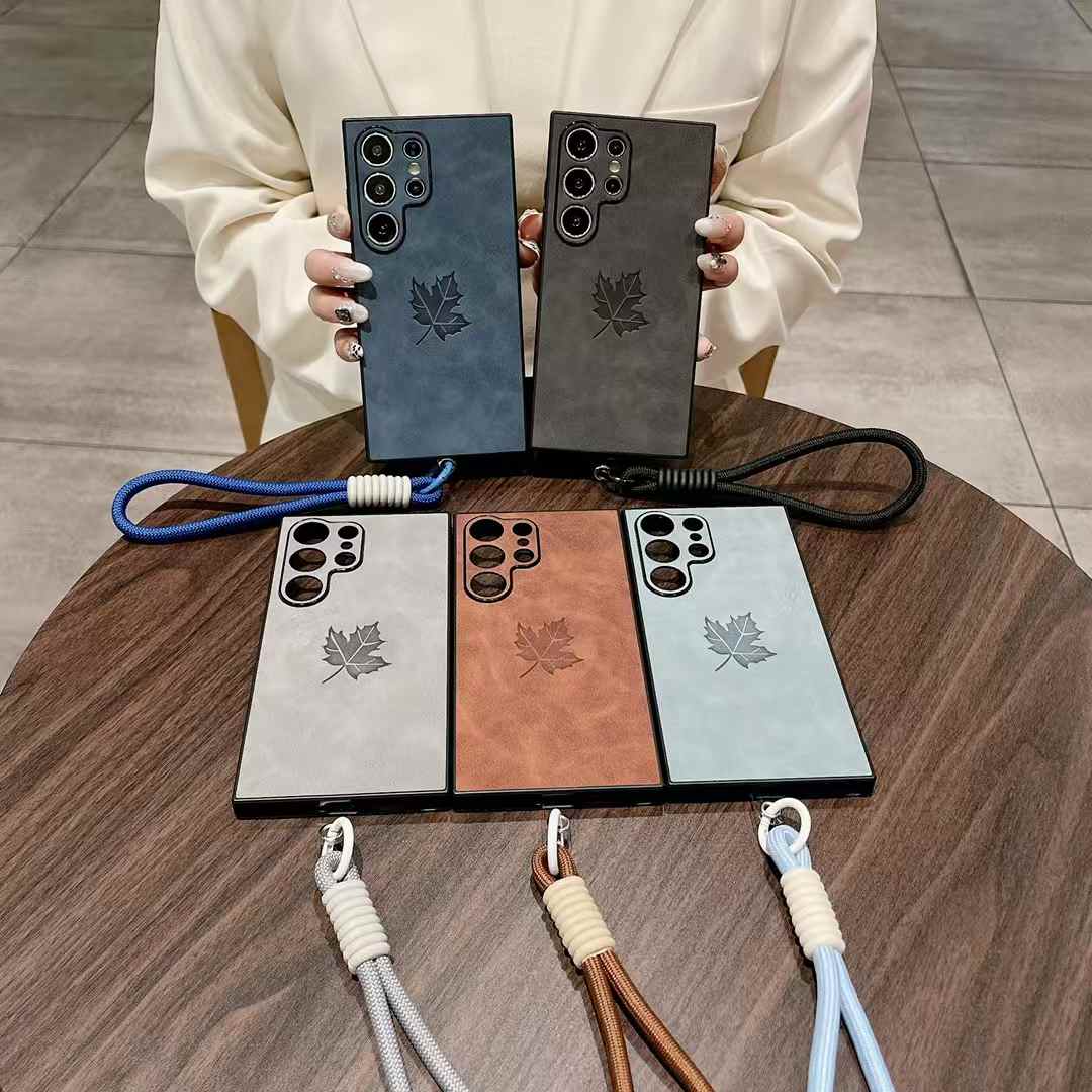 For Samsung S25Ultra S25Edge S24 S23 S22 S21 Note20 A16 A26 A36 A55 A56 Case With Weave Wristband, Maple Leaf Pattern Matte Suede Leather Shockproof Hard Phone Case