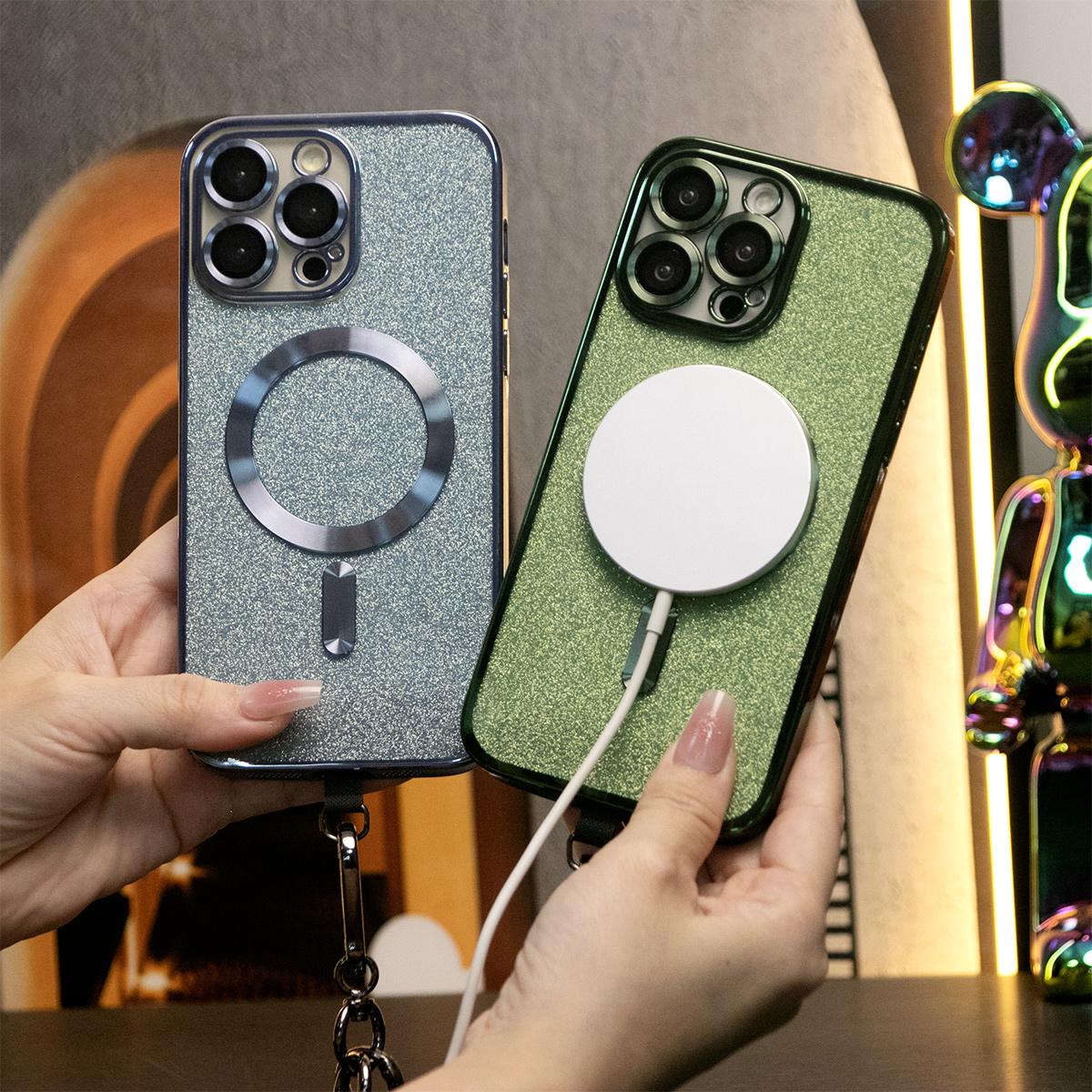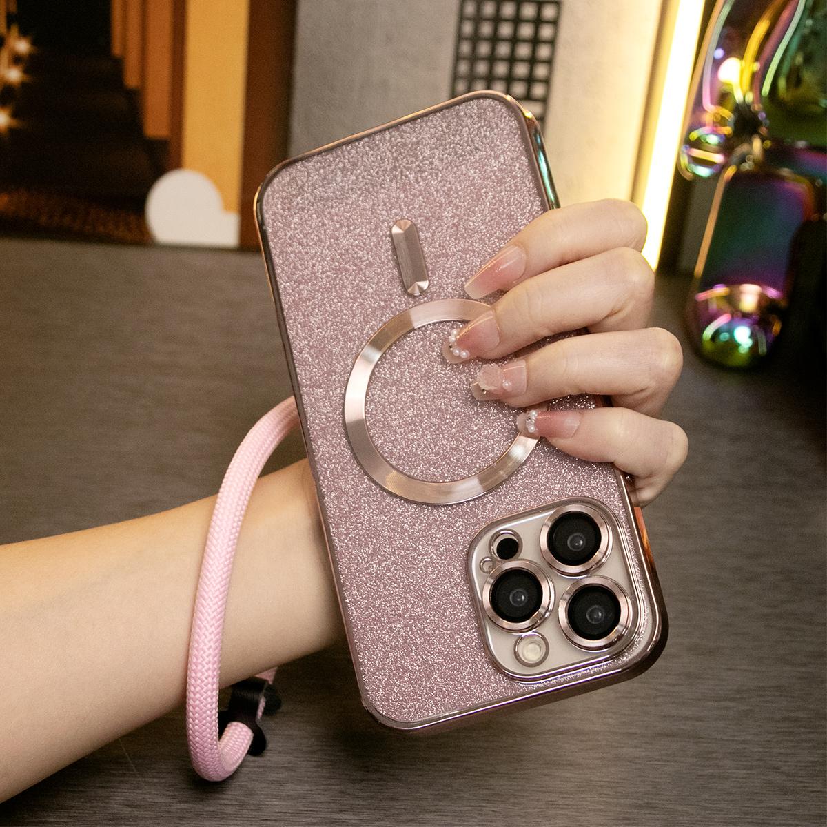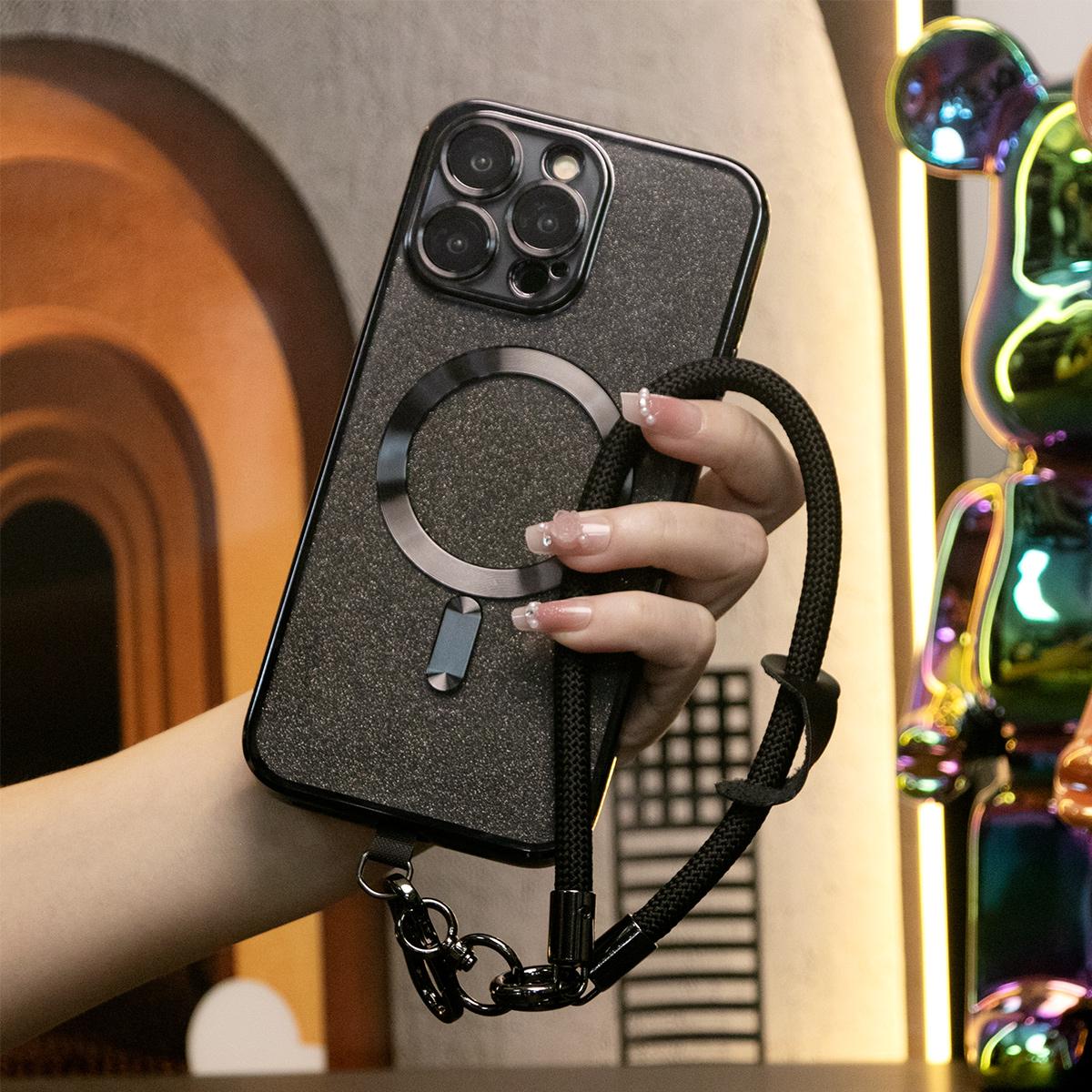 Glitter Magnetic Wireless Charge Transparent Soft Phone Case With Multifunctional Climbing Rope For iPhone 16 15 14 13 12 11 Pro Max