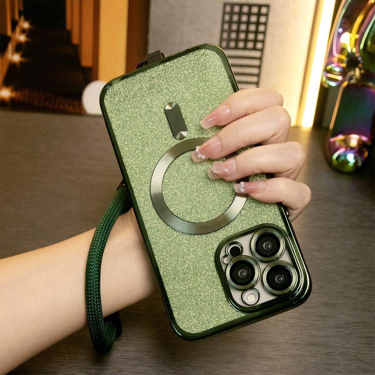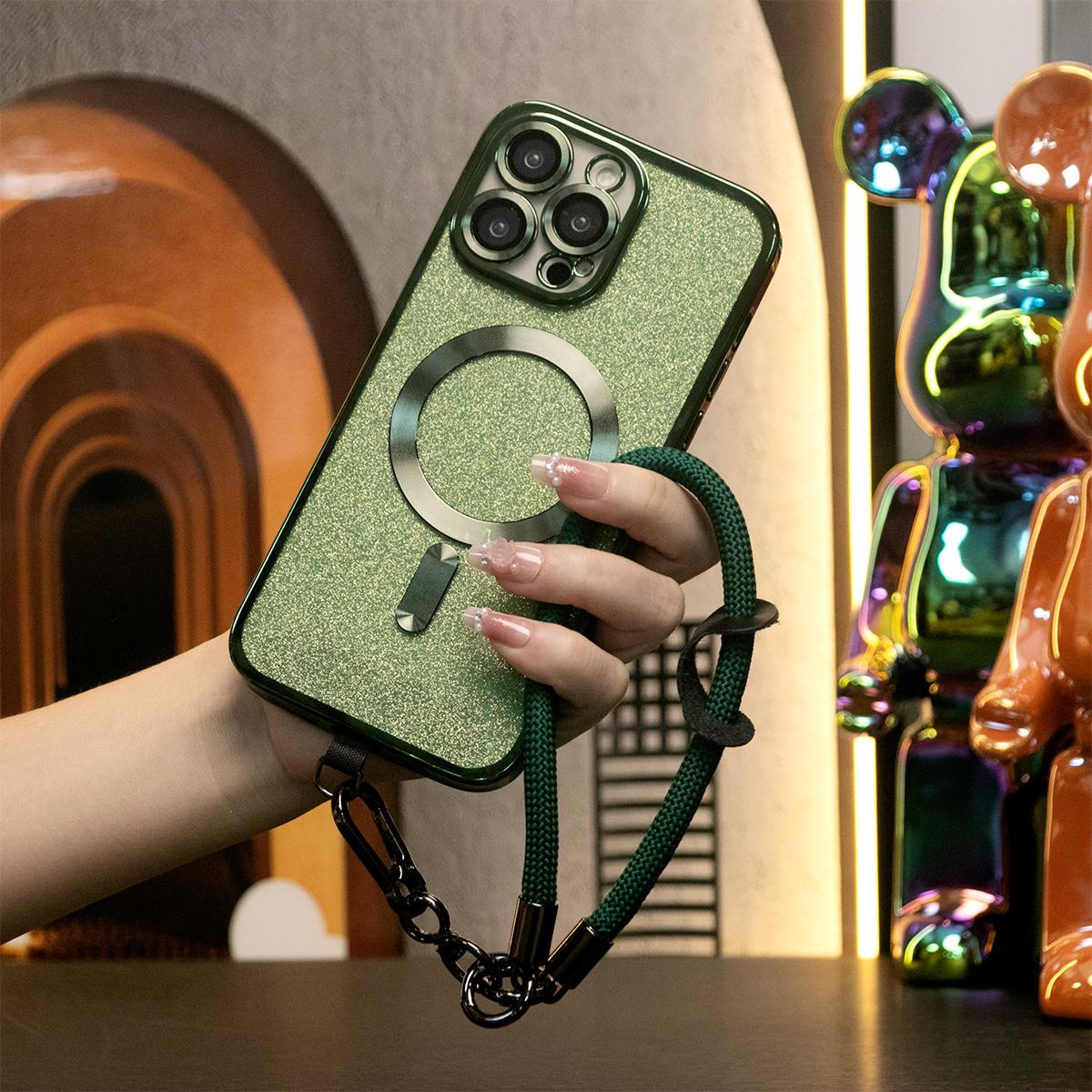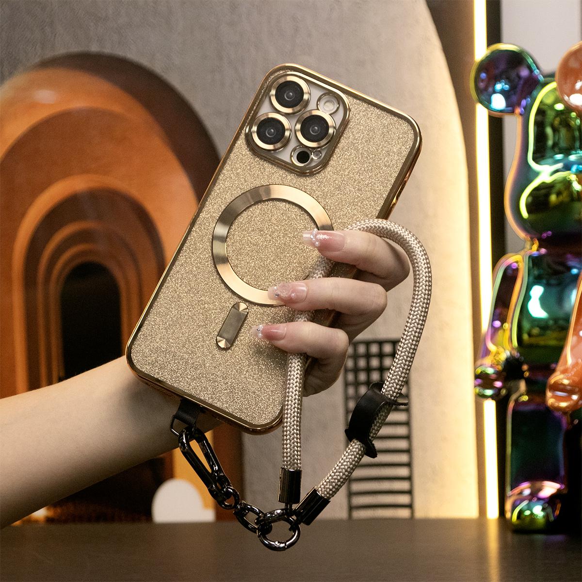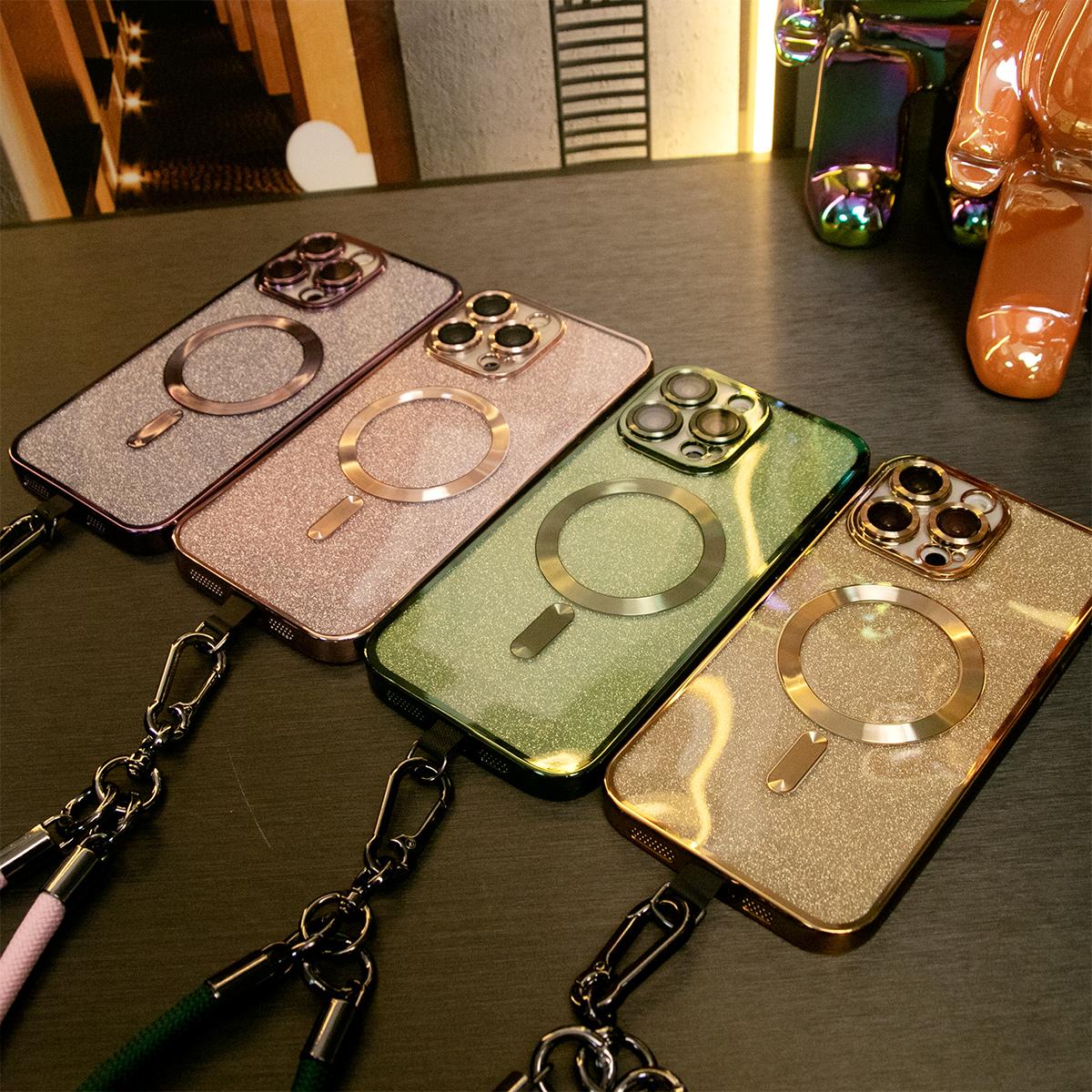 Glitter Magnetic Wireless Charge Transparent Soft Phone Case With Multifunctional Climbing Rope For iPhone 16 15 14 13 12 11 Pro Max