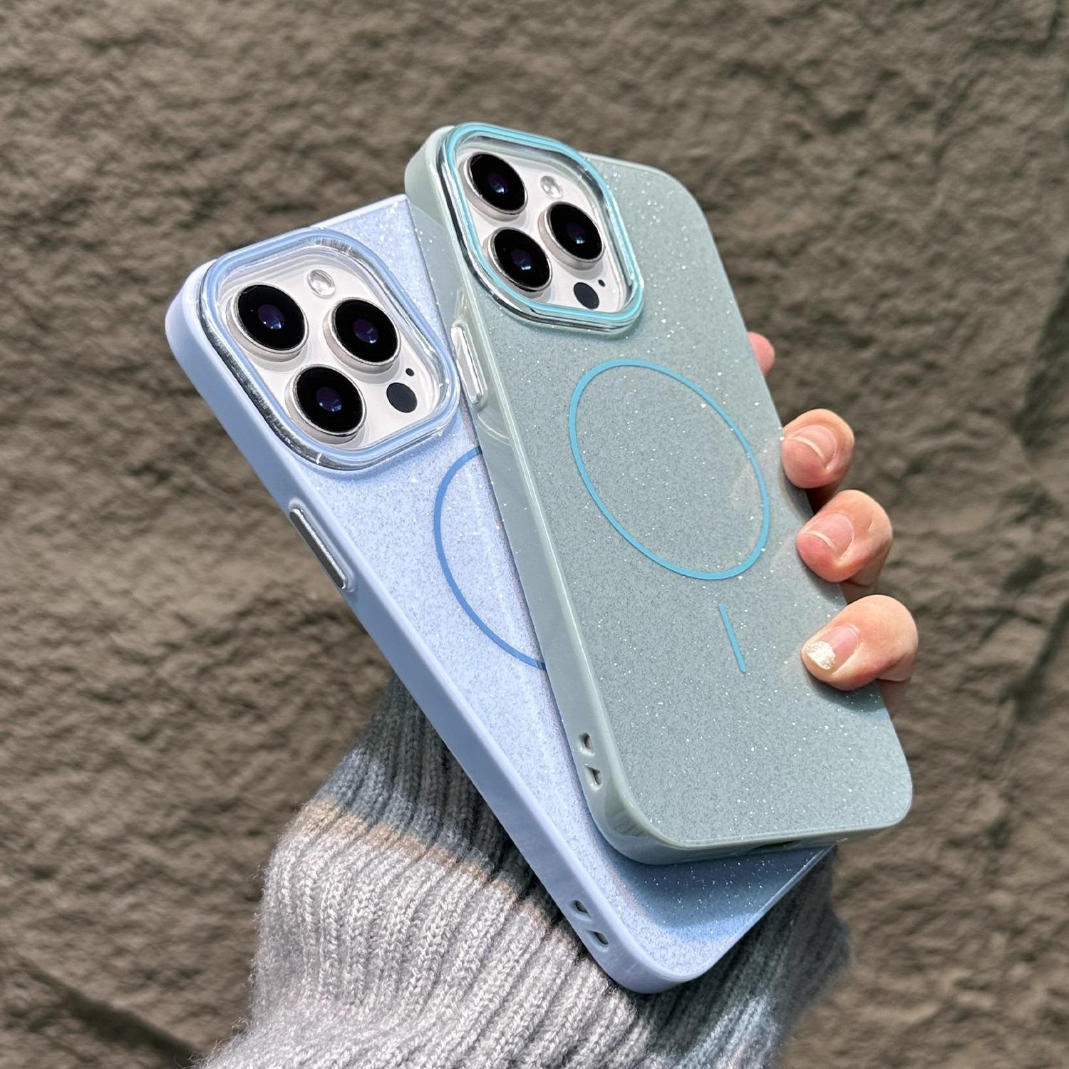 Glitter Thin Ring Magnetic PC Slim Phone Case For iPhone 16ProMax 15 14 13 12 11 Shockproof Hard Full Cover