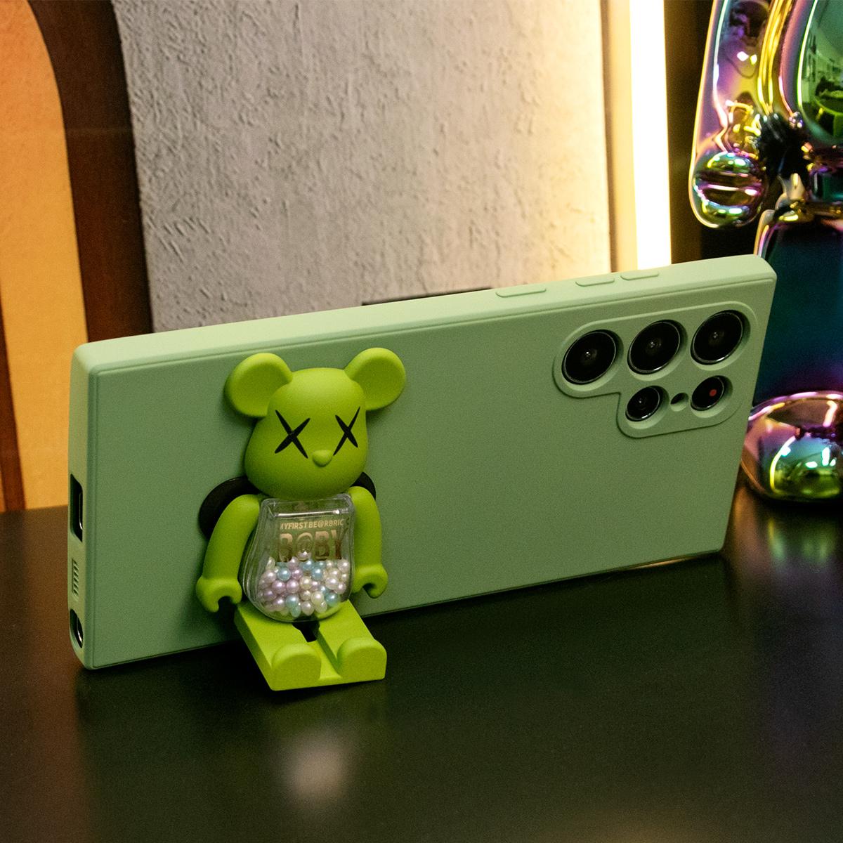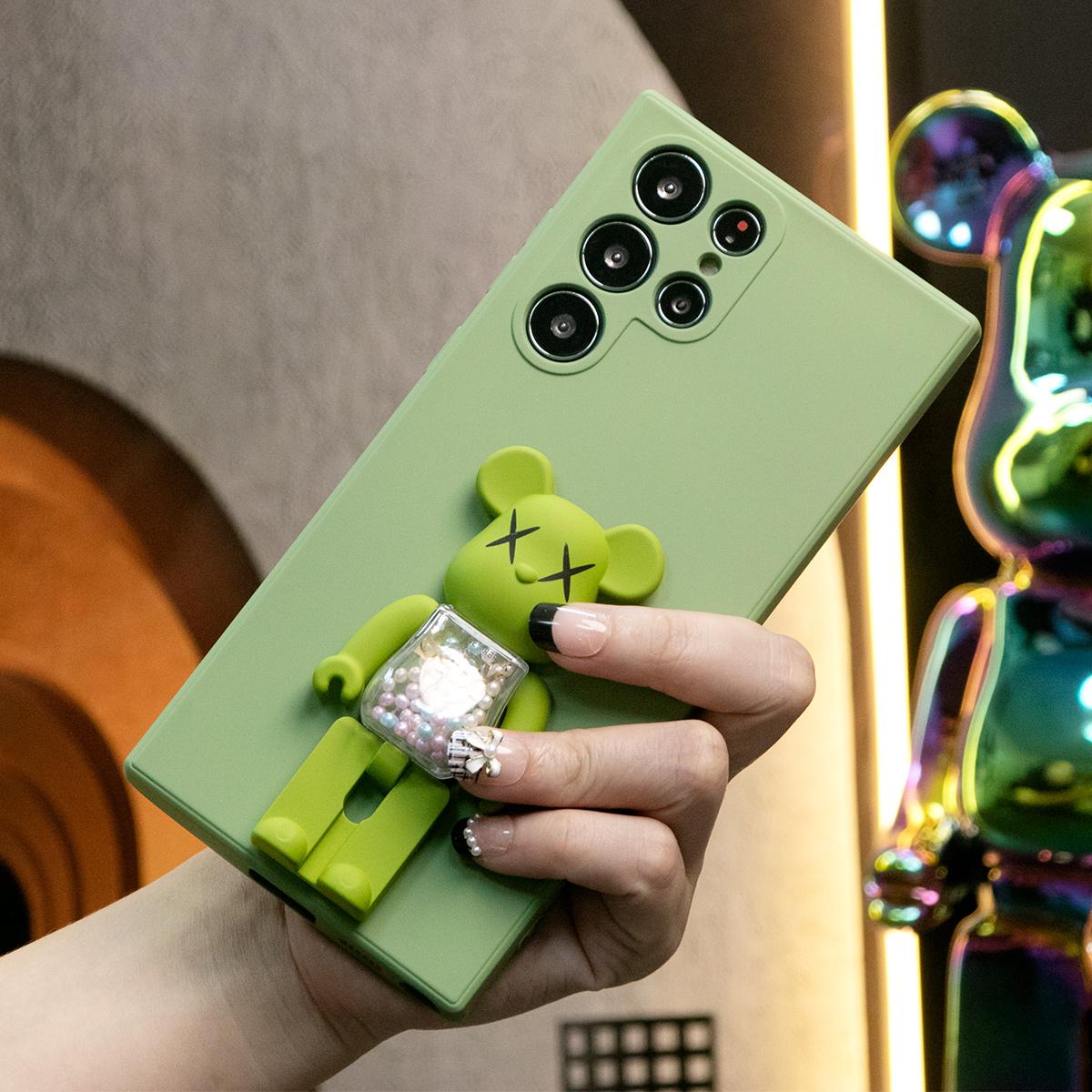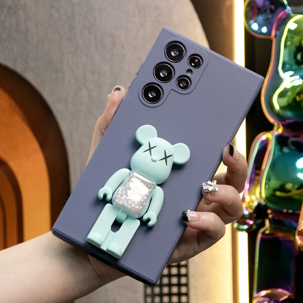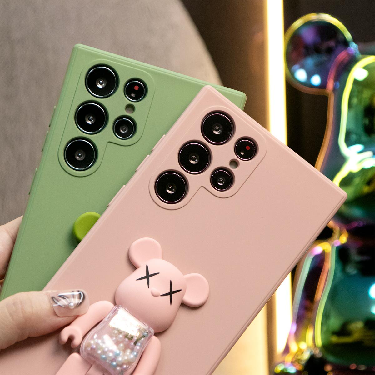 Liquid Silicone Matte Shockproof Frosted Candy Bear Stand Phone Case For Samsung S24Ultra S24FE S24 S23 S22Ultra S21Ultra A55 A35 A25 A15 Camera Protect Soft Cover