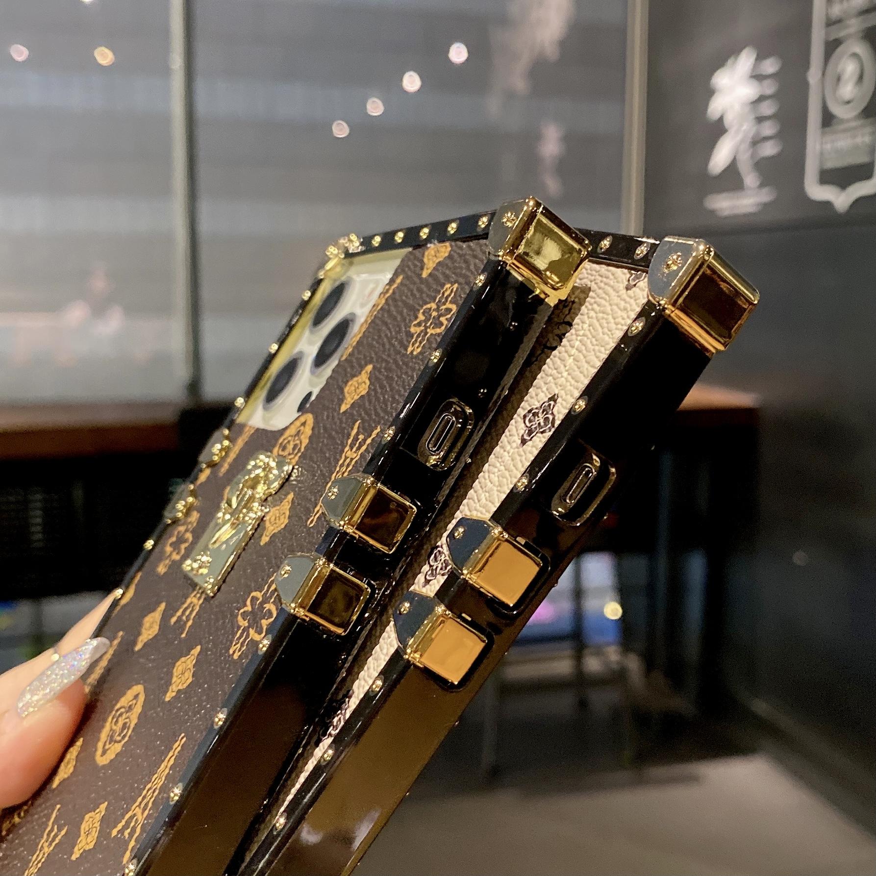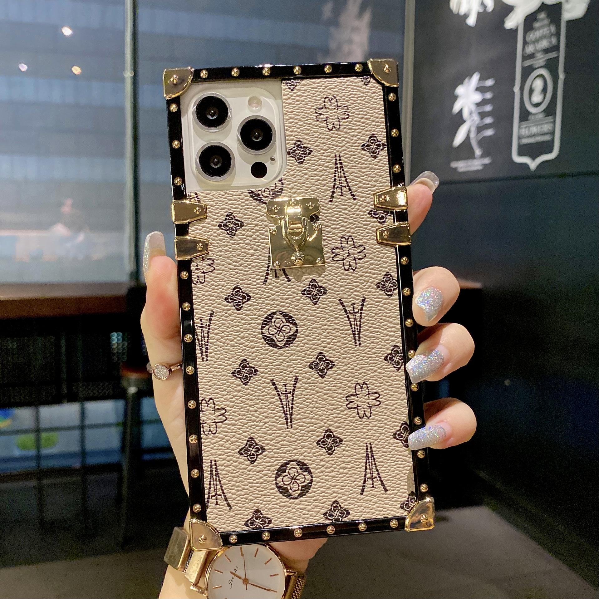 Luxury Classic Leather Lock Anti Drop Heavy Duty Protection Phone Case For Samsung S25 S24 S23 S22 S21 Note20 A15 A25 A35 A55 Fashion Square Case Back Cover For iPhone 16 15 14 13 12 11 X XR