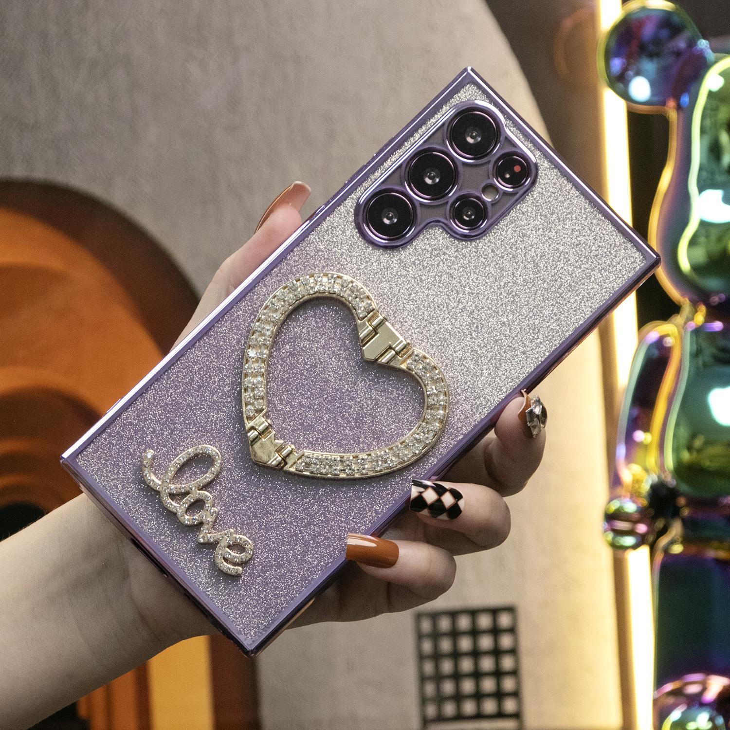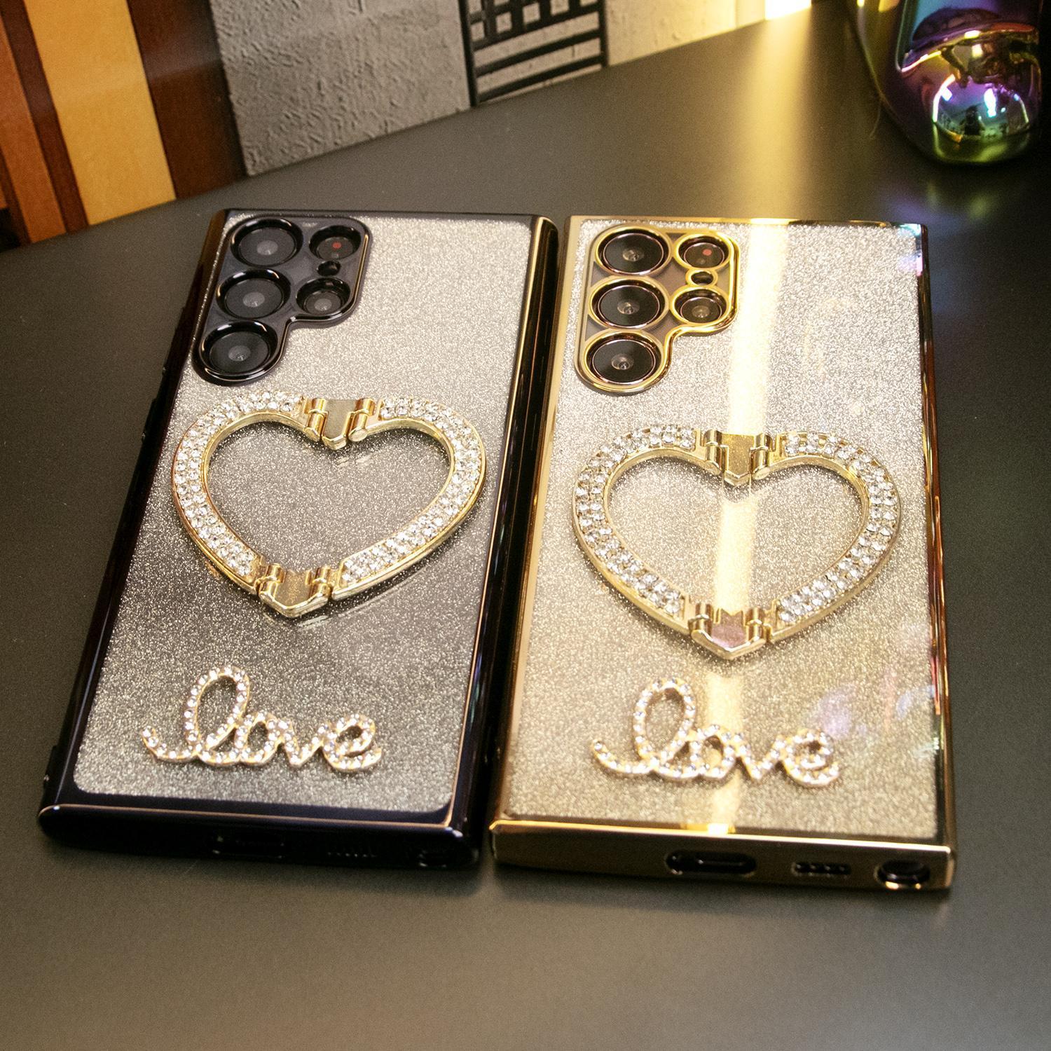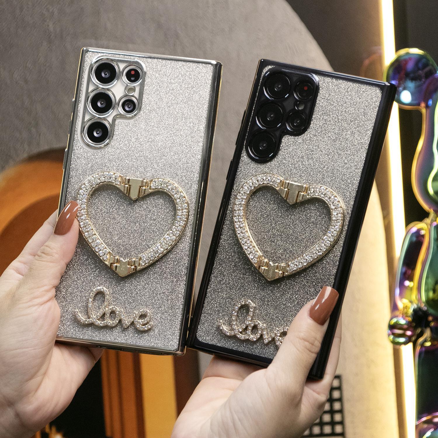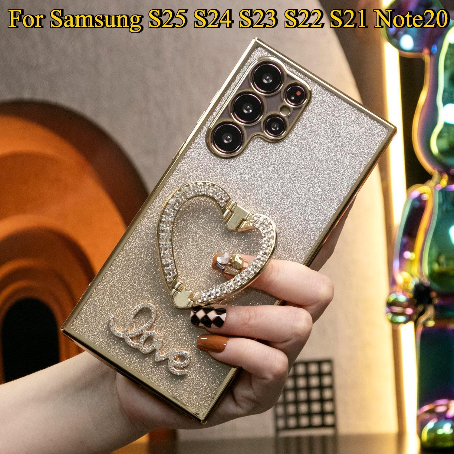 Luxury Diamond Glitter Crystal Love Heart Holder Bracket Glitter Clear Gradient TPU Plating Shockproof Soft Phone Case For Samsung S25 S24 S23 S22 S21 Note20
