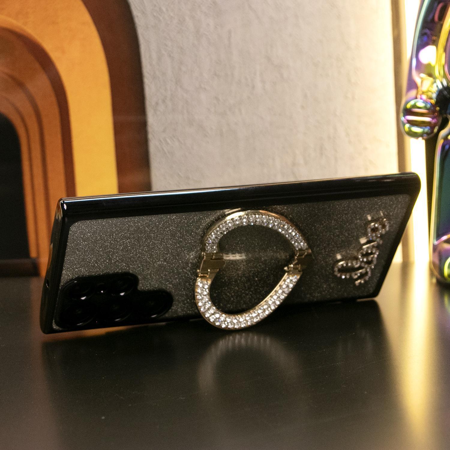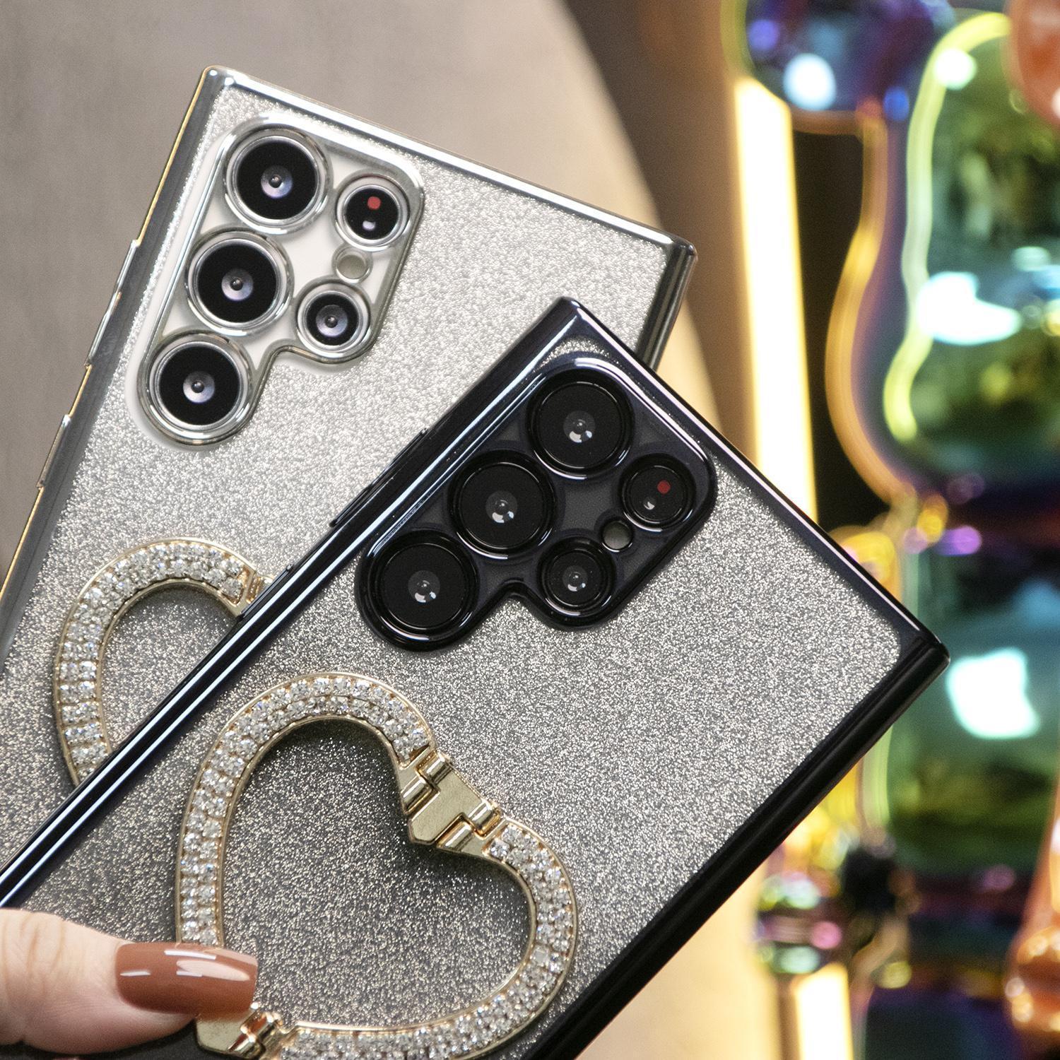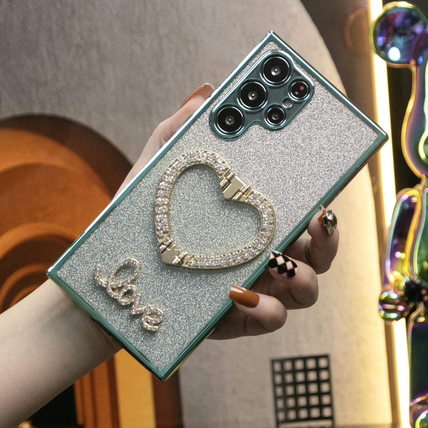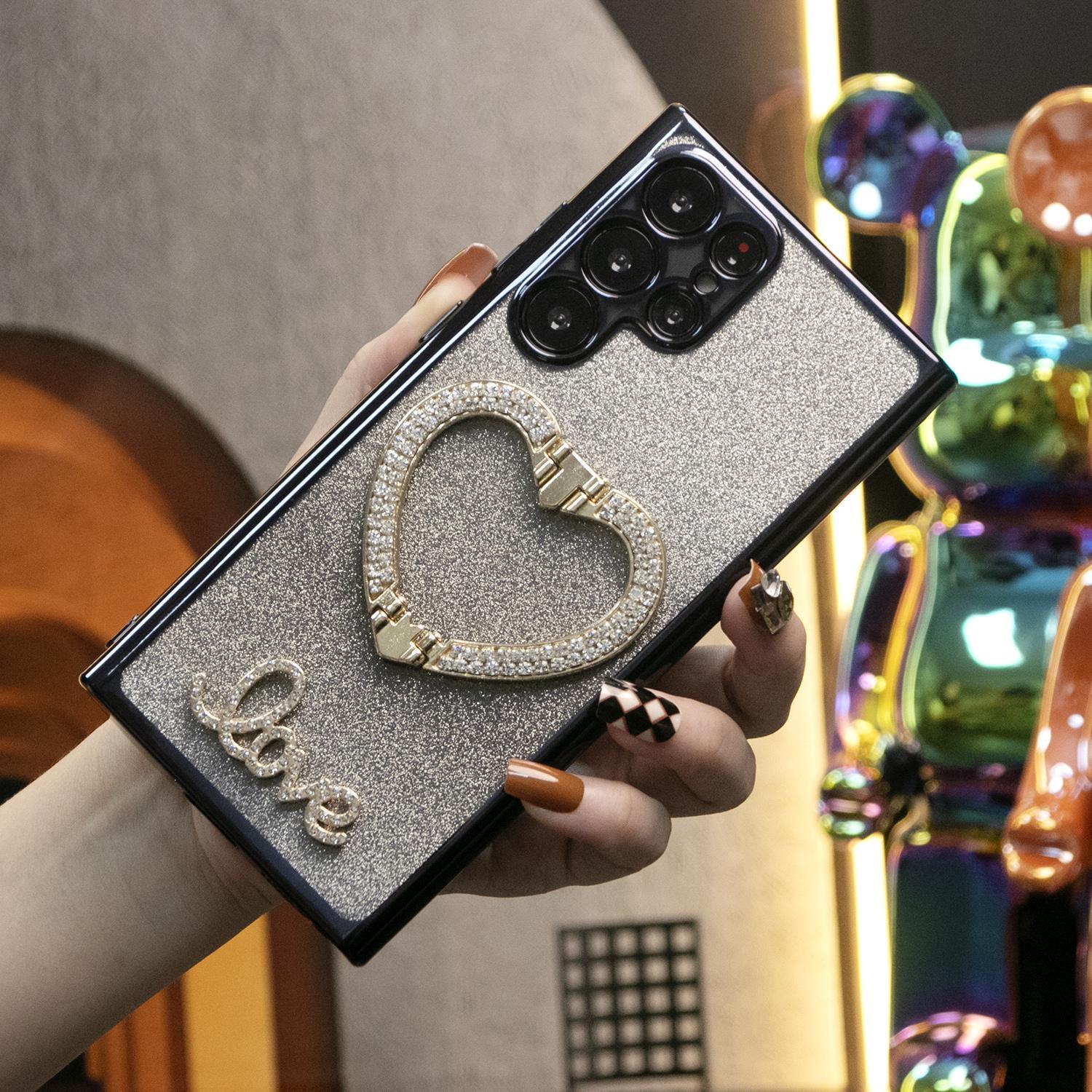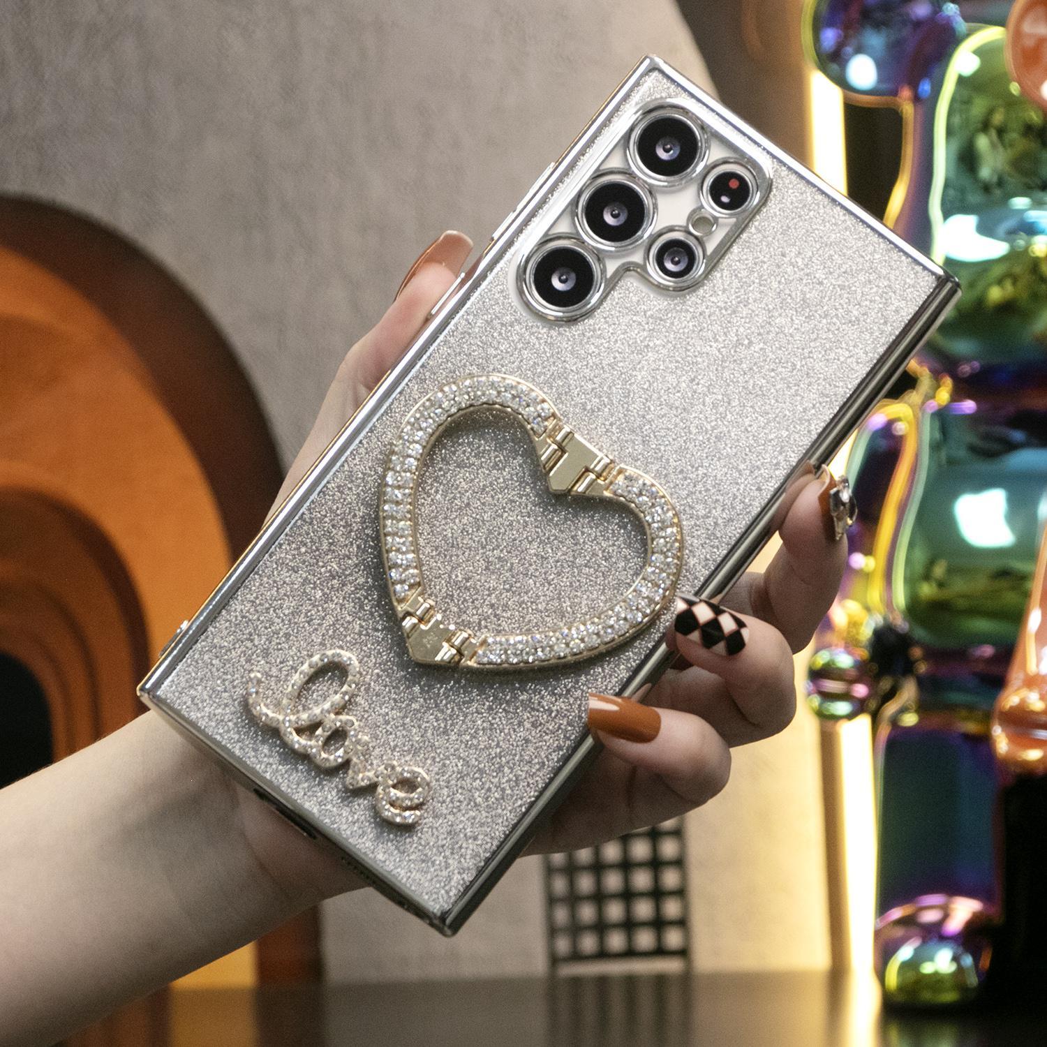 Luxury Diamond Glitter Crystal Love Heart Holder Bracket Glitter Clear Gradient TPU Plating Shockproof Soft Phone Case For Samsung S25 S24 S23 S22 S21 Note20