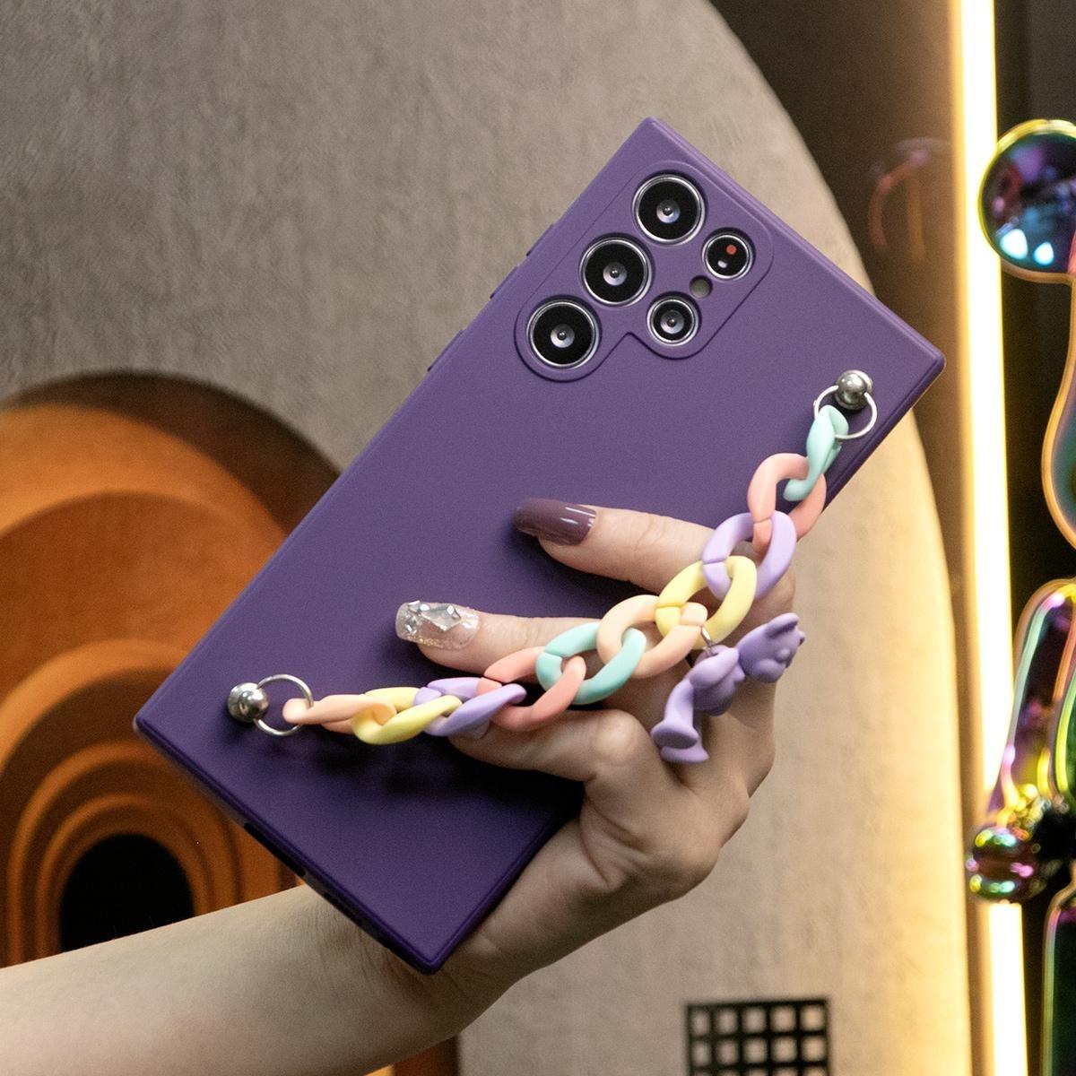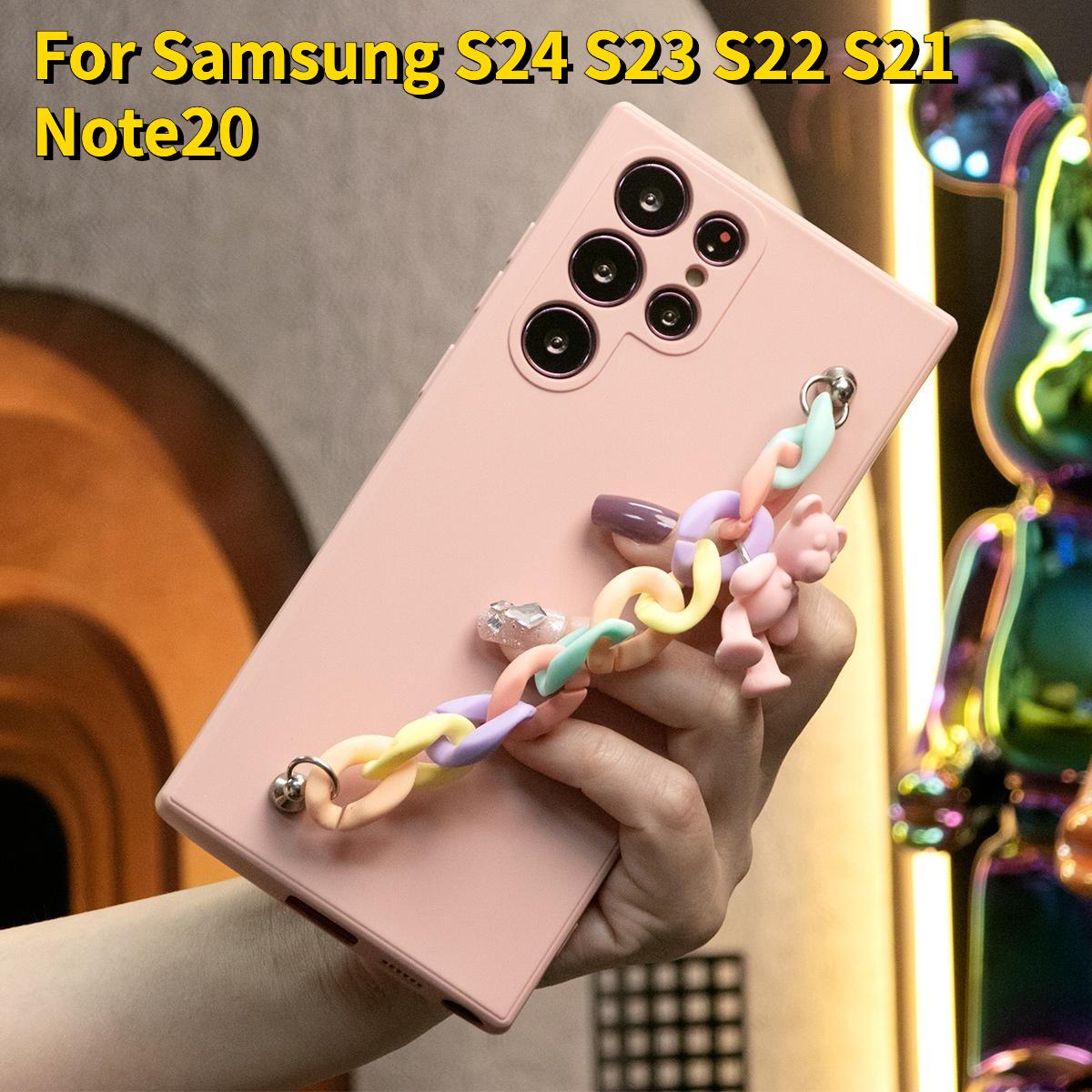 Silicone Matte Phone Case with Love Heart Bracelet For Samsung S24 S23 S22 S21 S23 Ultra Plus Camera Protect Soft Cover S23 FE
