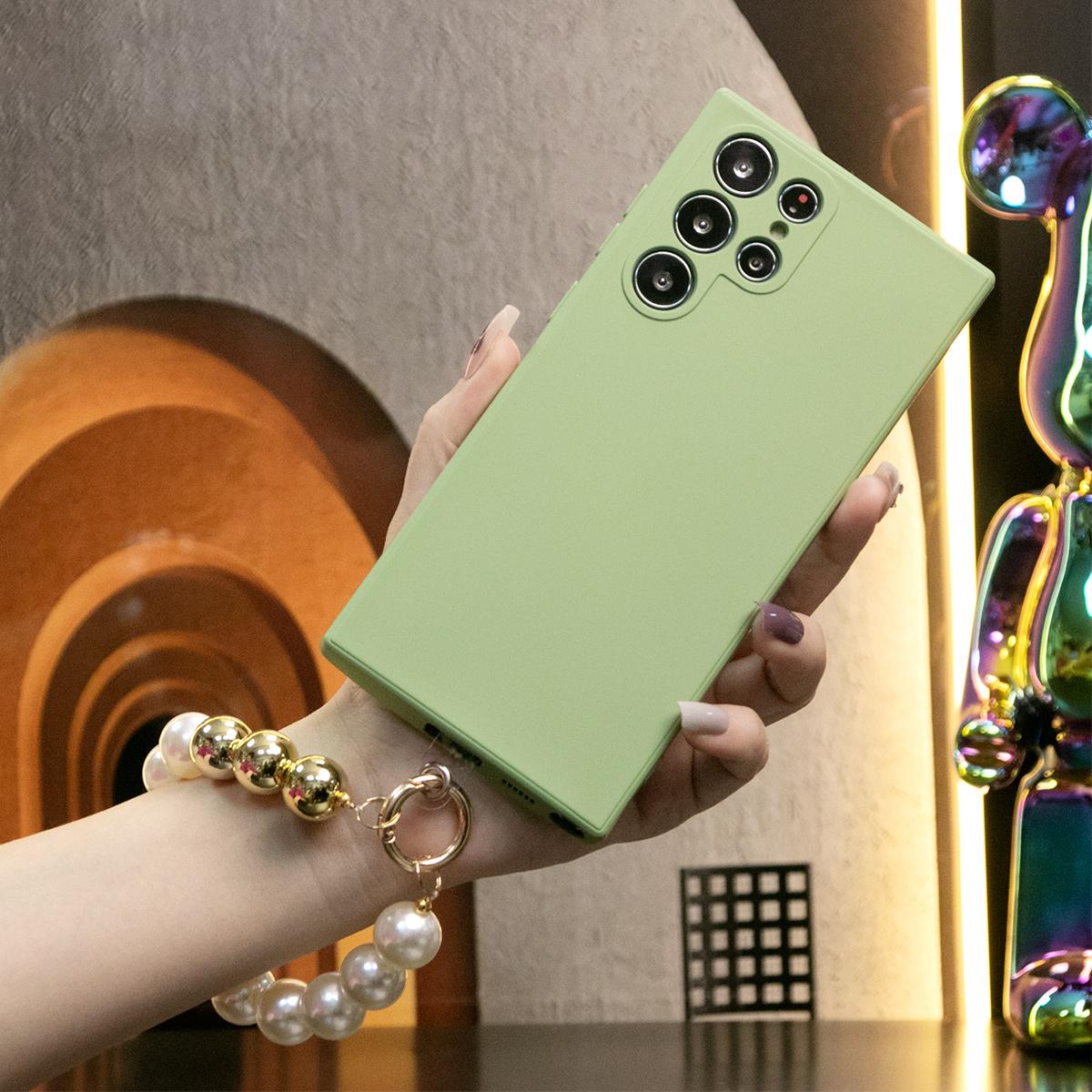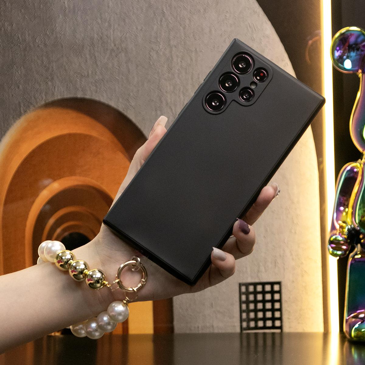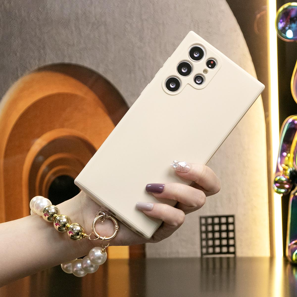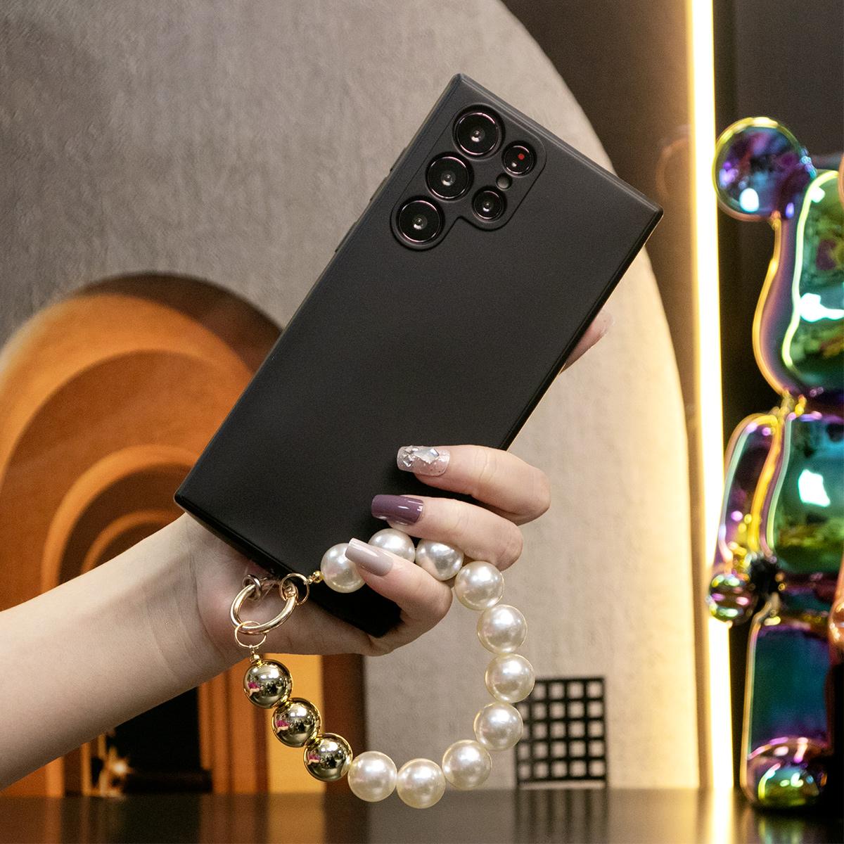 Silicone Matte Phone Case with Pearl Metal Lanyard For Samsung S24 S23 S22 S21 Ultra Plus S24Plus S24Ultra Camera Protect Soft Cover S23 FE