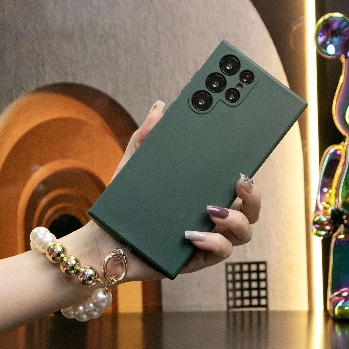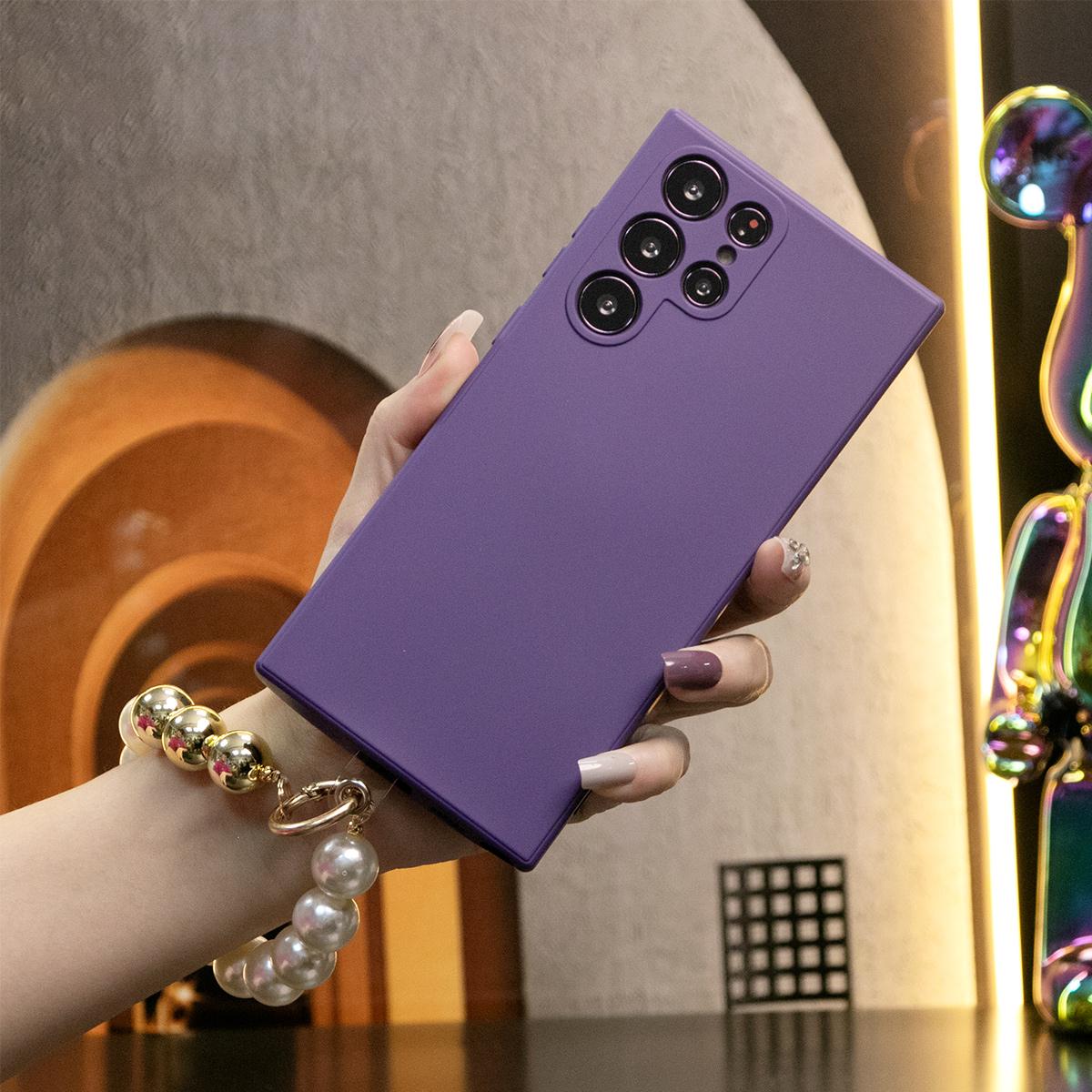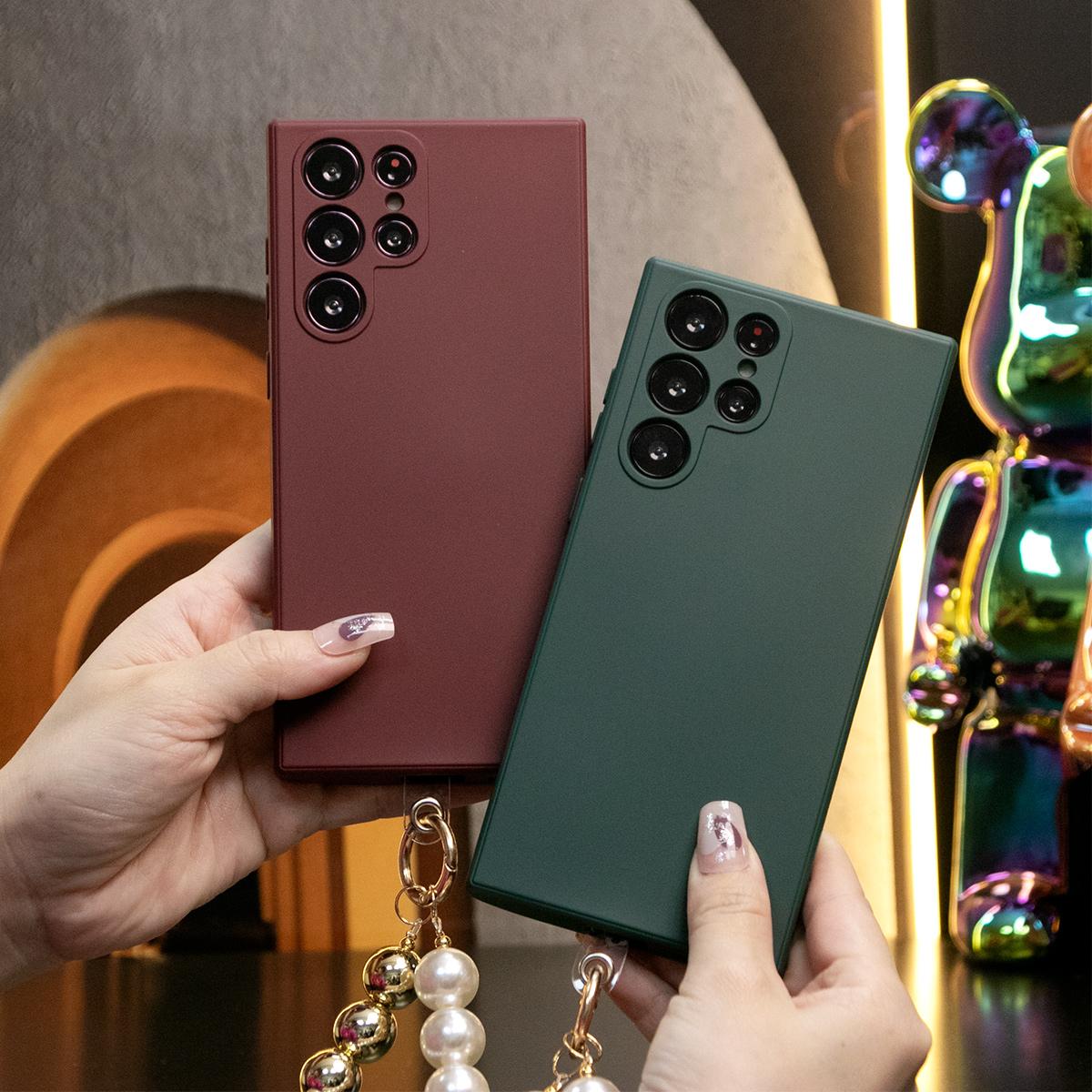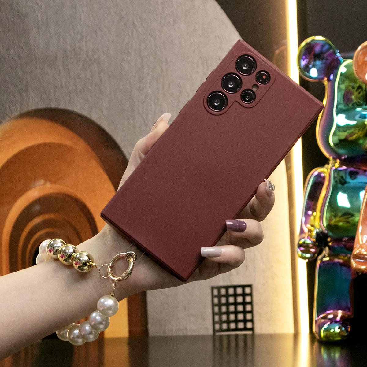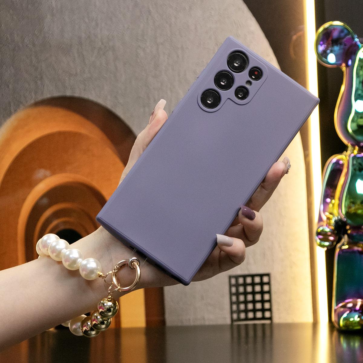 Silicone Matte Phone Case with Pearl Metal Lanyard For Samsung S24 S23 S22 S21 Ultra Plus S24Plus S24Ultra Camera Protect Soft Cover S23 FE