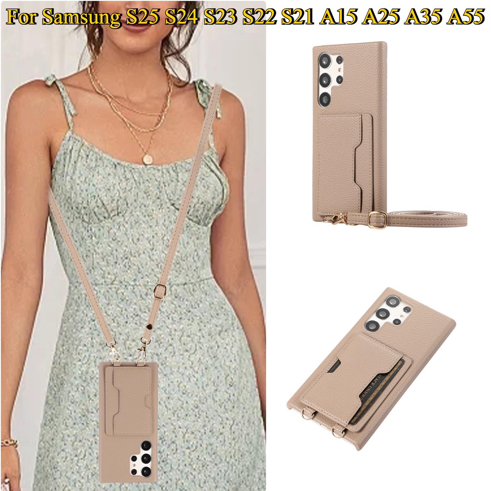 Wallet Case For Samsung S25 S24 S23 S22 S21 Card Holder Lanyard Handbag Crossbody Leather Cover for Samsung A15 A25 A35 A55 A54