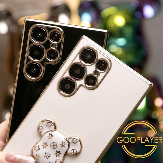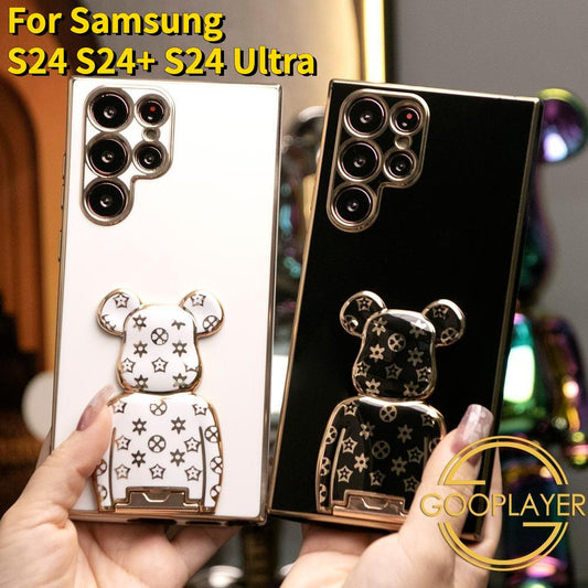 Plating Candy Bear Popstand Phone Case for Samsung Galaxy S24Ultra S24FE S24 S23 S22 S21 FE Plus Ultra Note 20