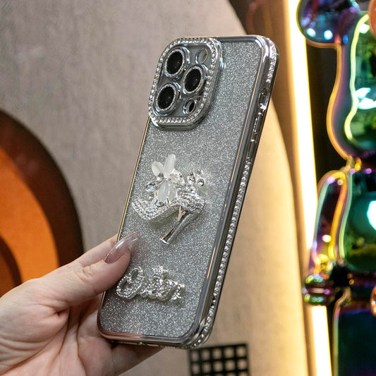 Plating Glitter Diamond High-heeled Shoes Queen Phone Case For iPhone 16 15 14 13 12 Pro Max
