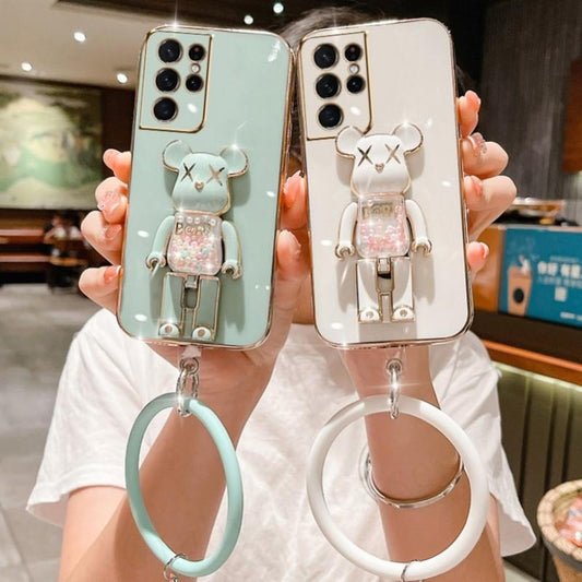 Plating Candy Bear Stand Phone Case For Samsung S25 S24 S23 S22 S21 Note20
