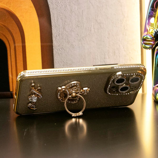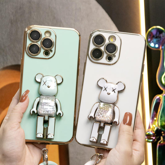 Plating Candy Bear Bracelet Stand Phone Case For iPhone 16 15 14 13 12 Plus Pro Max Soft TPU Back Cover