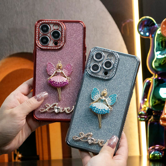 Plating Glitter Diamond Butterfly Girl Phone Case For iPhone 16 15 14 13 12 Pro Max