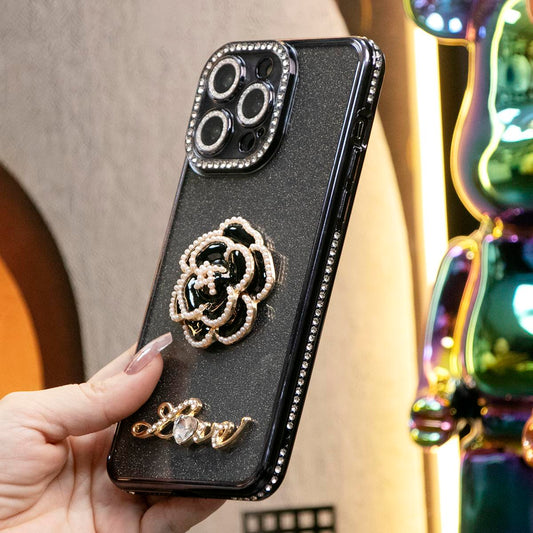 Plating Glitter Diamond Flower Love Phone Case For iPhone 16 15 14 13 12 11 Pro Max XR XS X XSMax