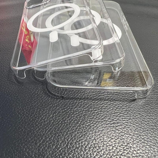 Transparent Hard PC Phone Case For iPhone 16 15 14 13 12 11 Pro Max Clear Crystal Magnetic Back Cover