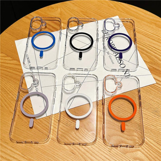 Transparent Dual Color Magnetic For Magsafe Wireless Charging Phone Case for iPhone 16 15 14 13 Pro Max Clear Cover PC Anti-yellowing