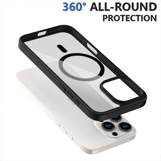 Transparent Magnetic Shockproof Hard Phone Case For iPhone 16 15 14 Pro Max Black Silicone Edges Clear Acrylic Cover